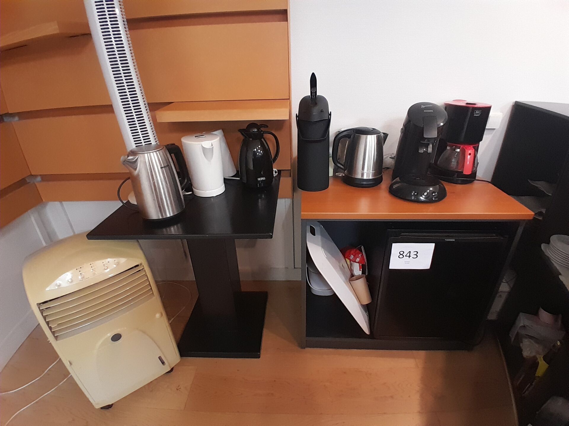 1 réfrigérateur CURTISS , 1 bouilloire électrique SEVERIN et 1 mini mixer SILVER CREST