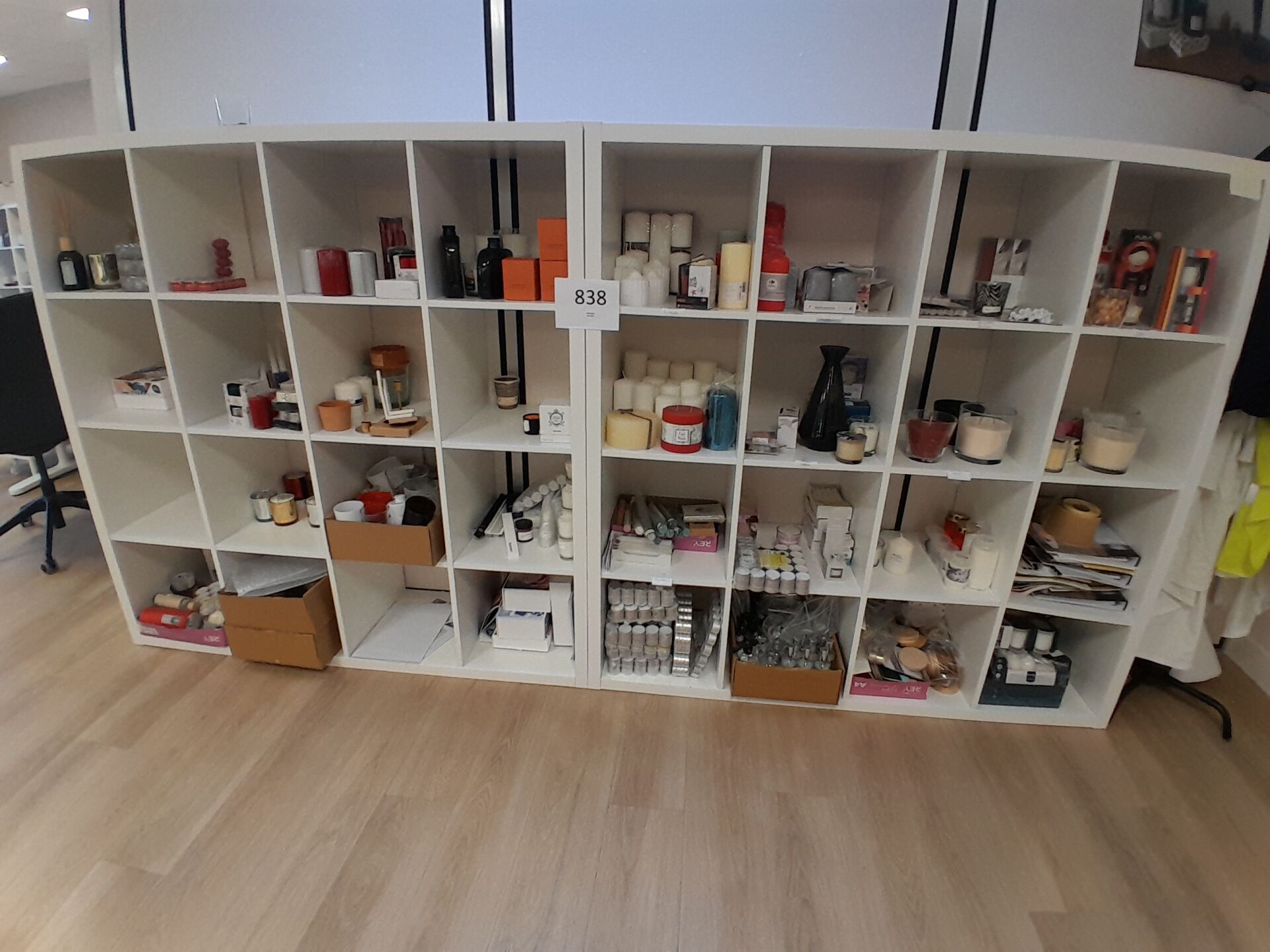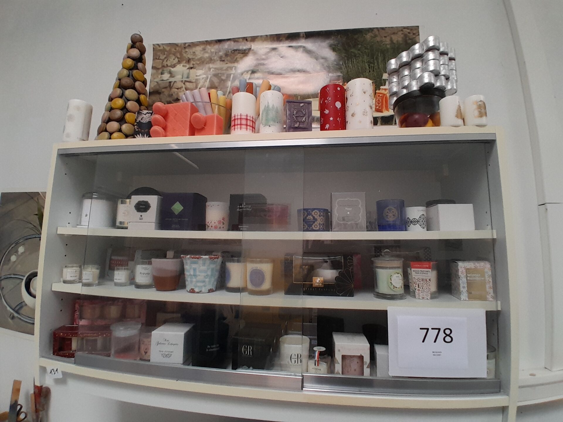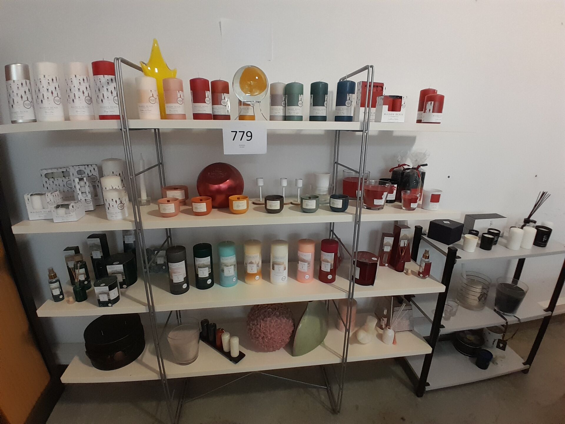 1 ensemble d’échantillons de bougies contenus dans les étagères , environ 200 pièces Adjugé à : €