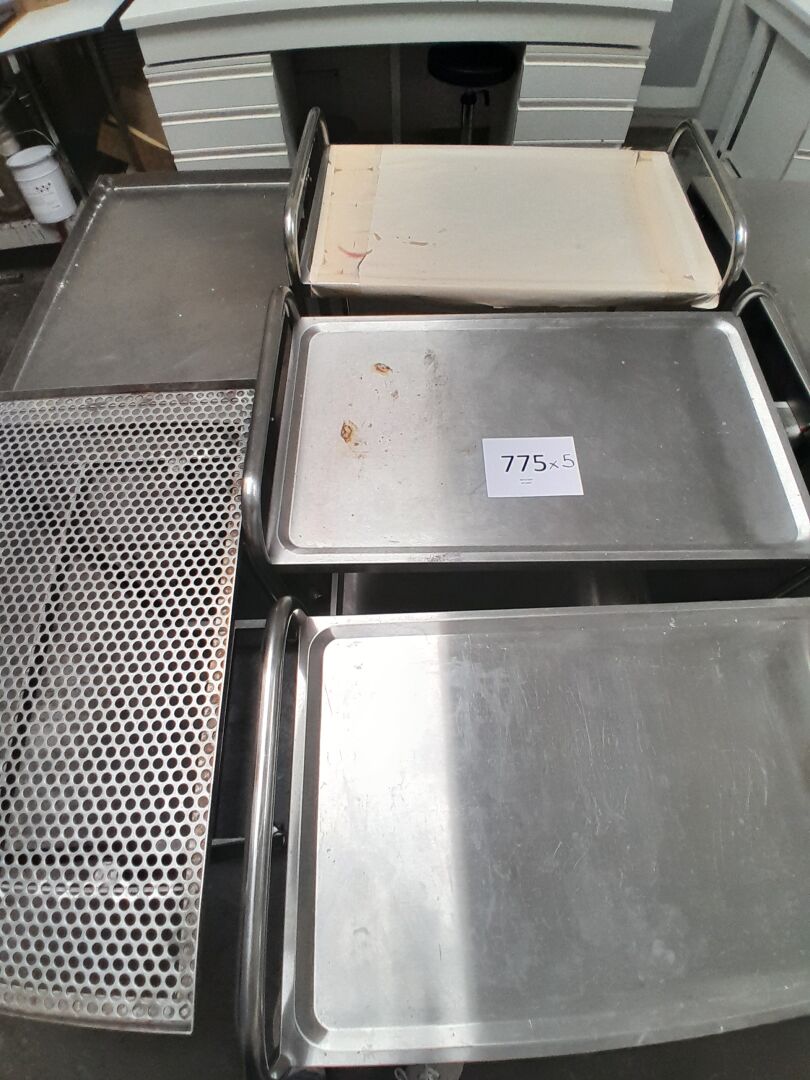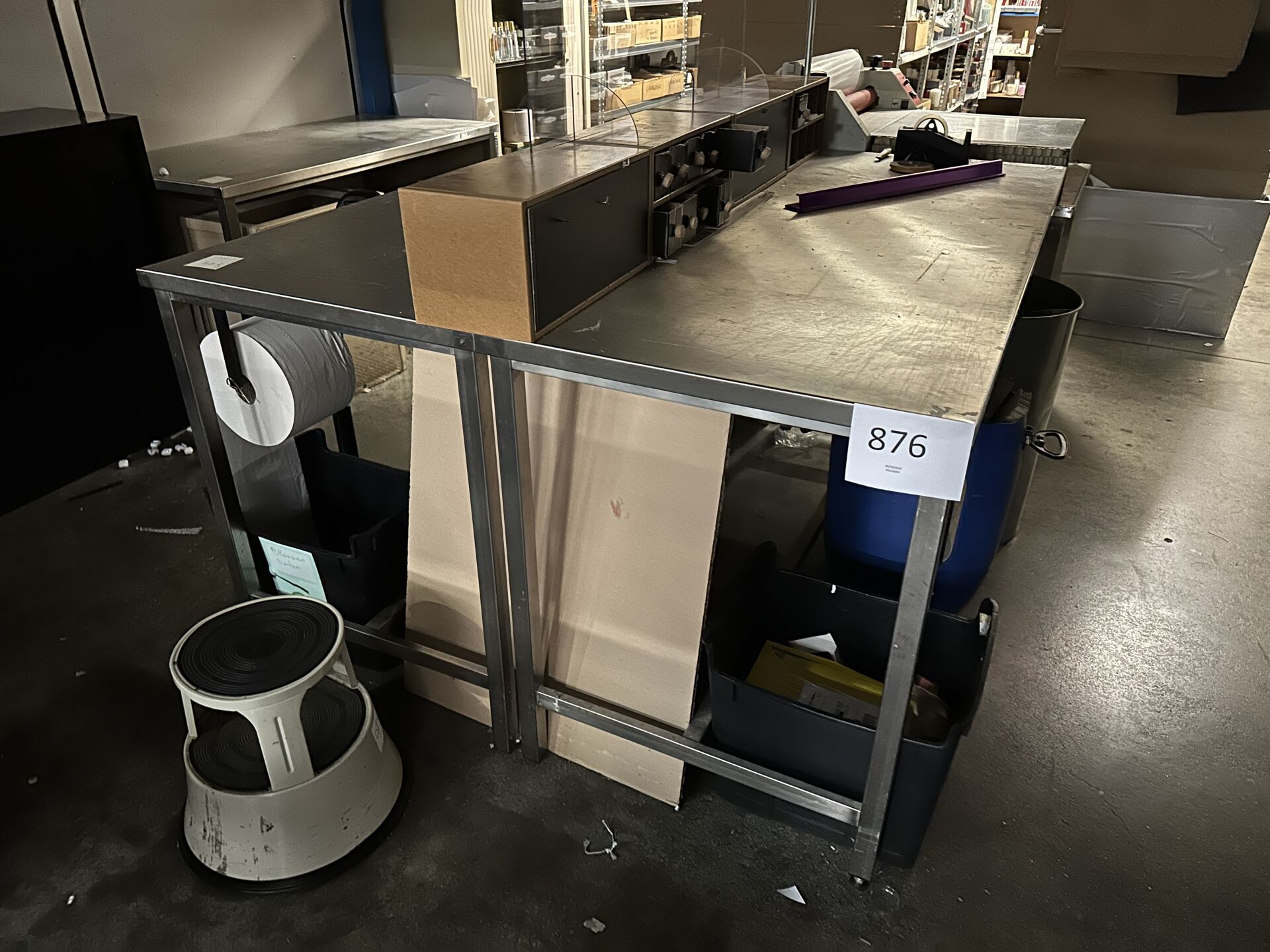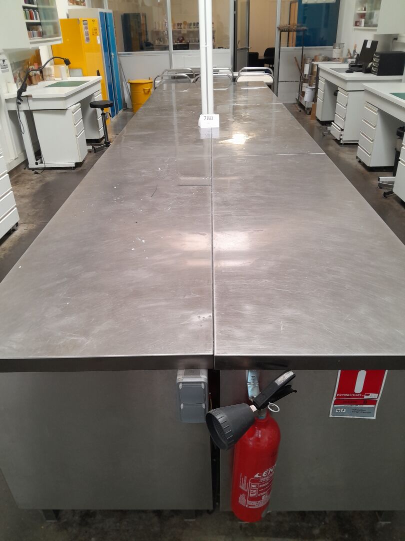 4 tables inox : 2 de 180 x 75 x 95 cm avec dérouleur d’essuie tout et 2 de 150 x 75 x 85...