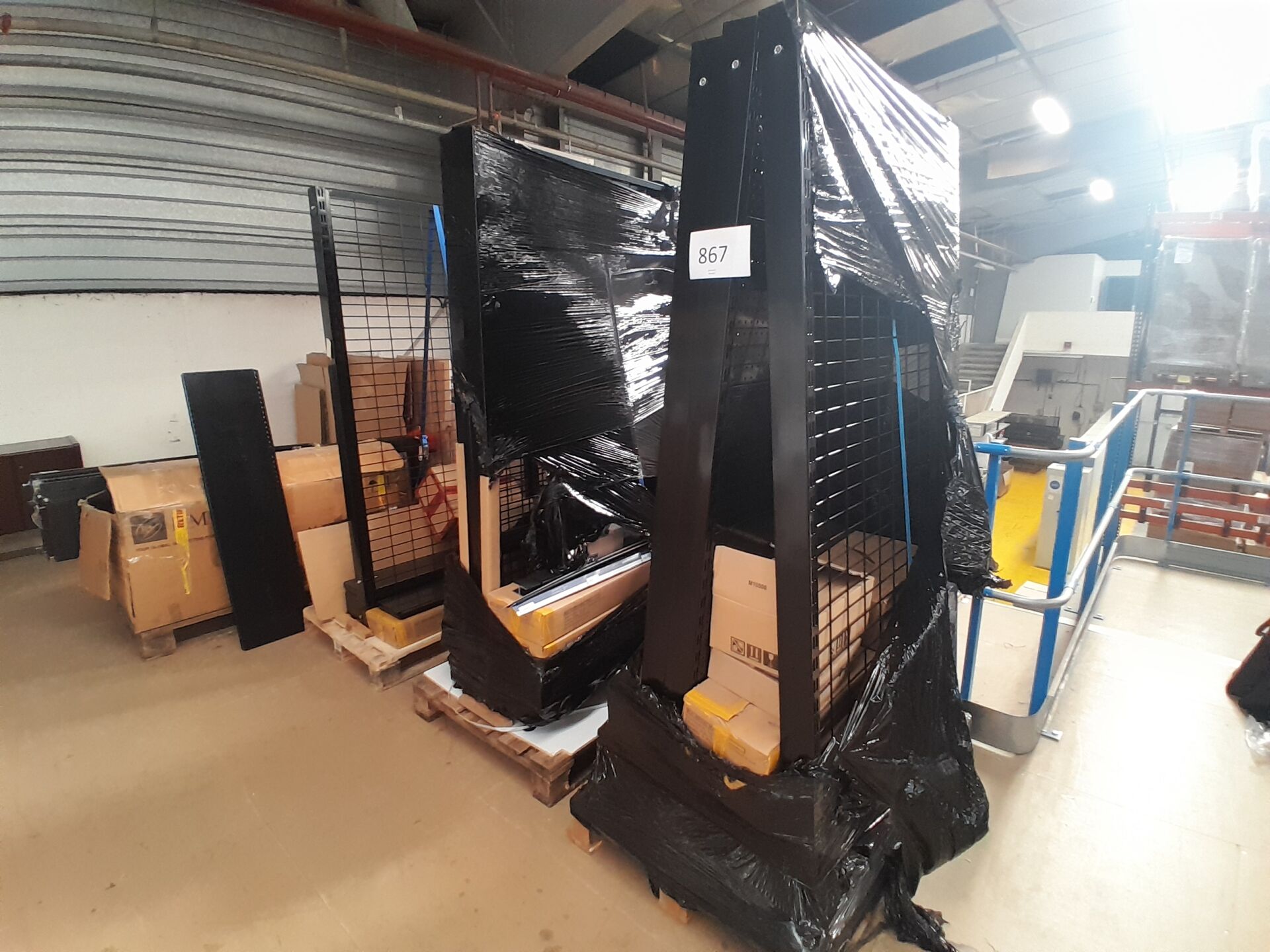 4 travées d’étagères galva P 40 cm H 198 cm: 1 en 250 cm , 2 en 325 cm, 1 en 550 cm Adjugé à : €