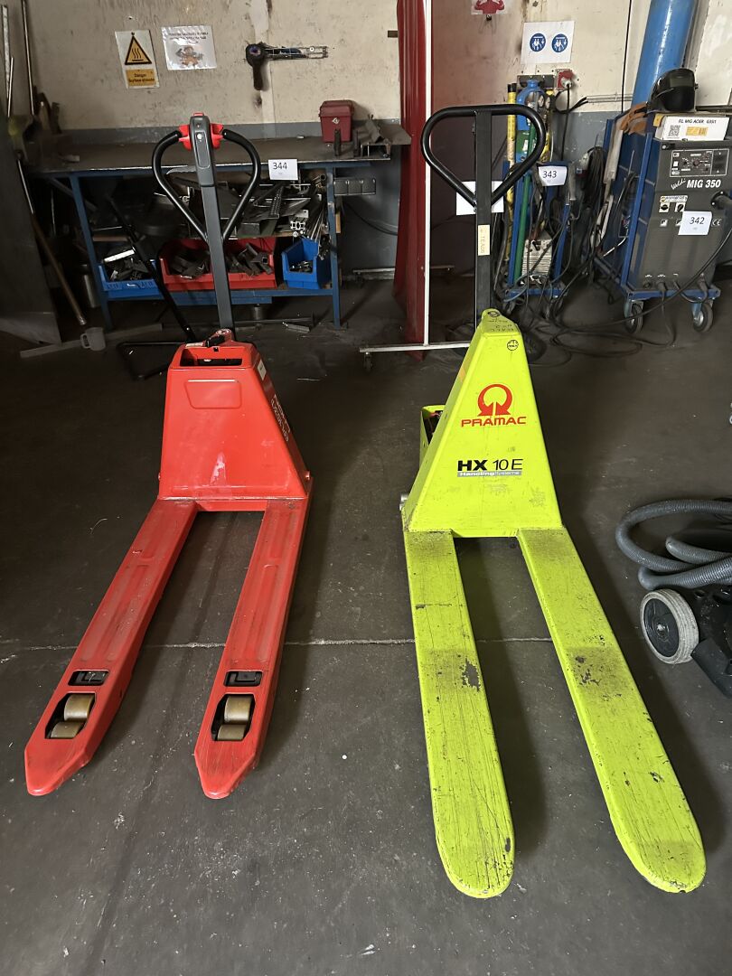 2 transpalettes semi-électriques (en panne) : 1 PRAMAC LIFTER HX 10E 1T vert No LLI0003568 de...