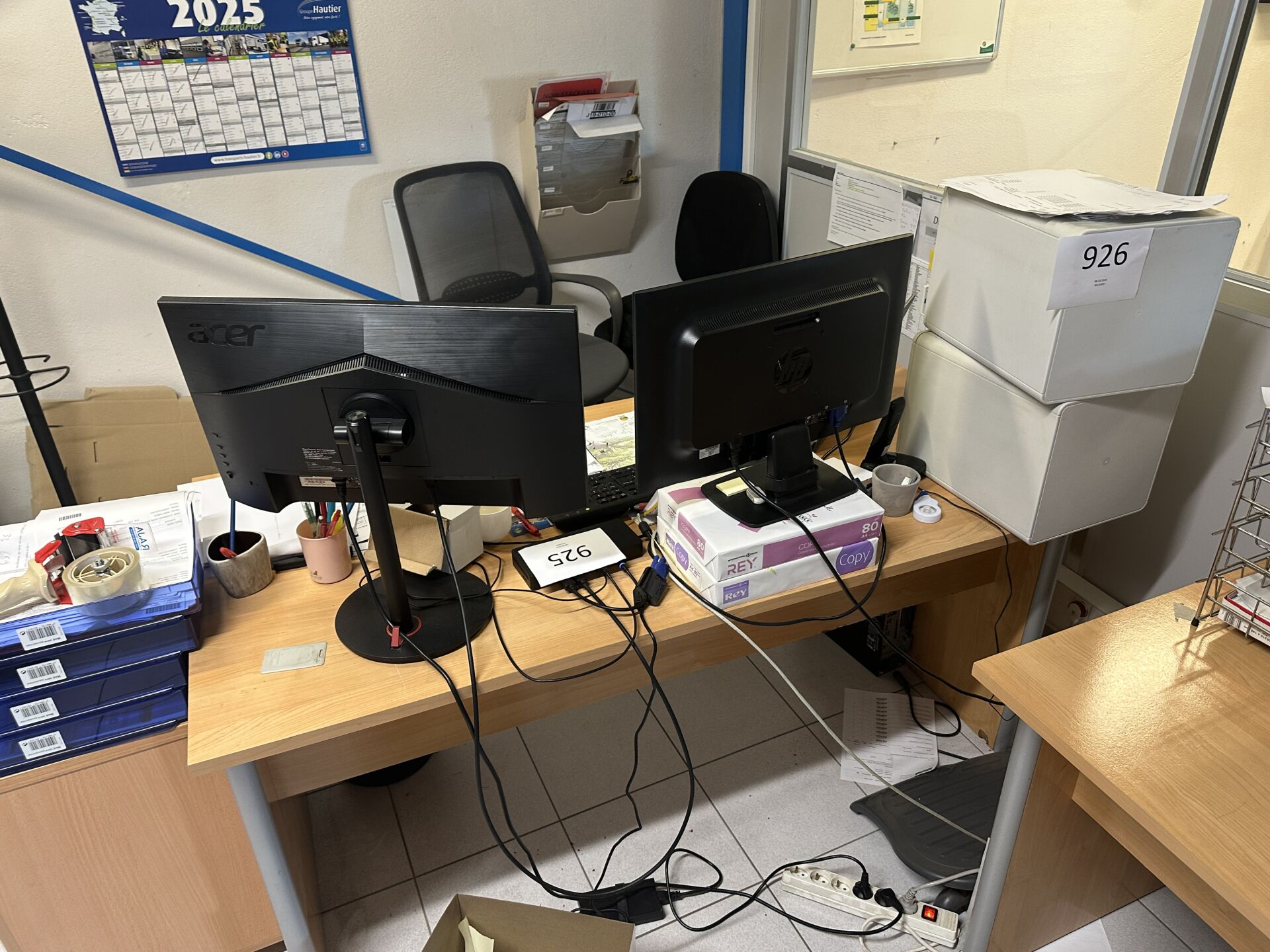 2 bureaux mélaminé façon bois 160 x 80 et 140 x 70 cm et 1 bureau mélaminé gris 190 x 100...