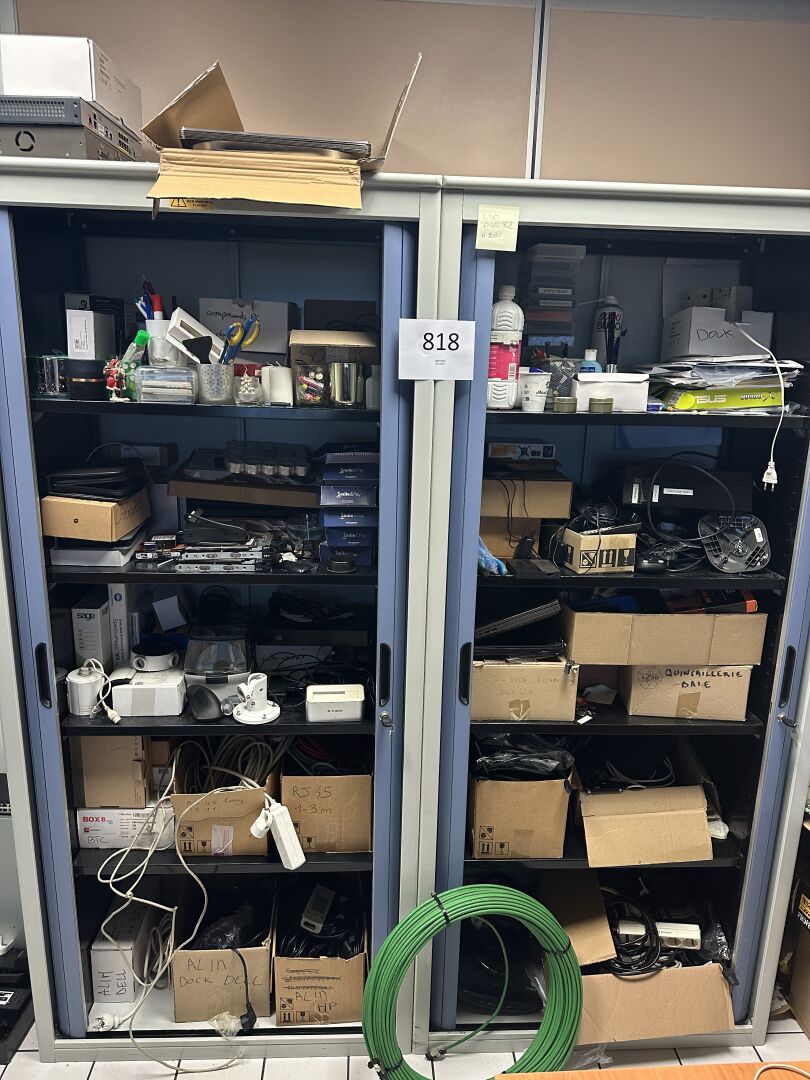 Dans 2 armoires, 1 lot de matériel informatique dont disques durs, connectiques, cables,...