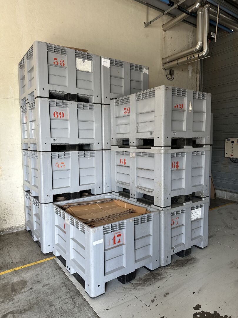 8 palettes de caisses plastique grises et bleues 40 x 60 cm et 20×40 cm (HALL 5)