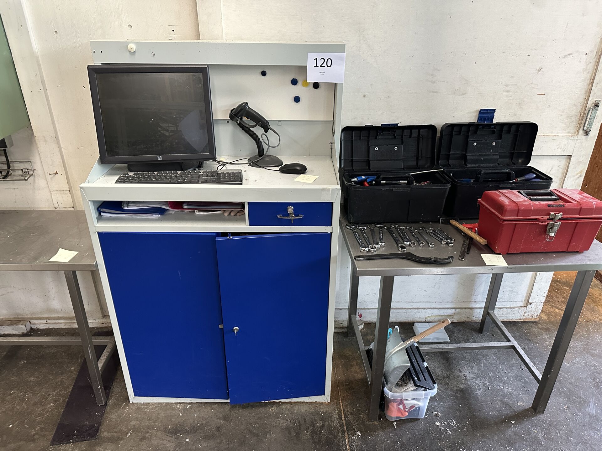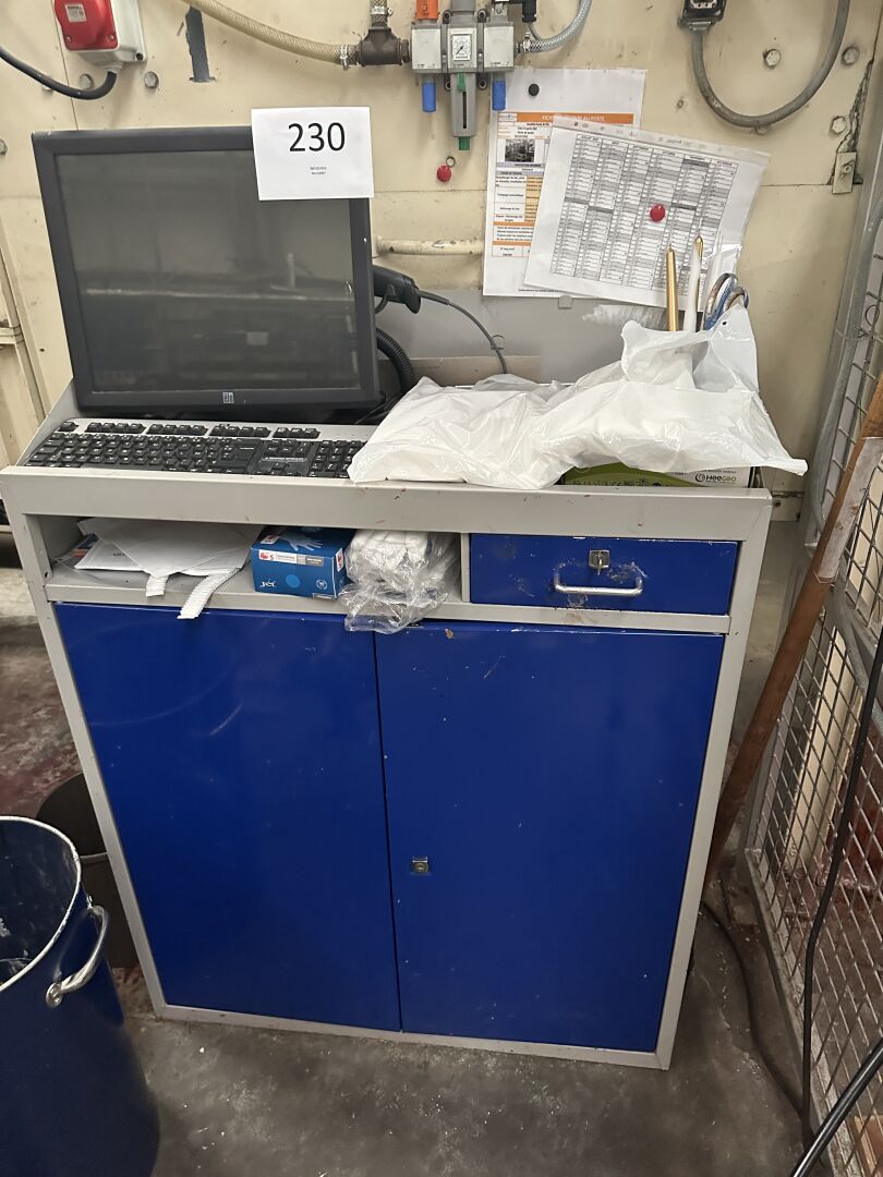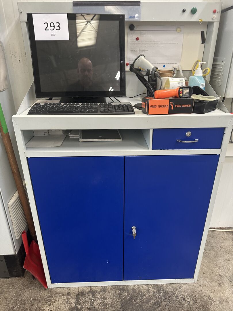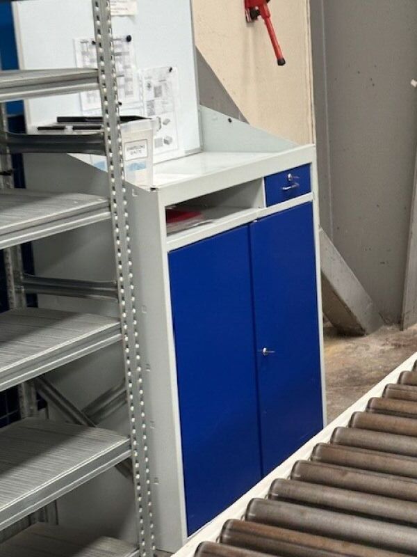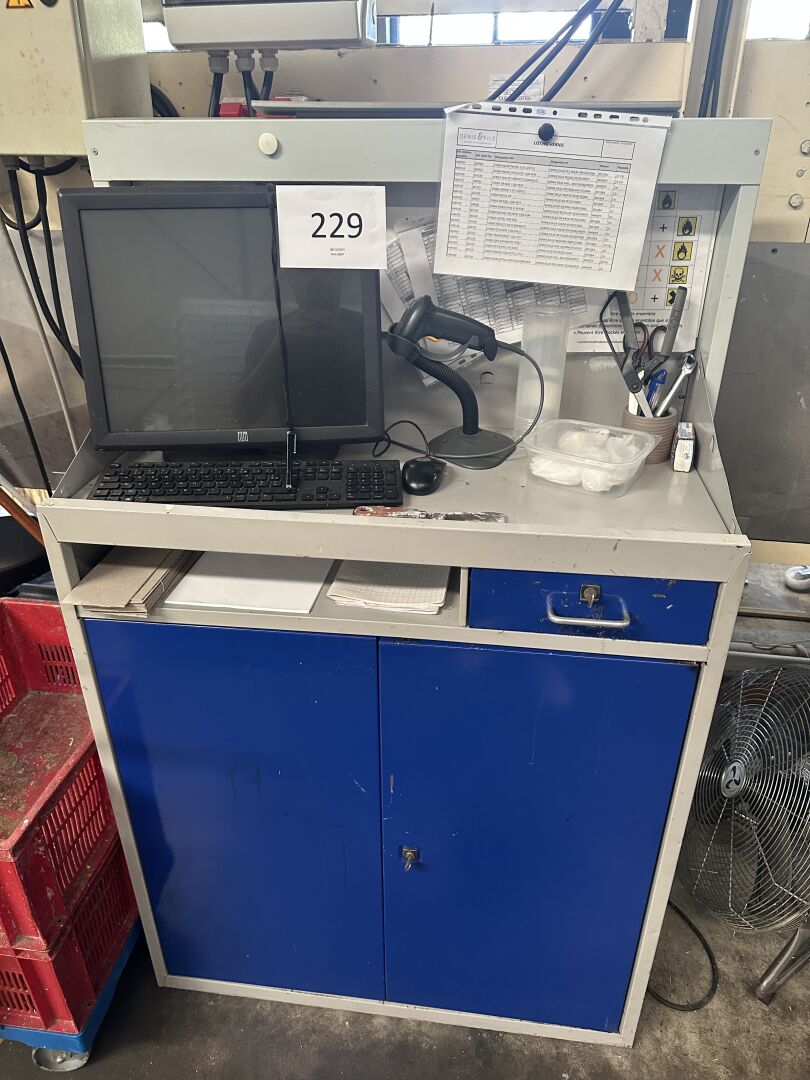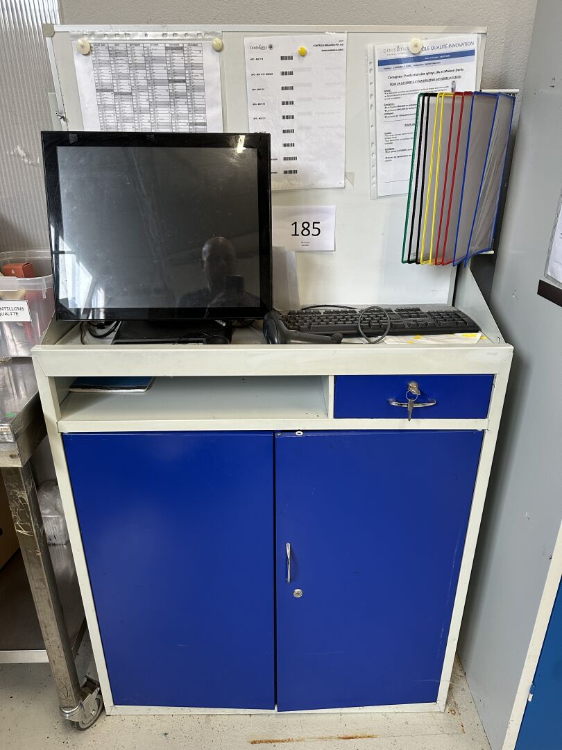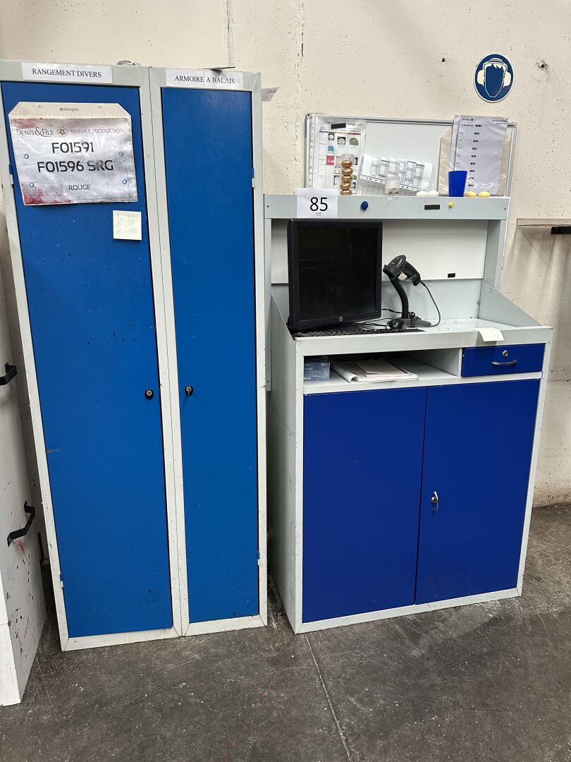 1 pupitre métal bleu et gris 2 portes basses 92 X 48 X 120 cm équipé d’une configuration...