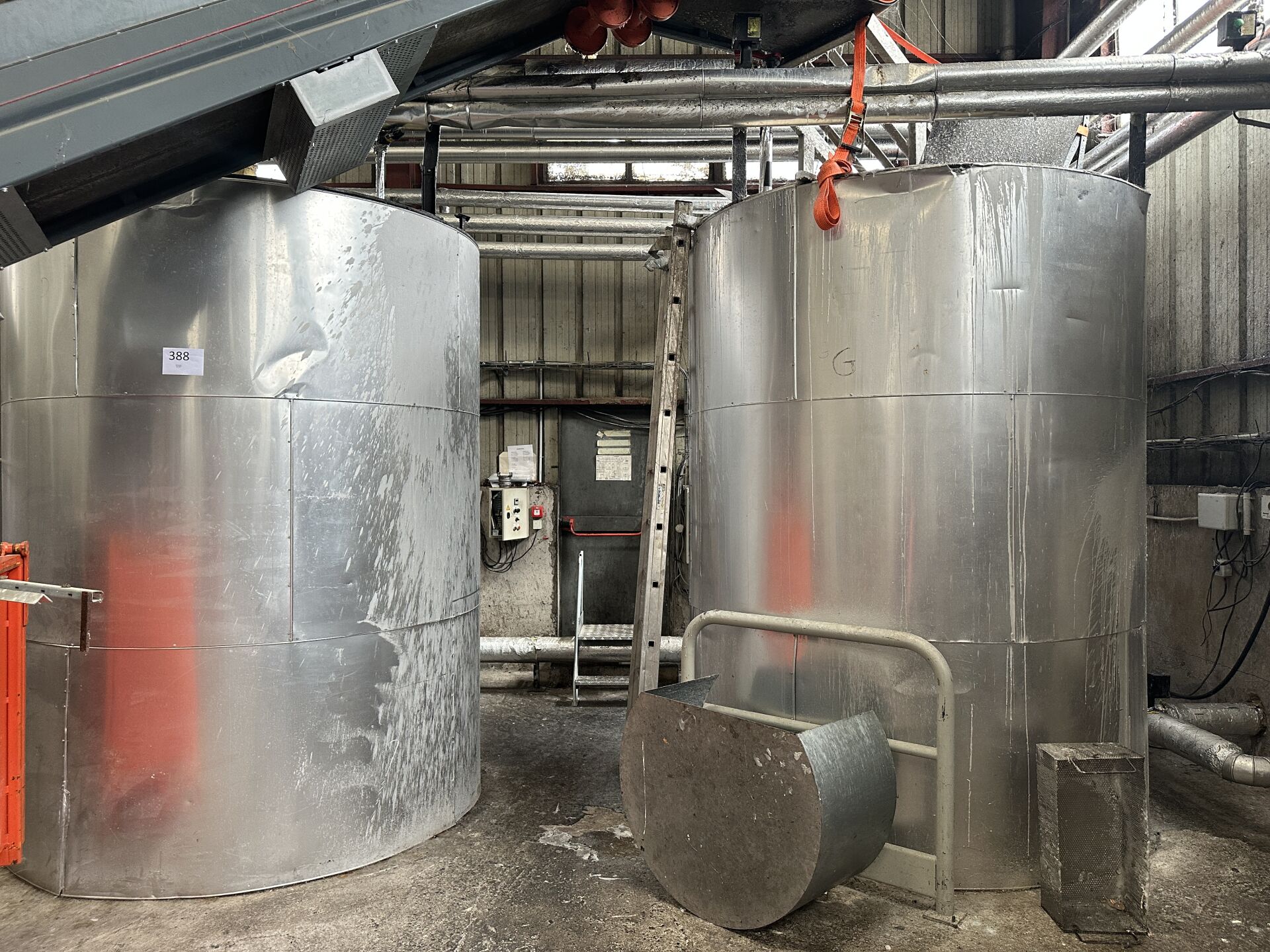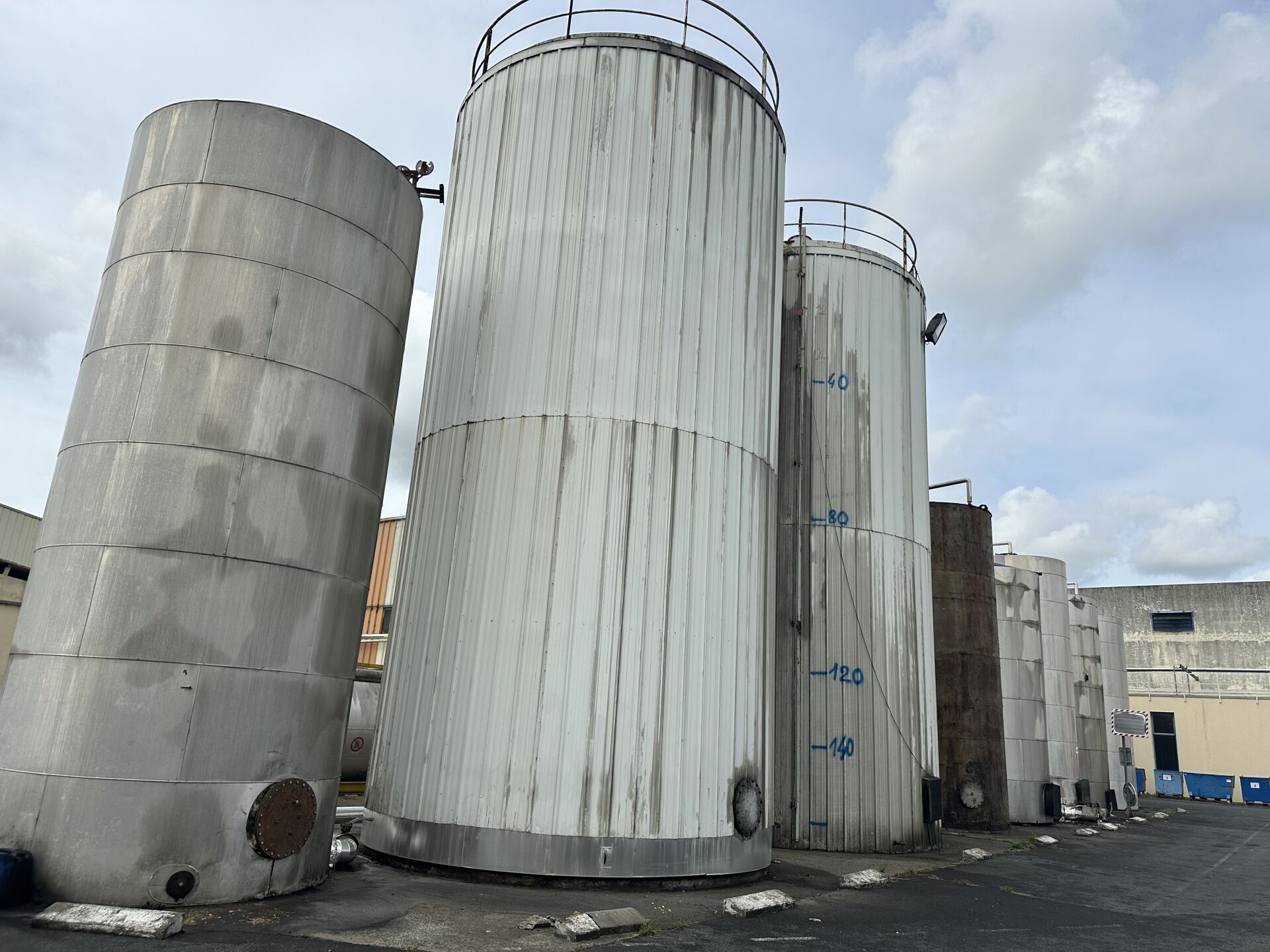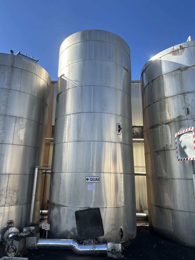 3 cuves aériennes cylindriques inox double peau 12 000 L, 12 000 L et 7500 L