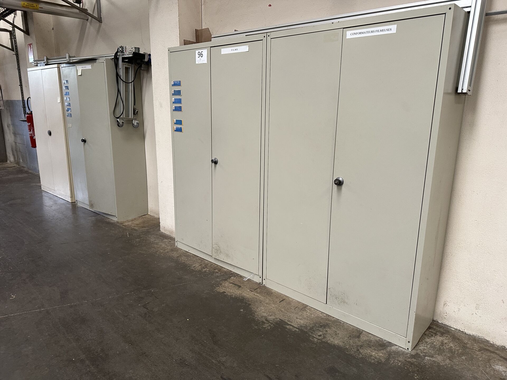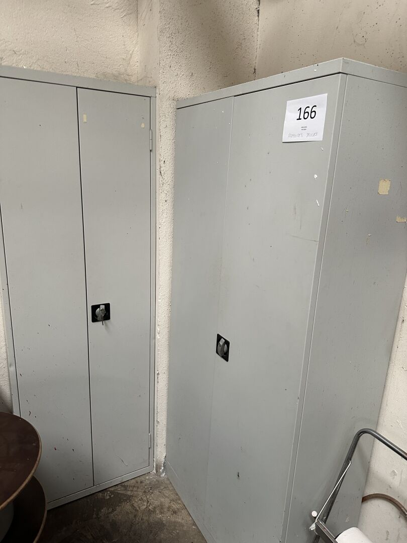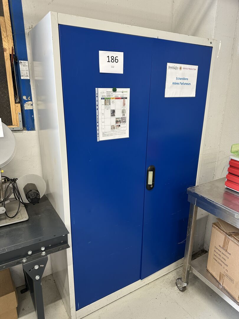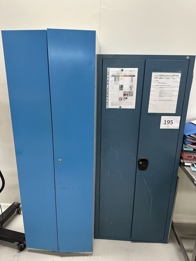 1 armoire métallique 2 portes grise et bleue 95 x 40 x 195 cm (avec contenu)