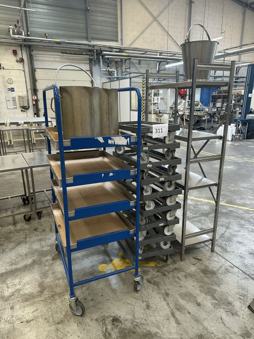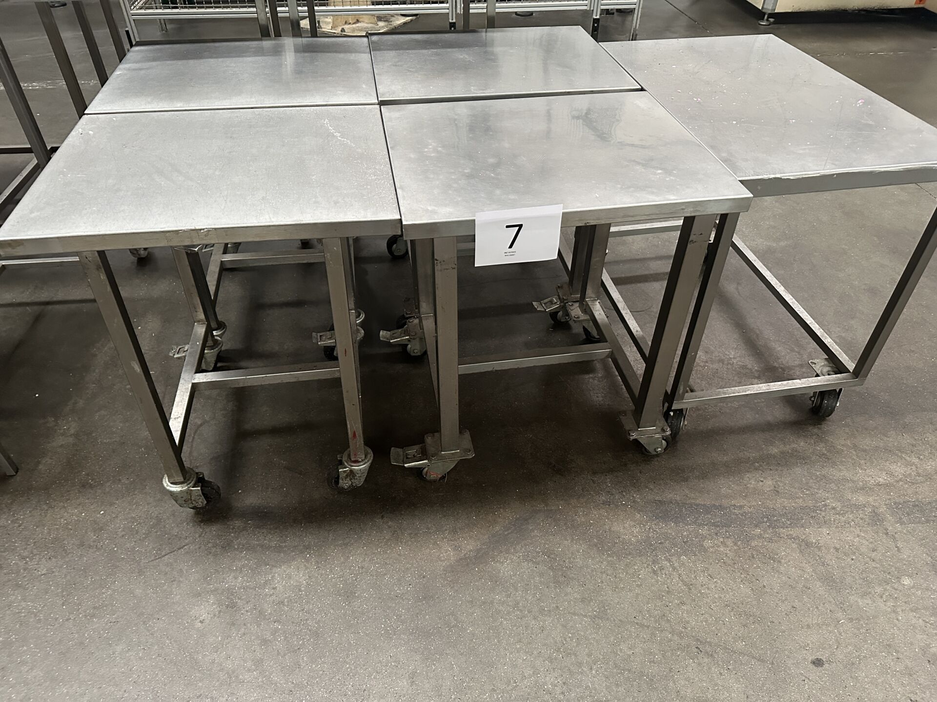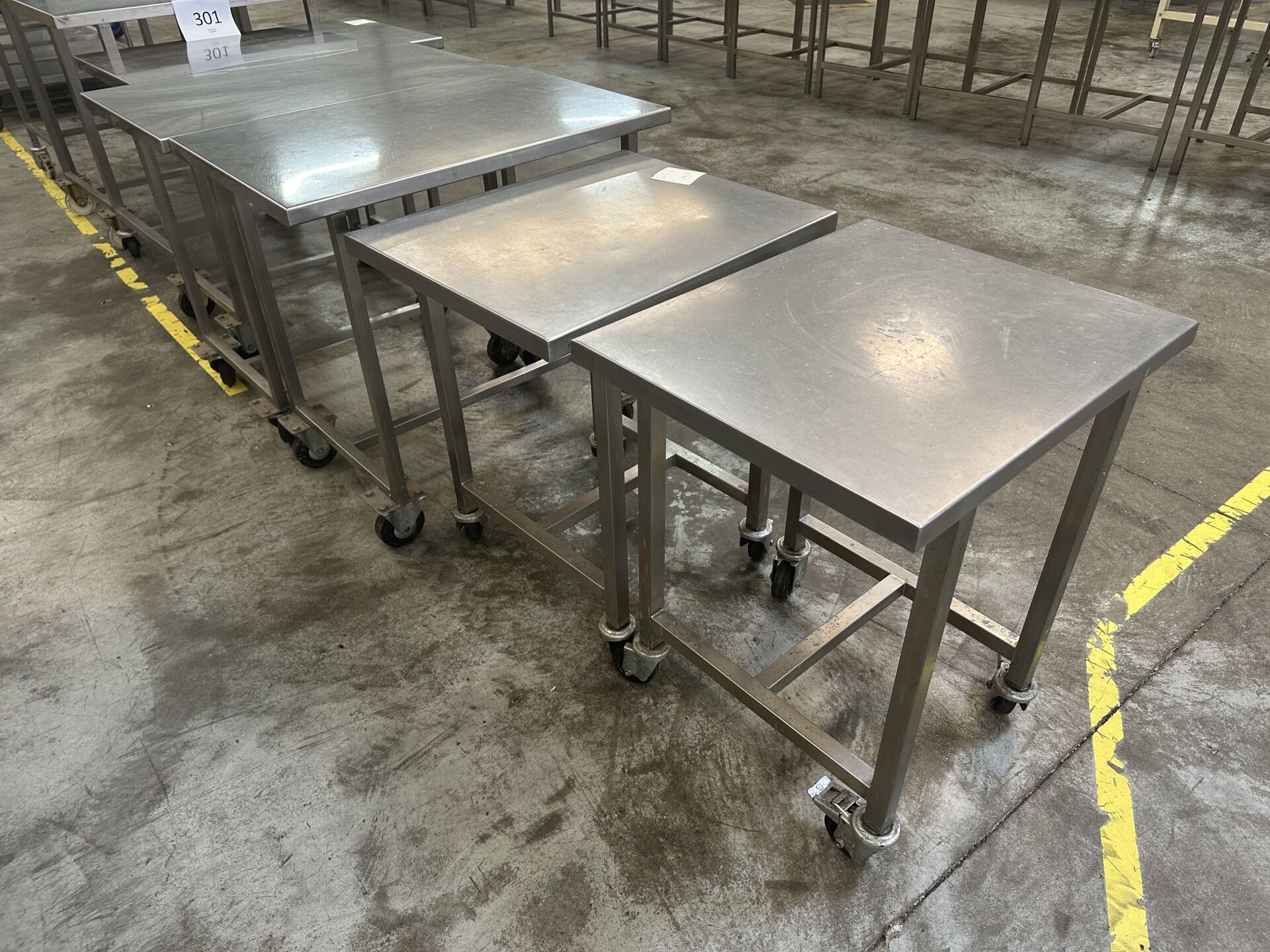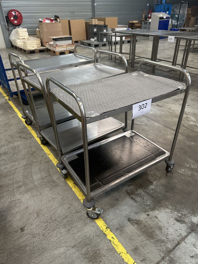 5 dessertes mobiles inox ( 4 en 60 x 50 cm et 1 en 80 x 50 cm)