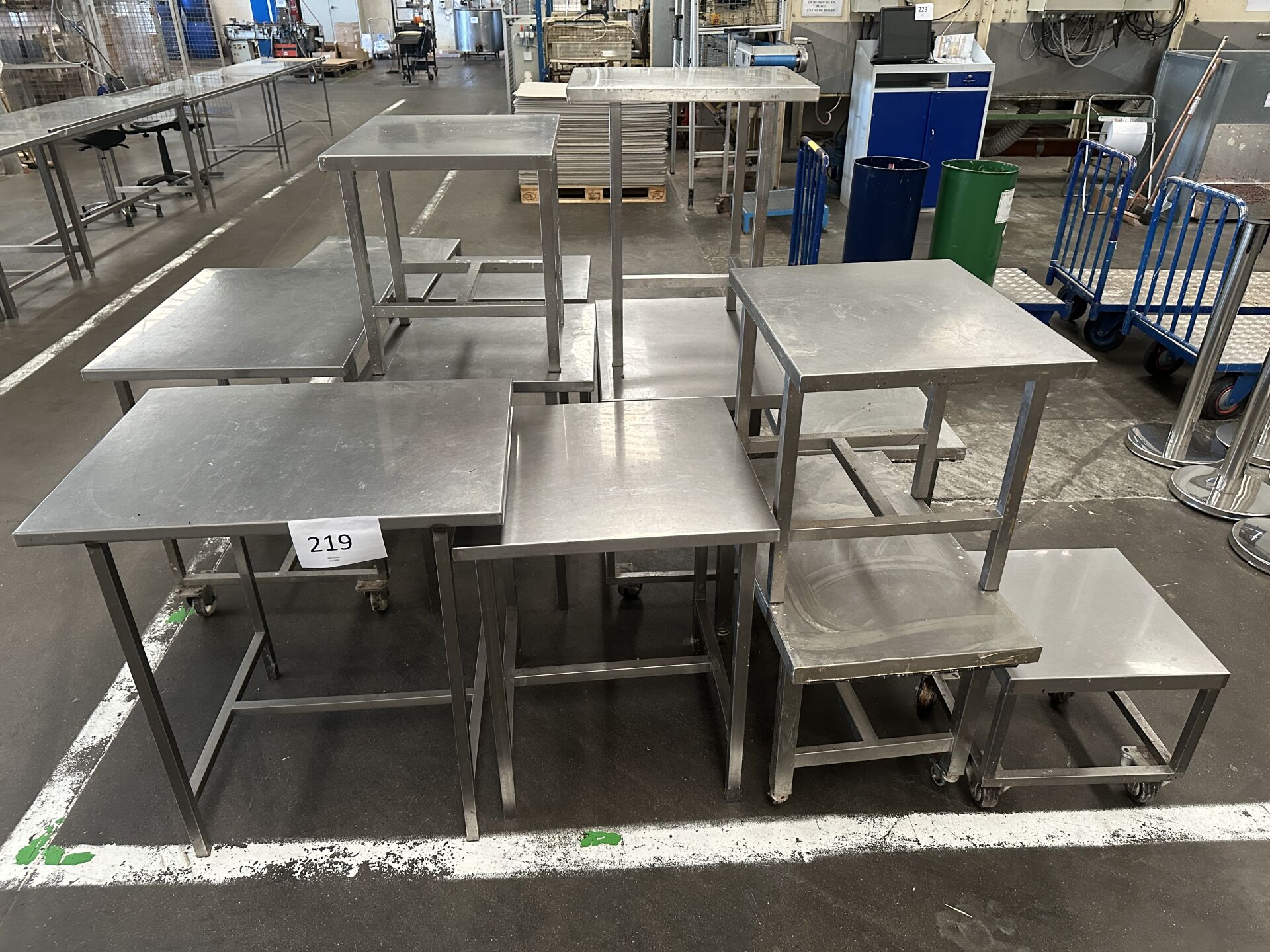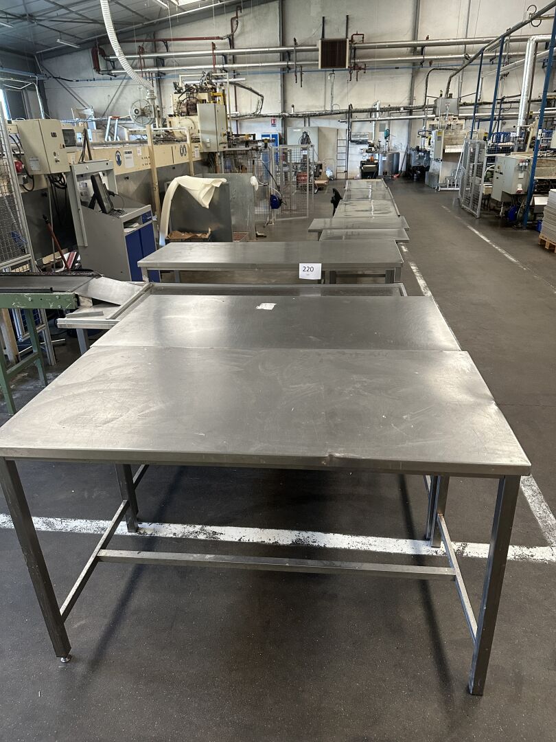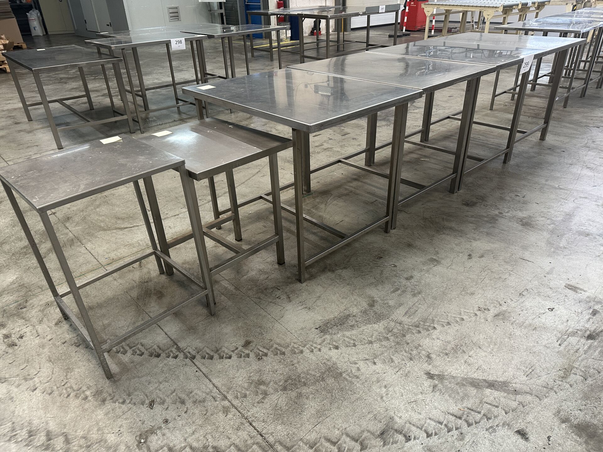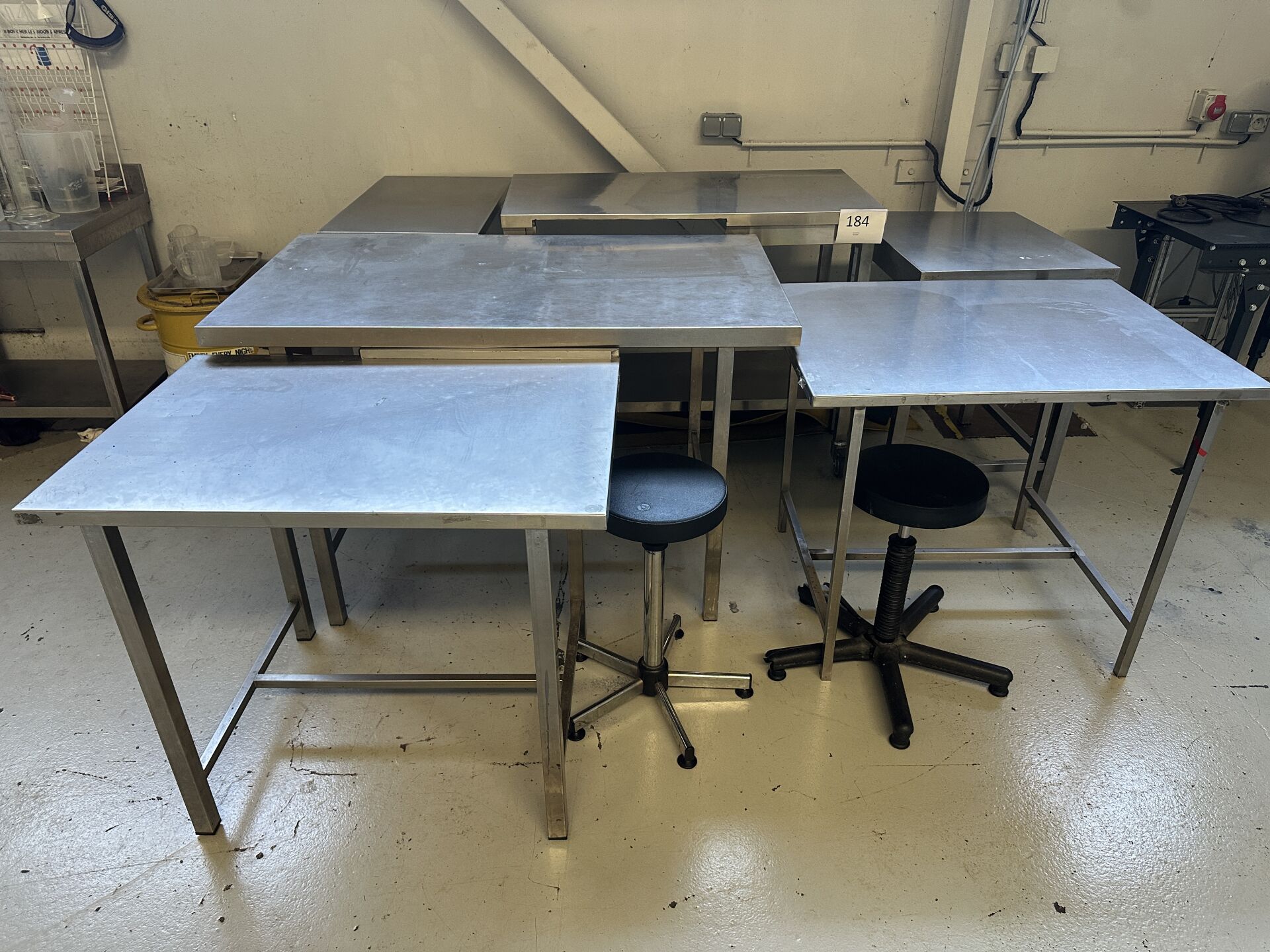 4 dessertes inox (2 en 81 x 61 cm mobiles) et (1 en 81 x 60 cm et 1 en 96 x 40 cm fixes)