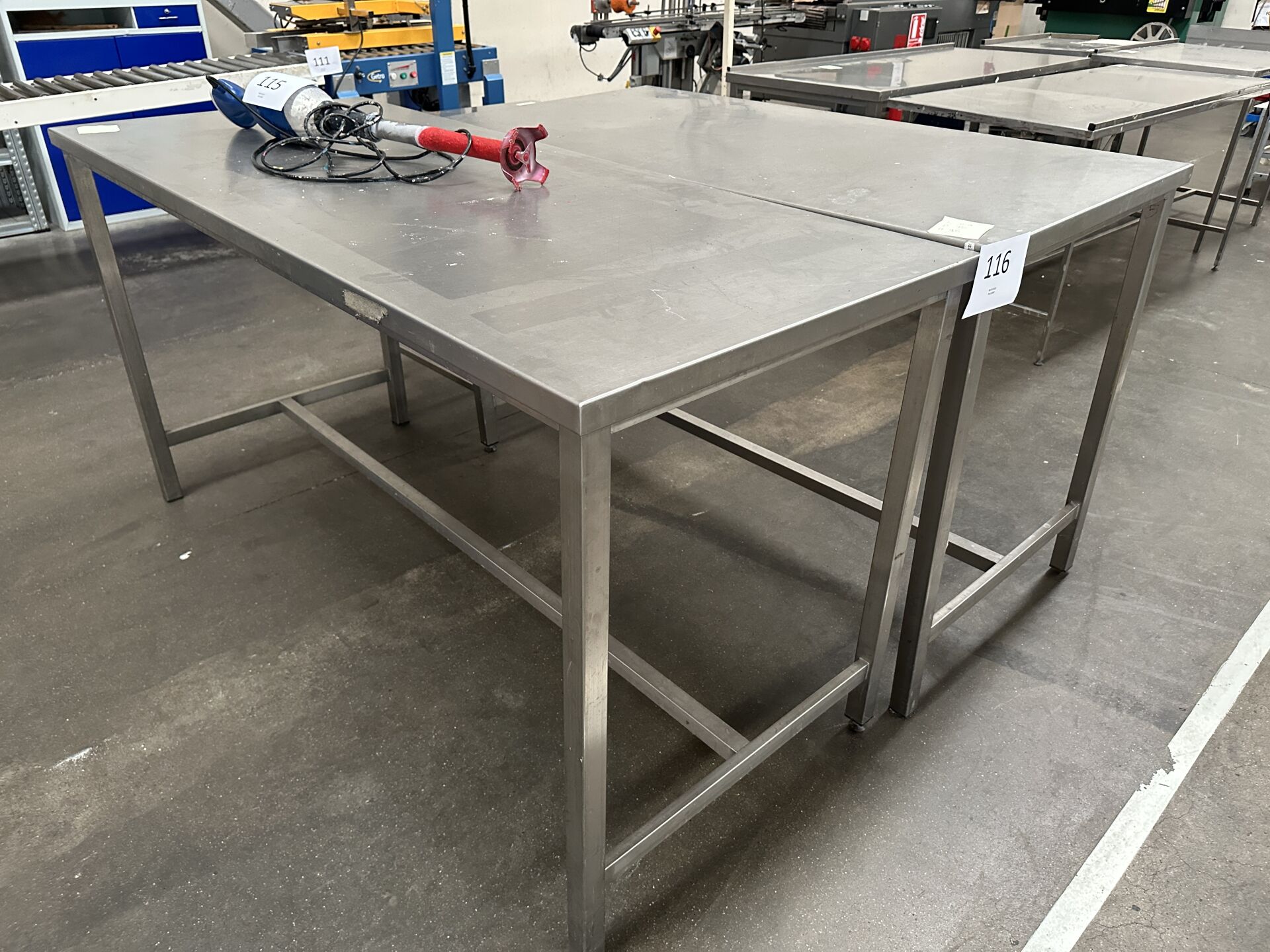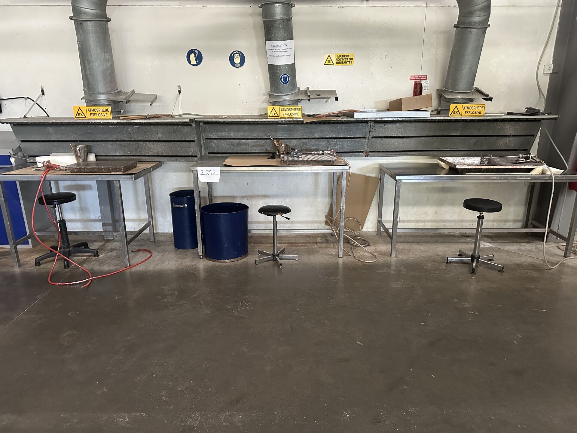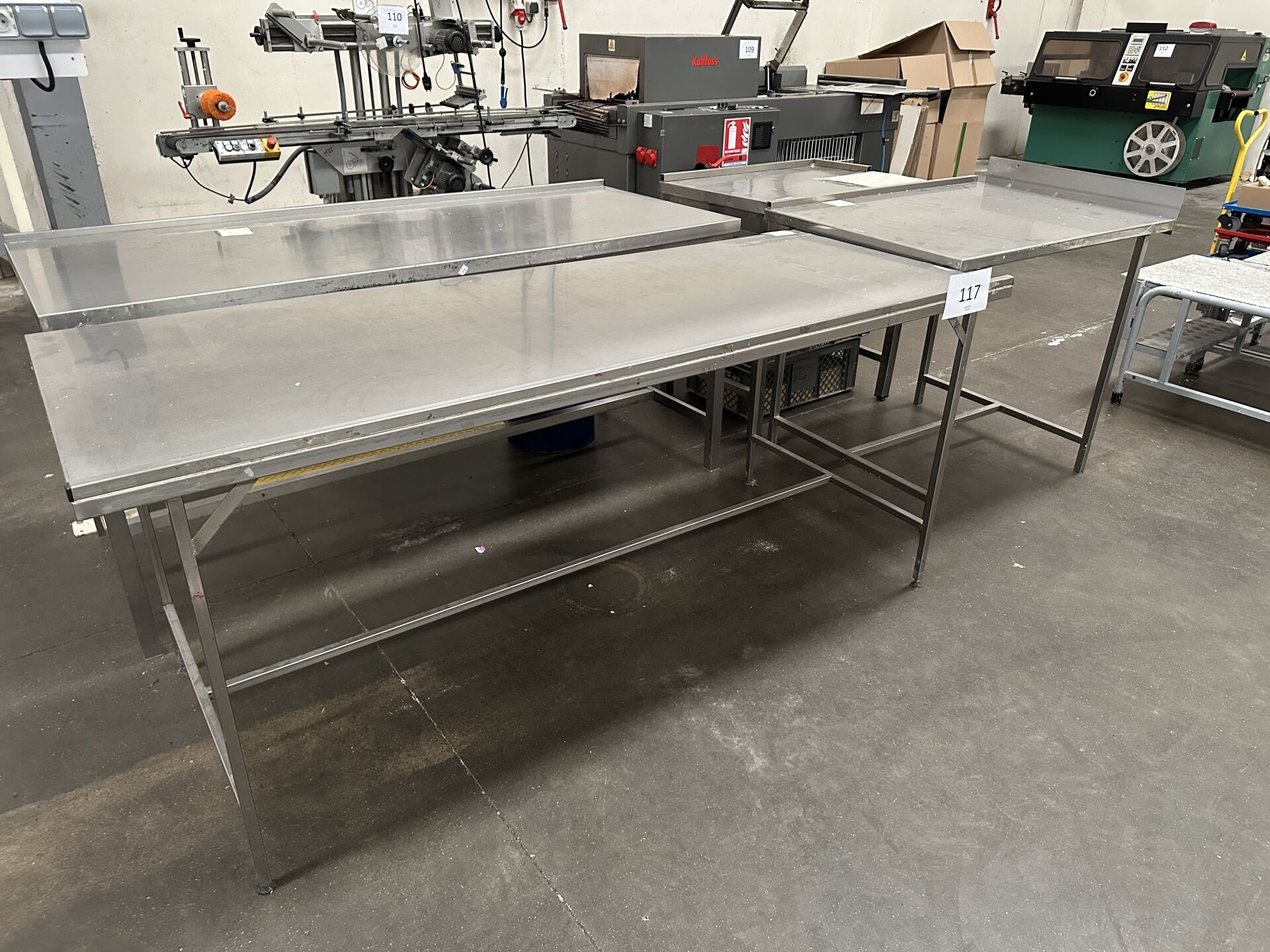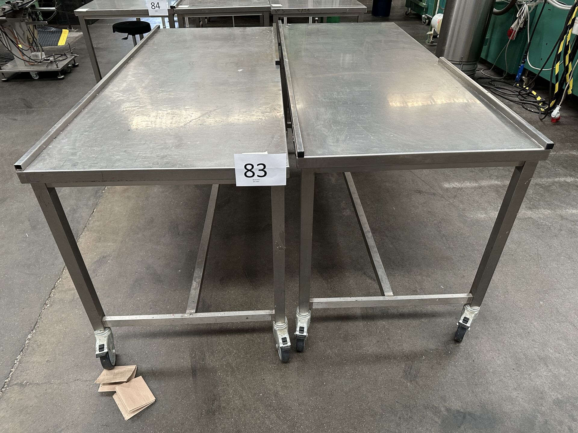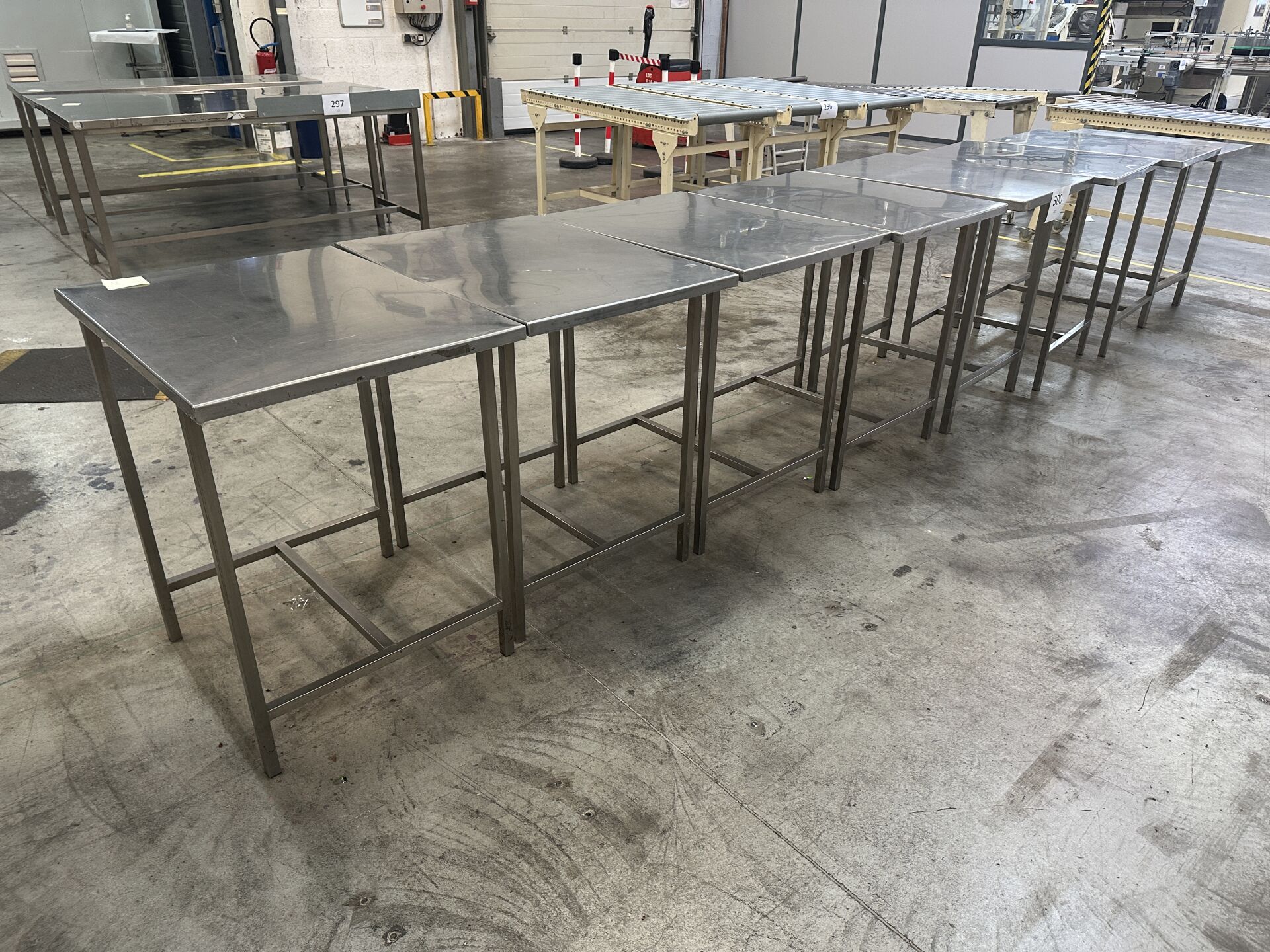 4 dessertes inox (2 en 81 x 61 cm mobiles) et (1 en 81 x 60 cm et 1 en 96 x 40 cm fixes)