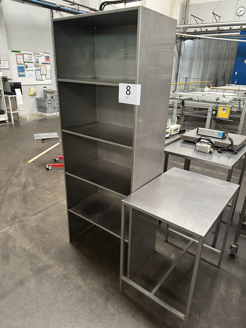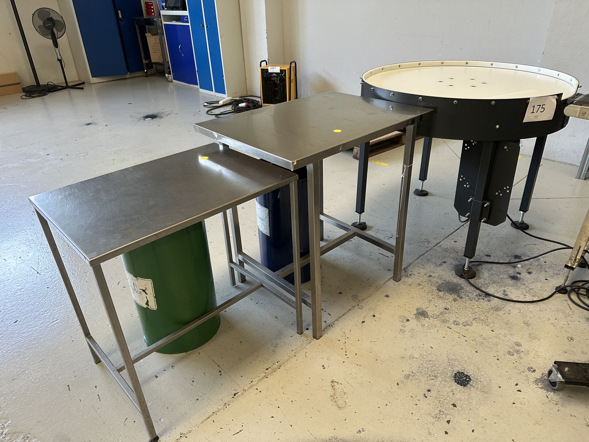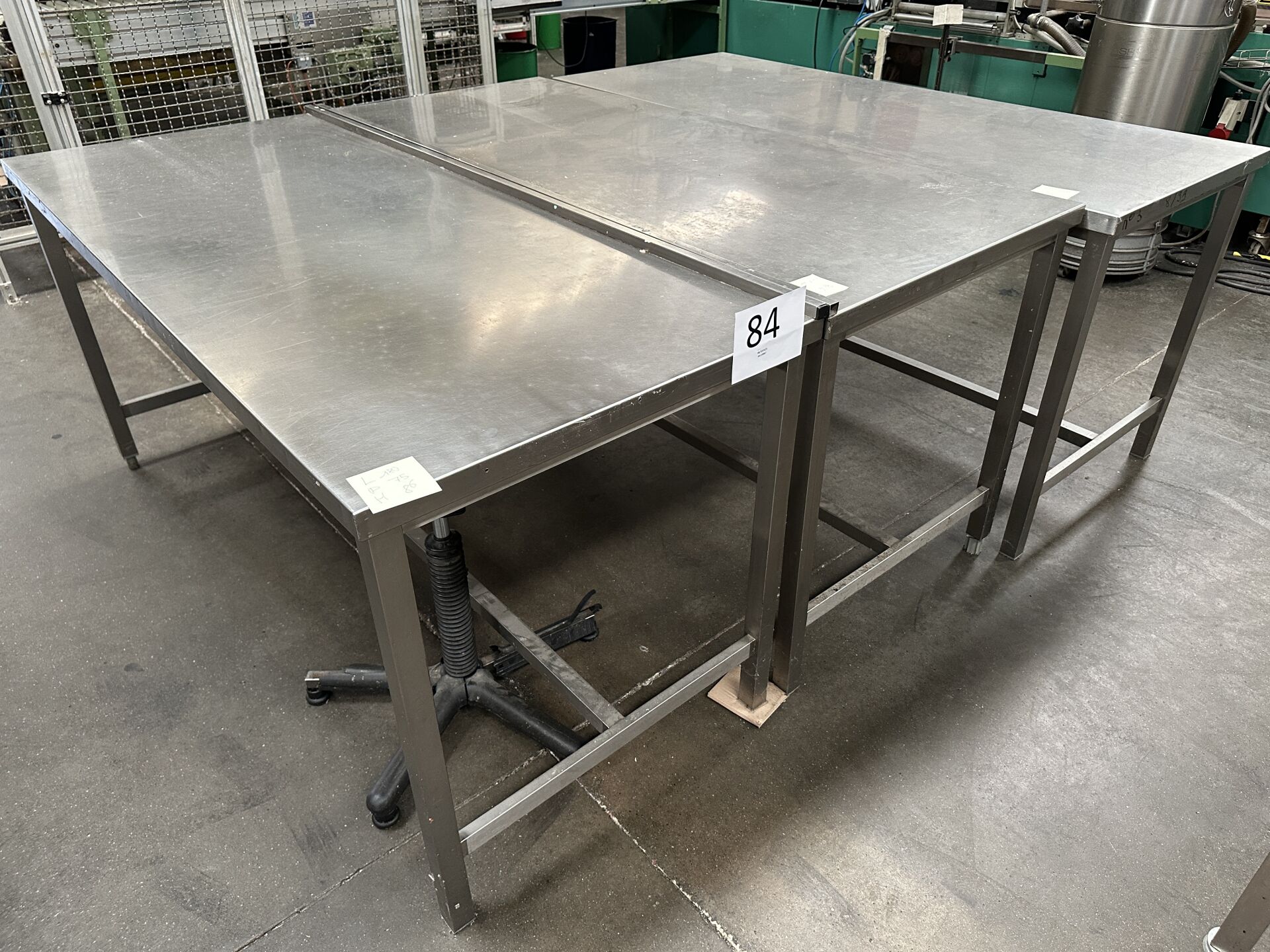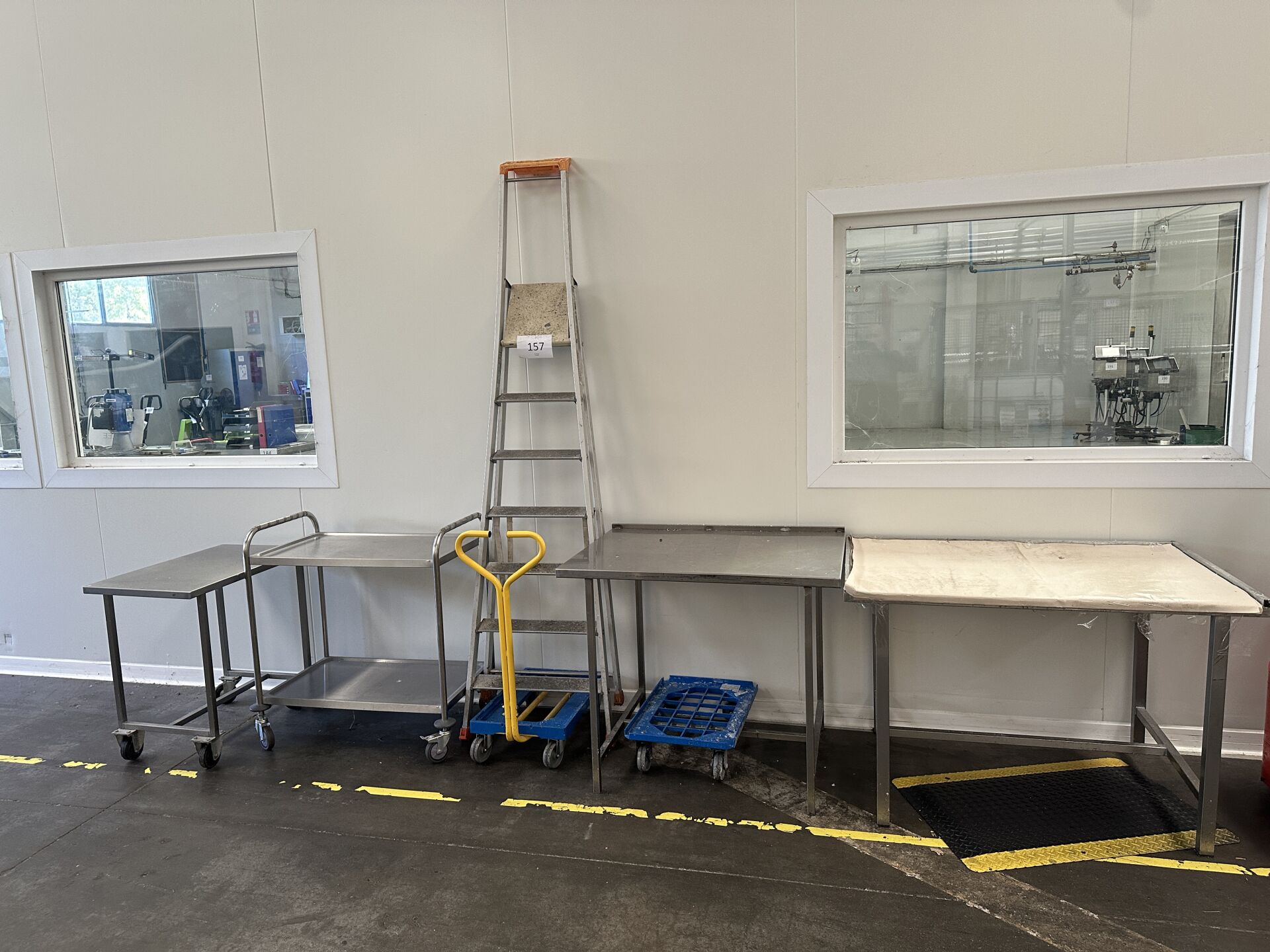 4 dessertes inox (2 en 81 x 61 cm mobiles) et (1 en 81 x 60 cm et 1 en 96 x 40 cm fixes)