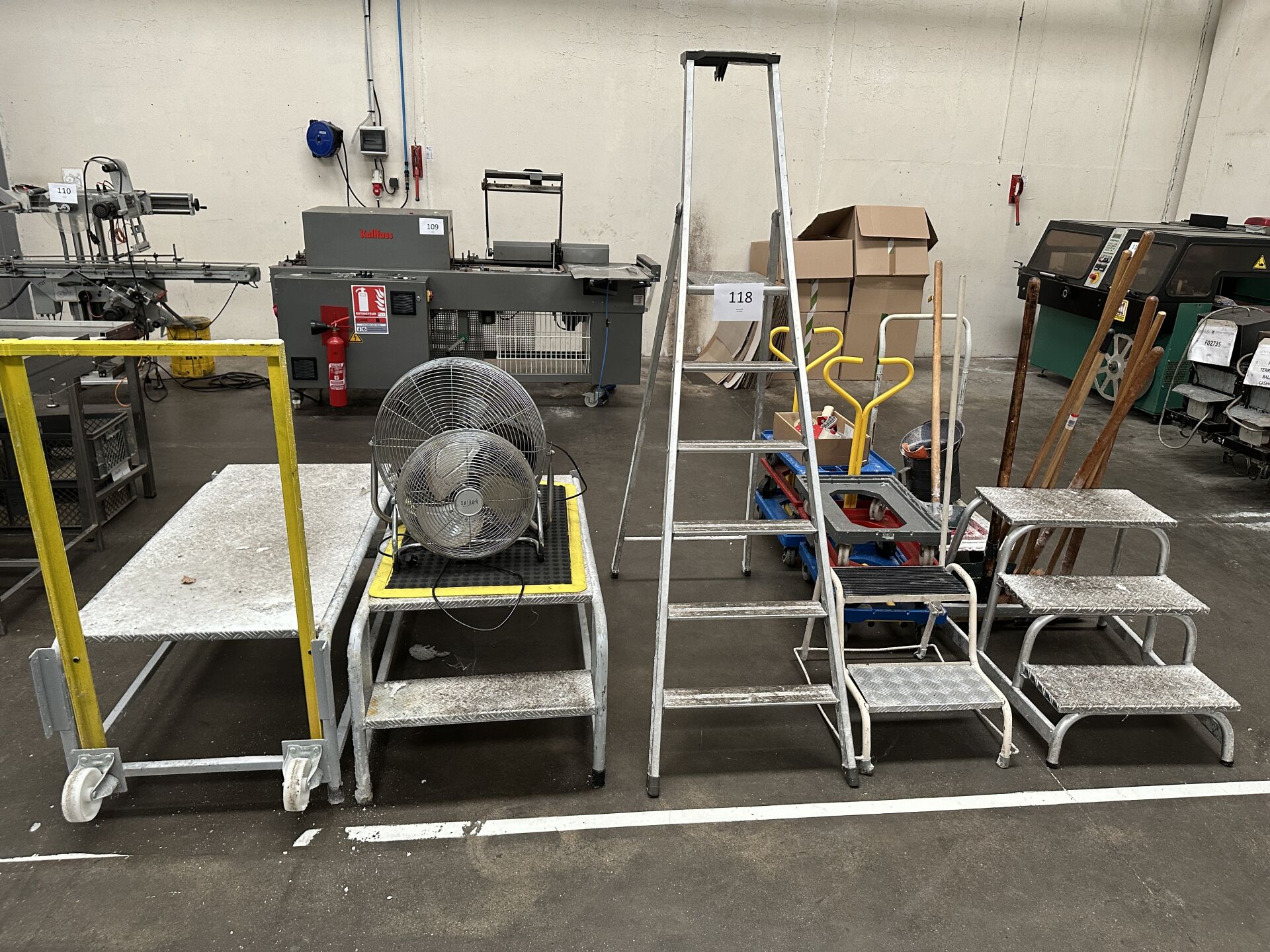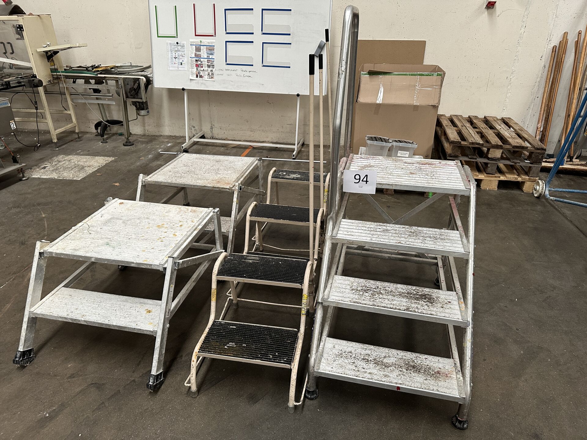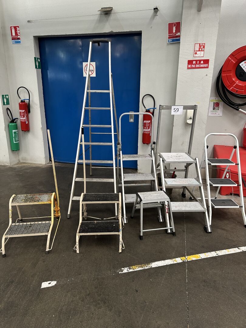 1 ensemble de marche-pieds et escabeaux alu : 1 de 7 marches, 3 de 3 marches, 3 marche-pieds