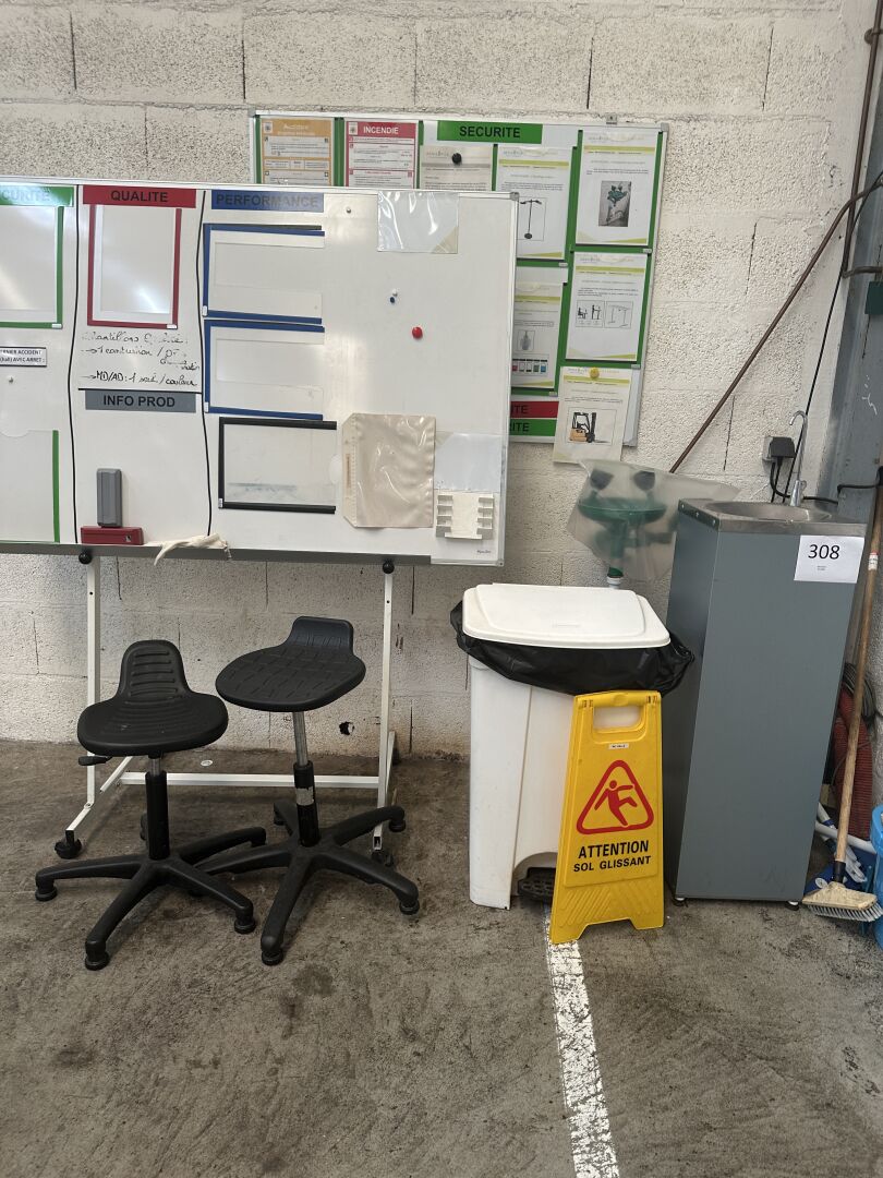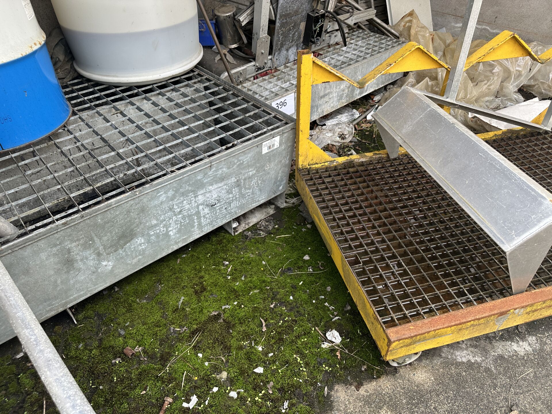 sous un préau (derrière local chaudière) : 2 bacs de rétention galva (120 x 120 x 30 cm et...