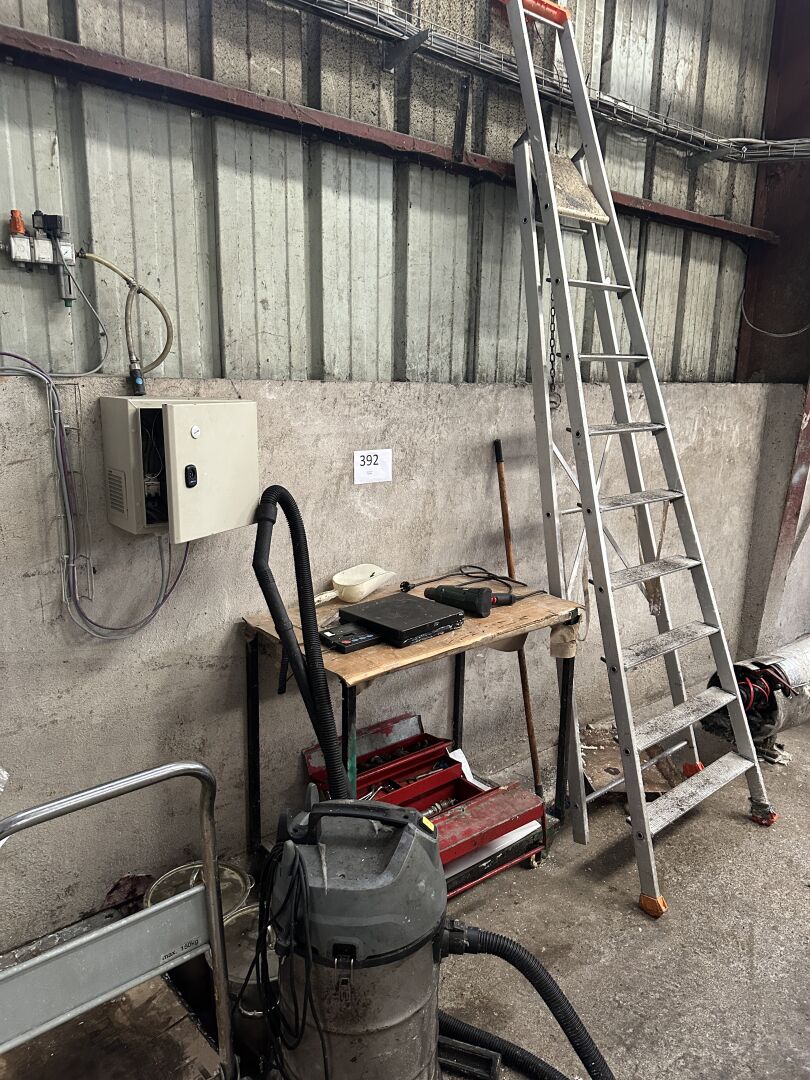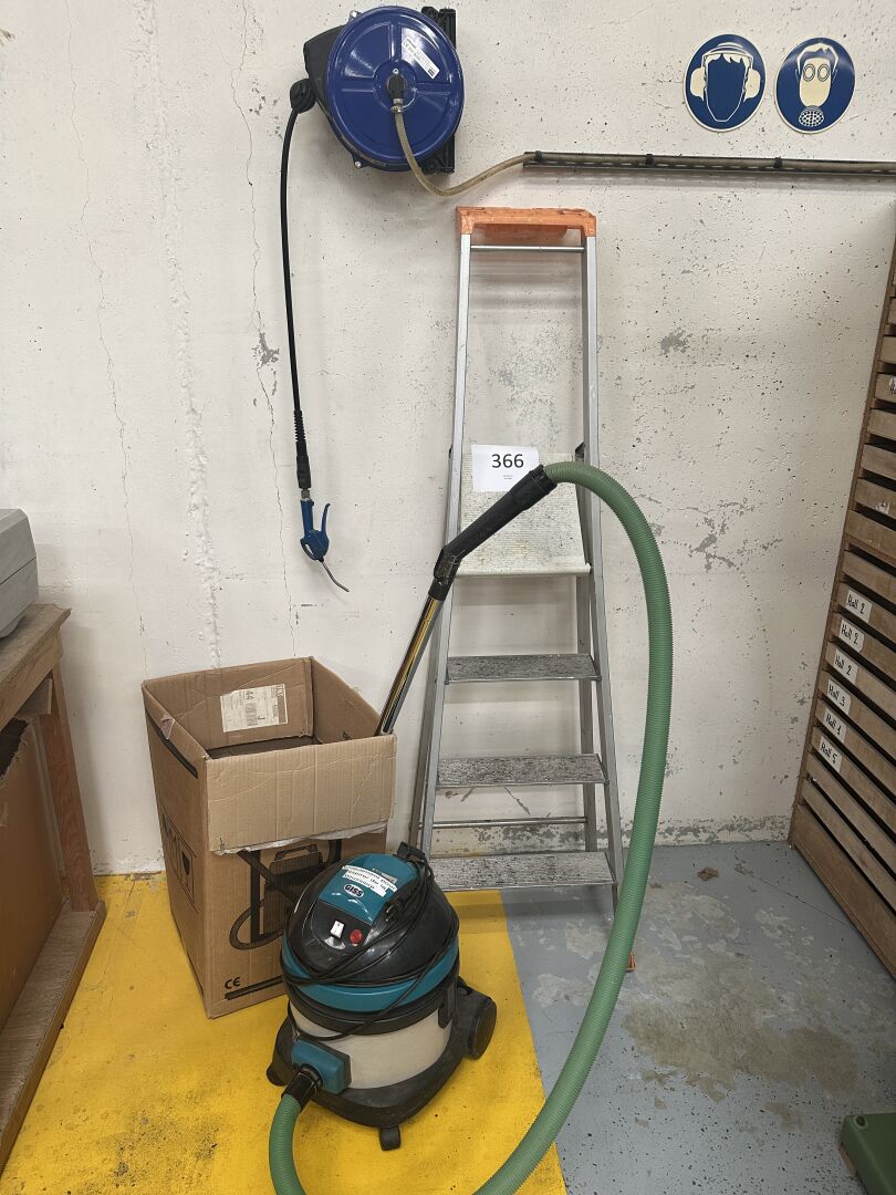 1 aspirateur bidon GISS R2D 181 PX + 1 escabeau alu 4 marches et 1 dérouleur de boyau...
