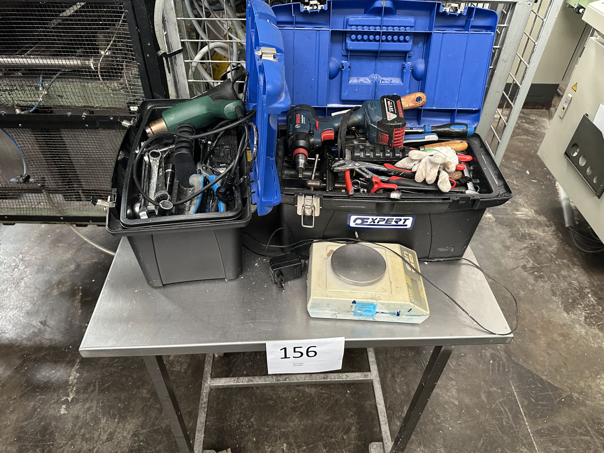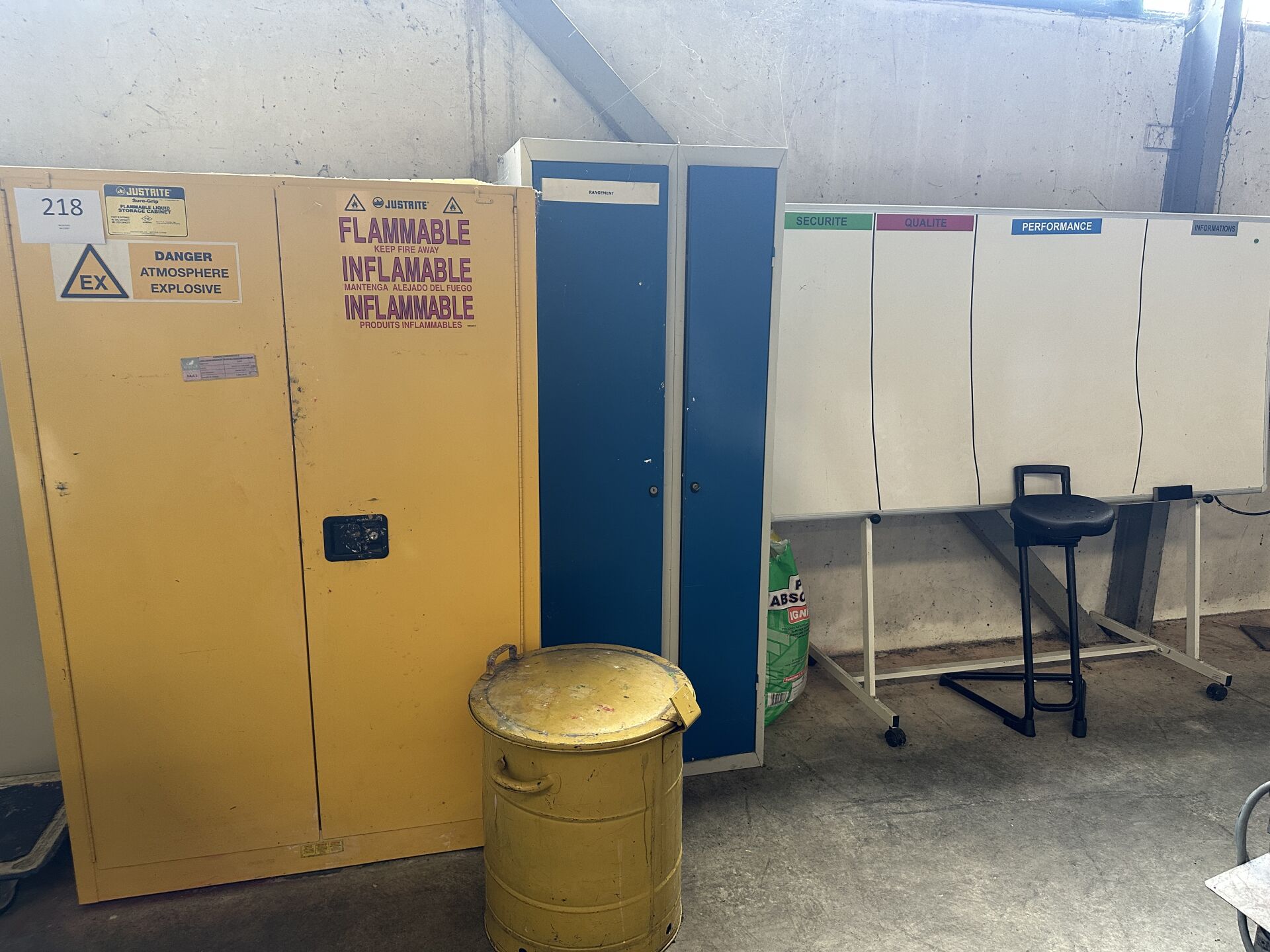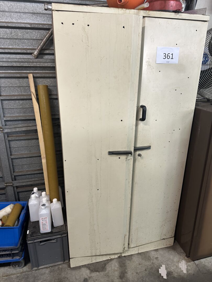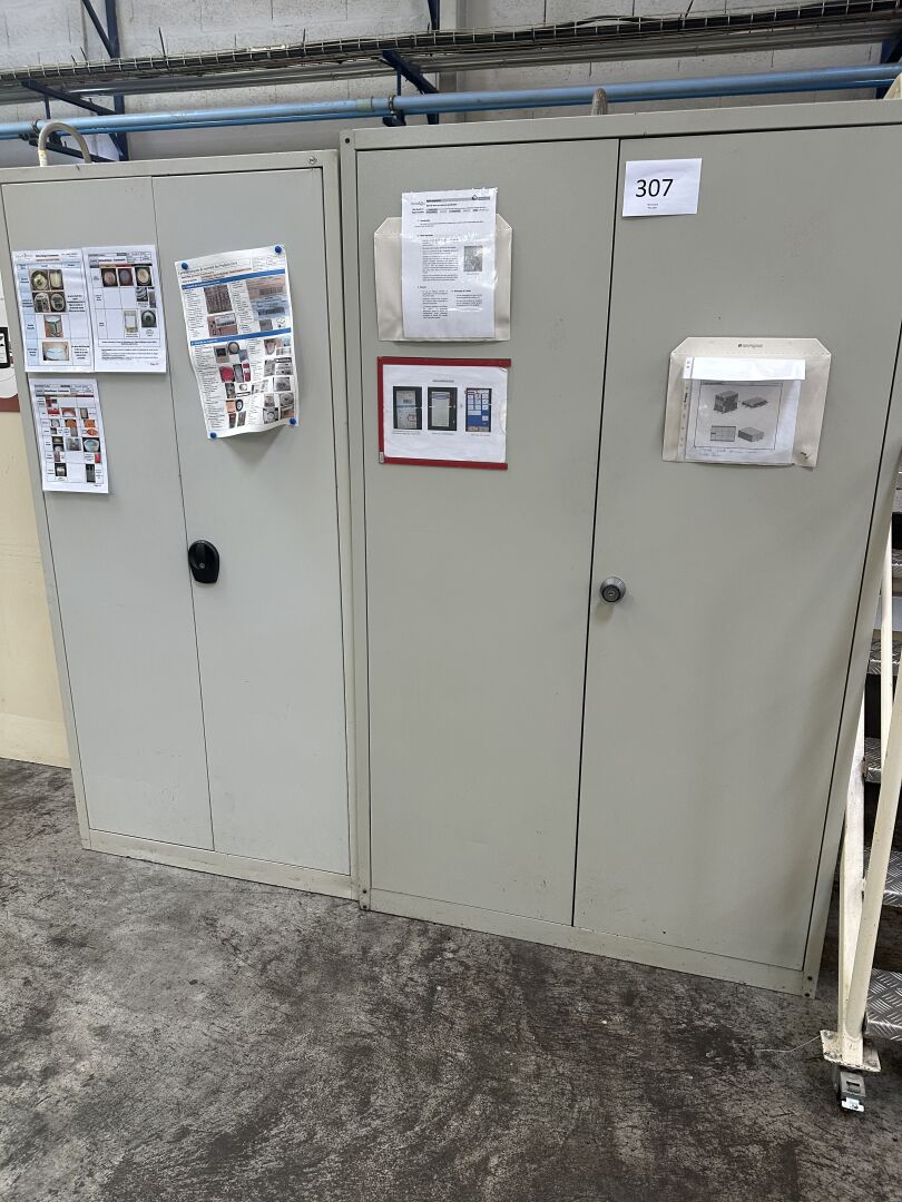 1 armoire 2 portes métal beige avec accessoires de machines-outils, petite quincaillerie,...