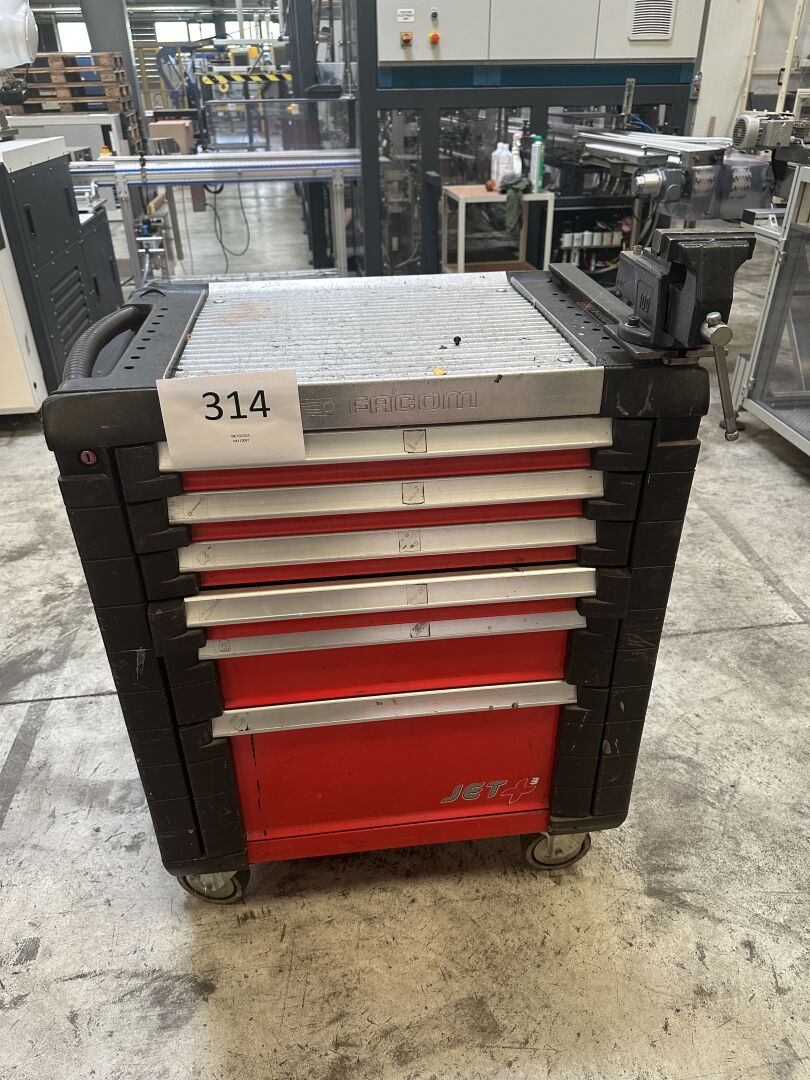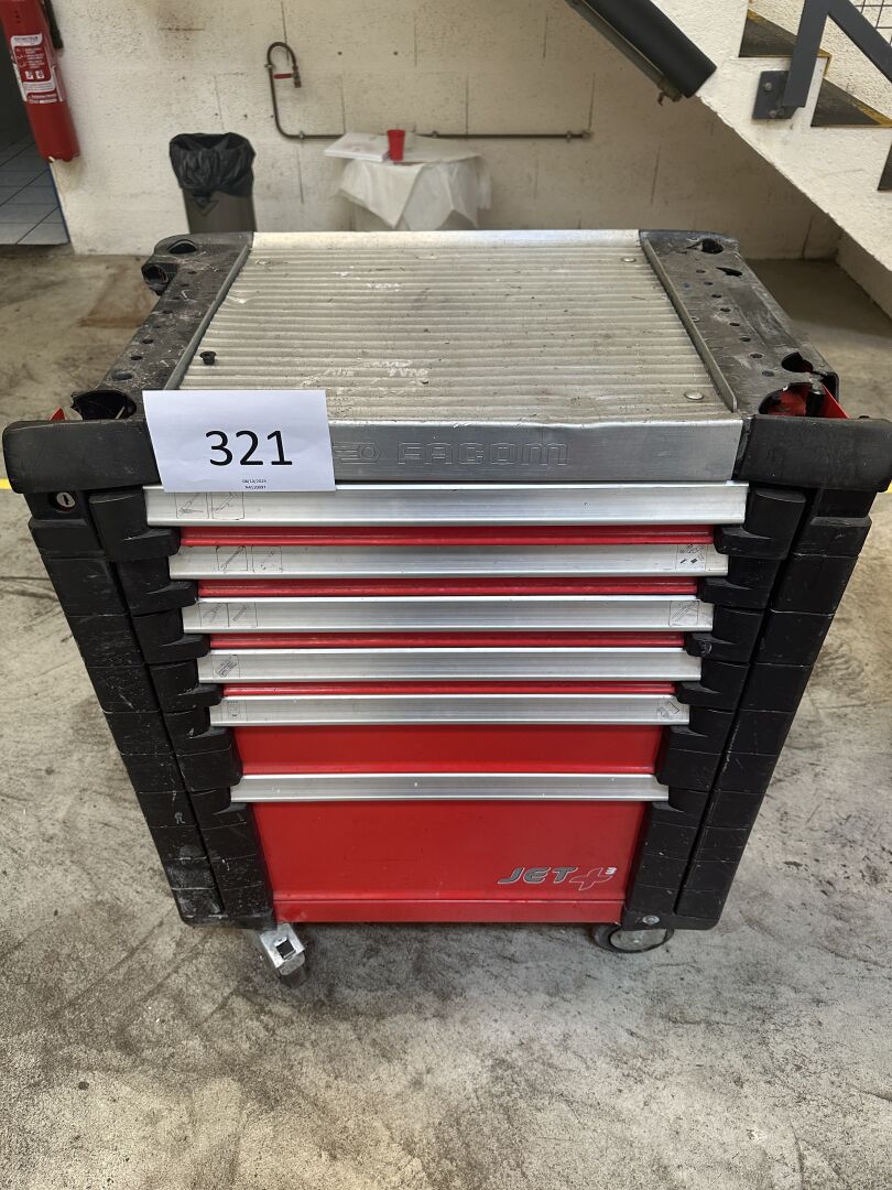 1 meuble à 17 tiroirs métal gris avec contenu de tarauds, filières, tournevis, clés allen,...