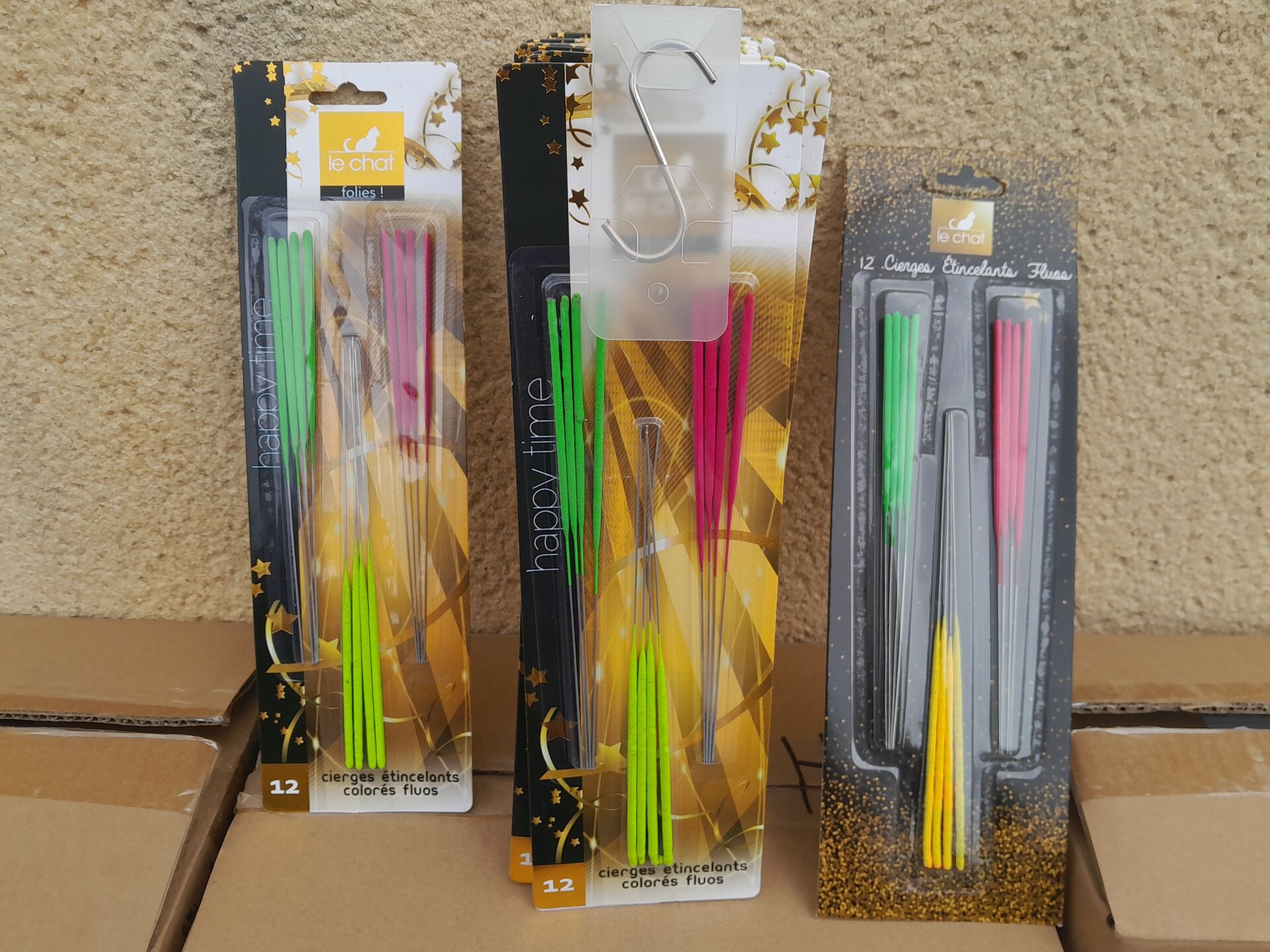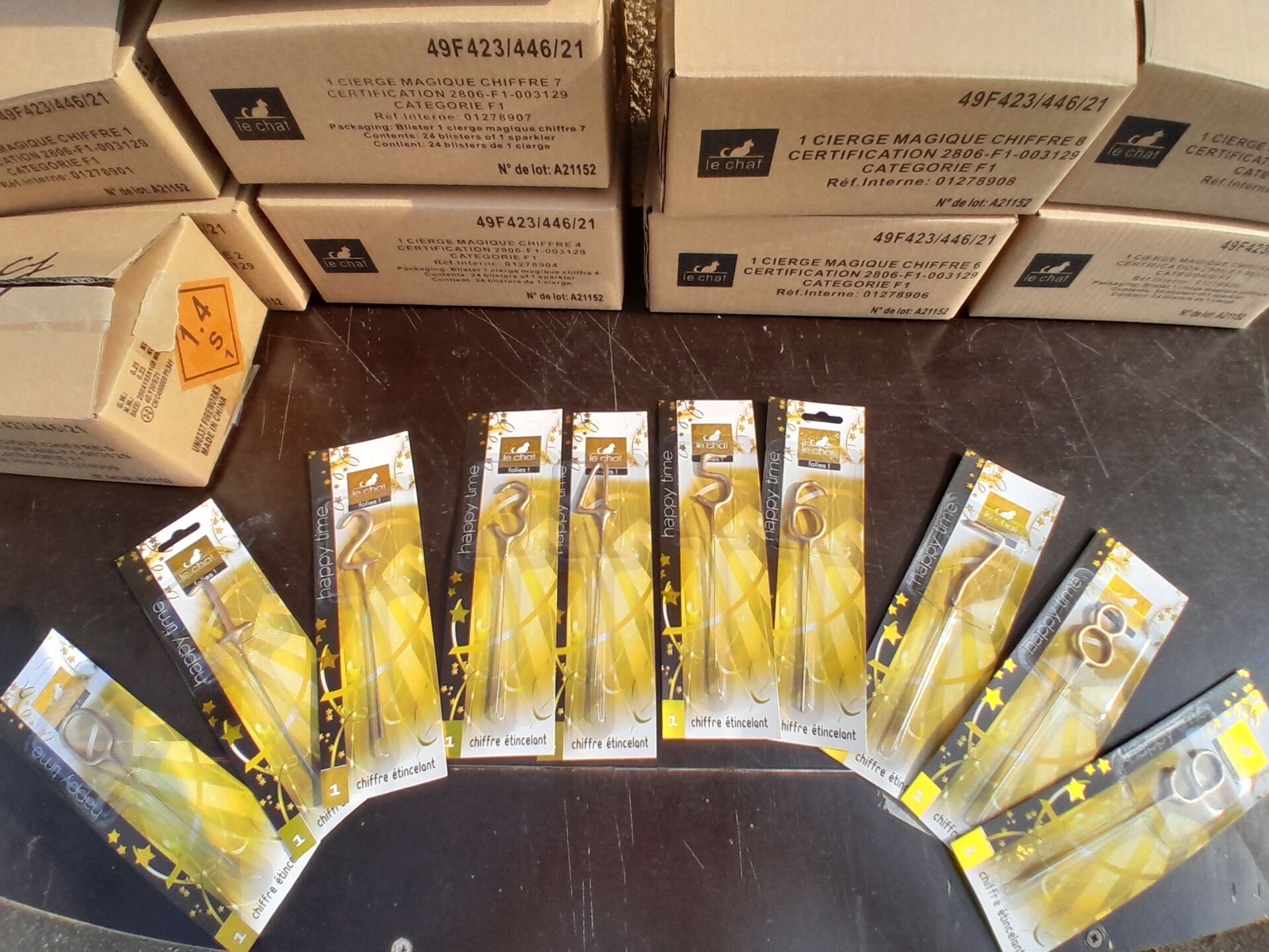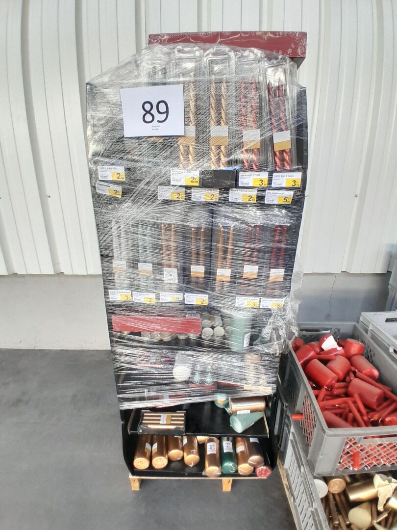 Sur 8 palettes au sol, environ 8960 bougies et accessoires de fêtes dont environ 110 calendriers...