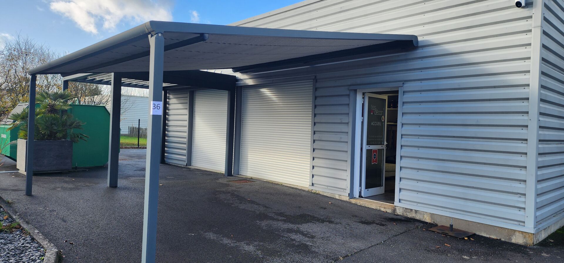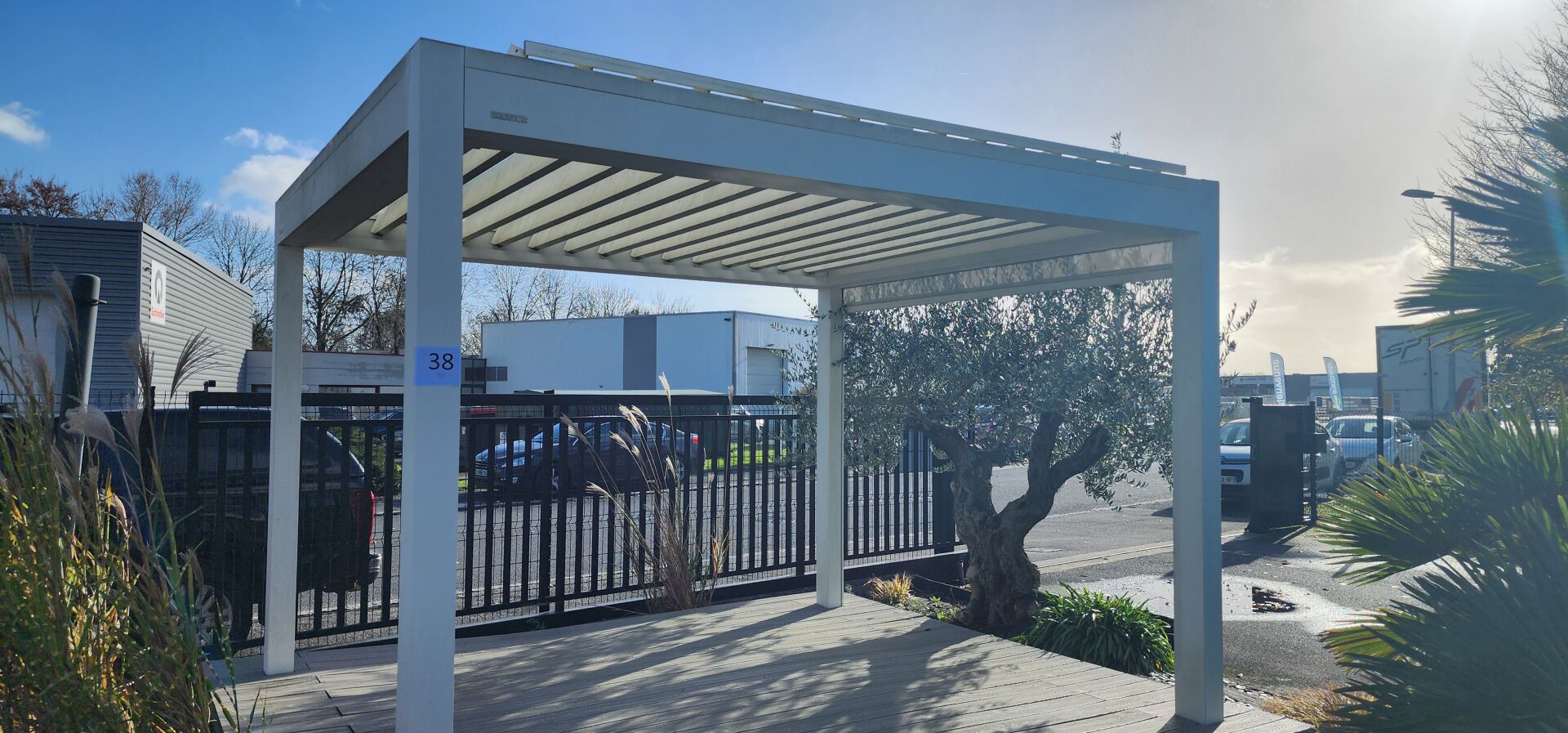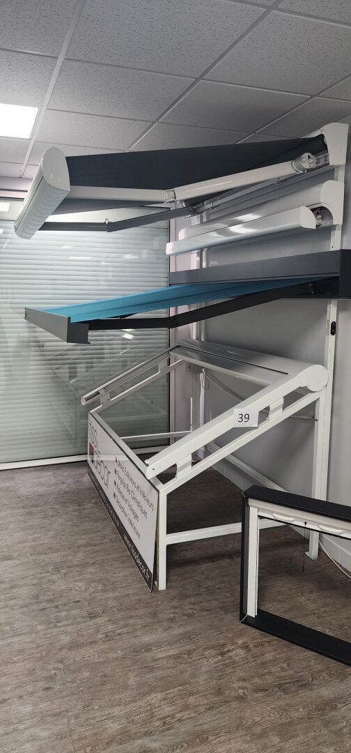 1 pergola BRUSTOR bioclimatique alu blanc à rideau électrique + 1 rideau électrique sur le...