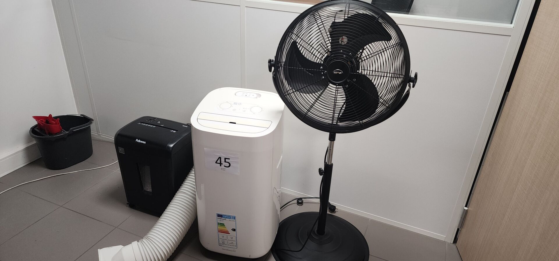 1 climatiseur mobile avec évacuation GOODHOME WAP-12EK26 , 1 ventilateur sur pied