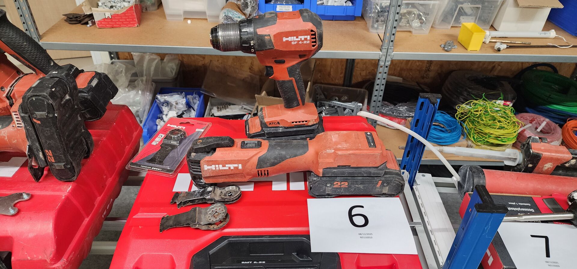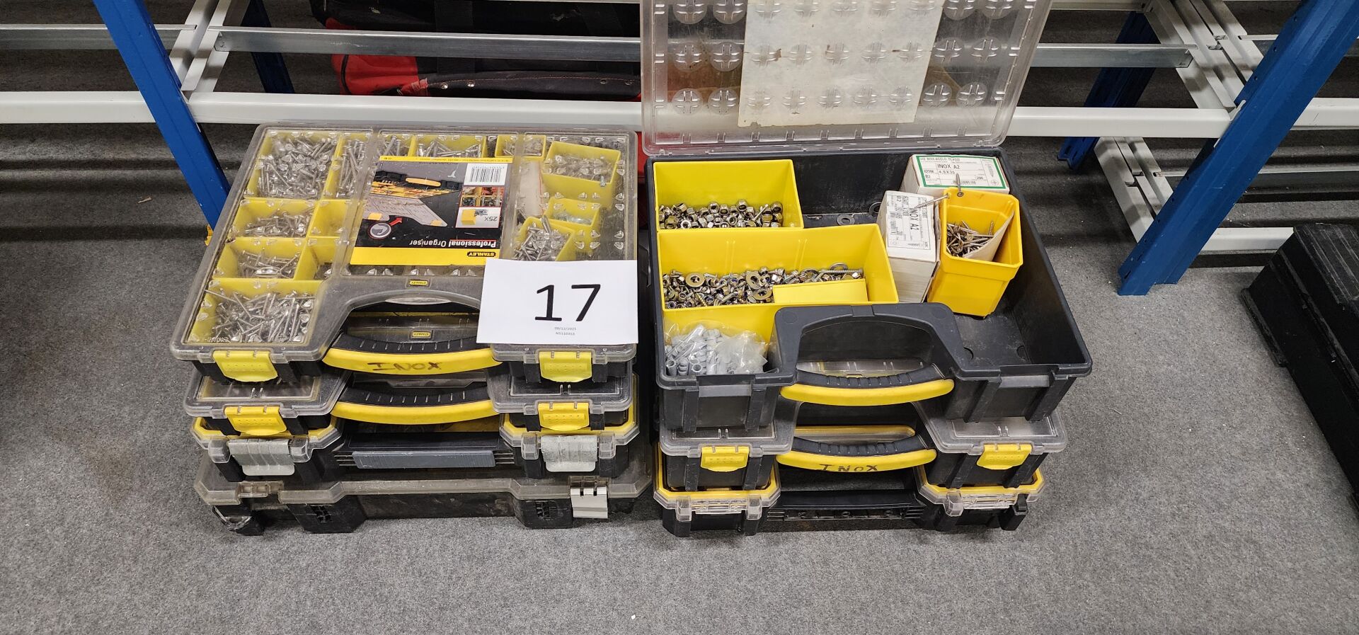 réparti dans un local : 1 stock de consommables dont vis, chevilles DuoPower, cartouches mousse...