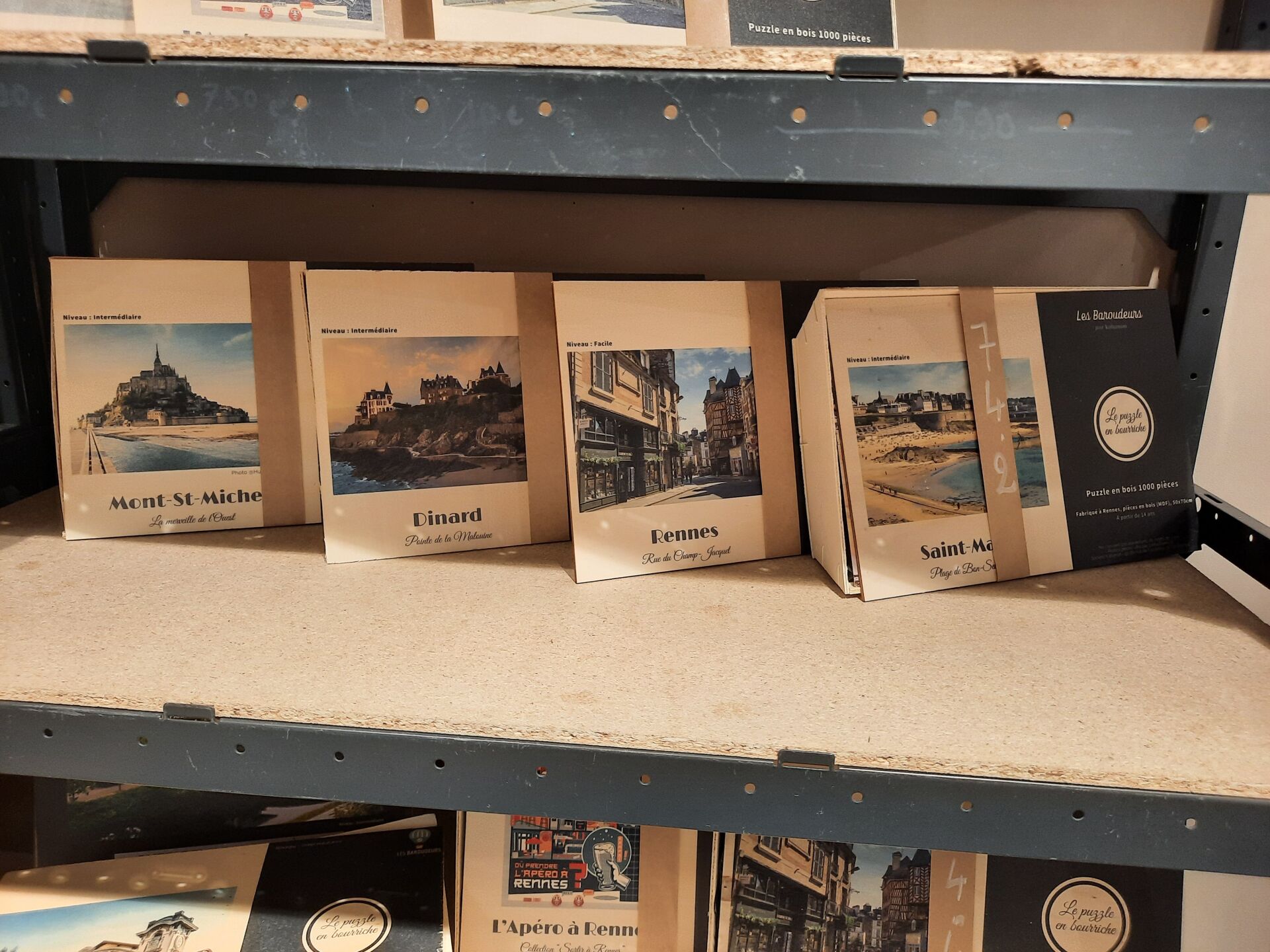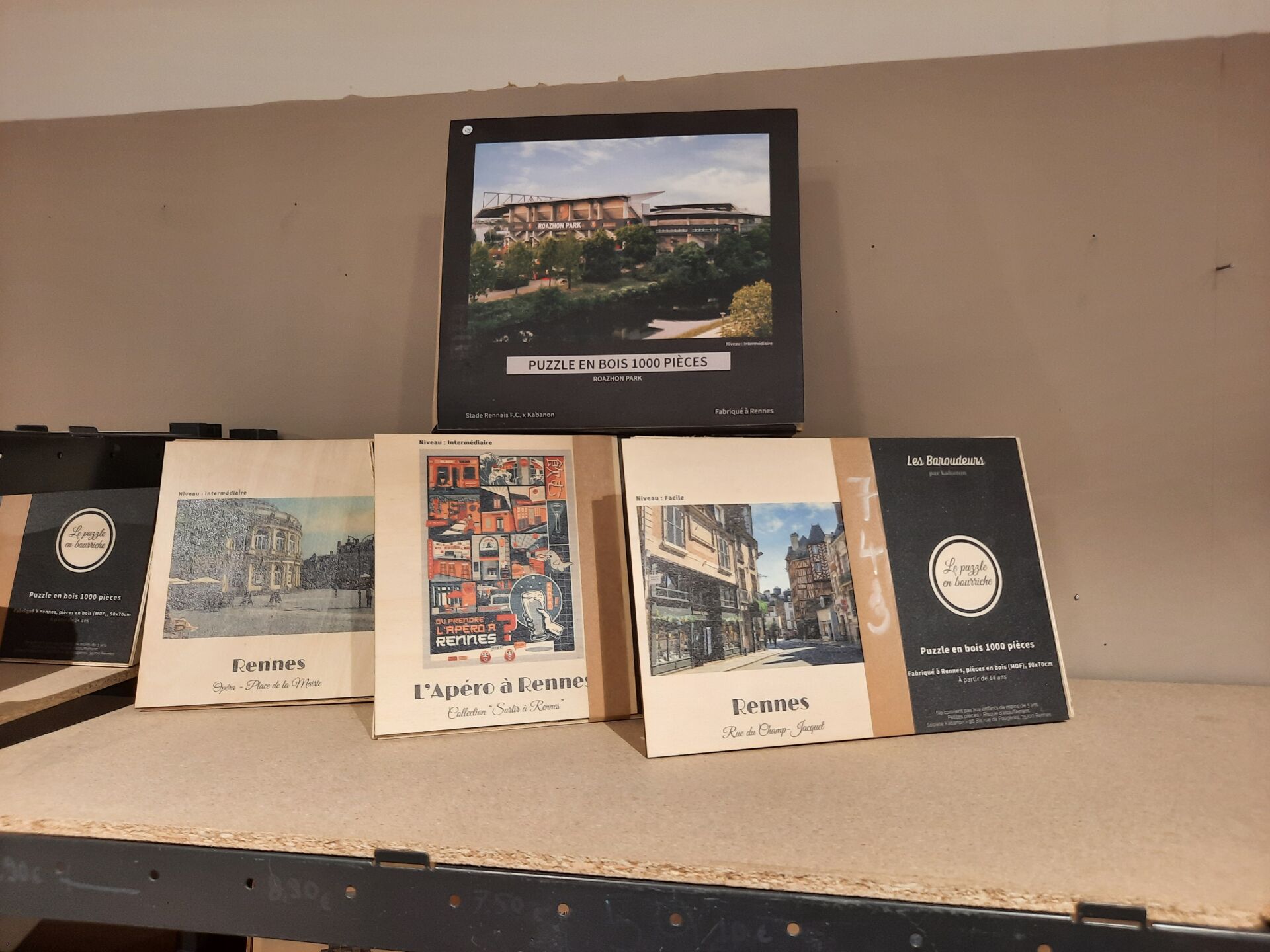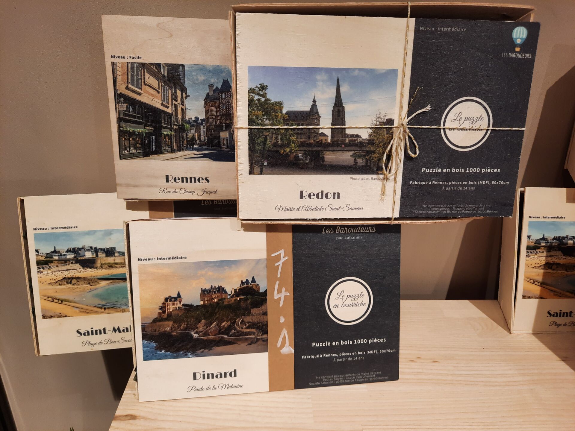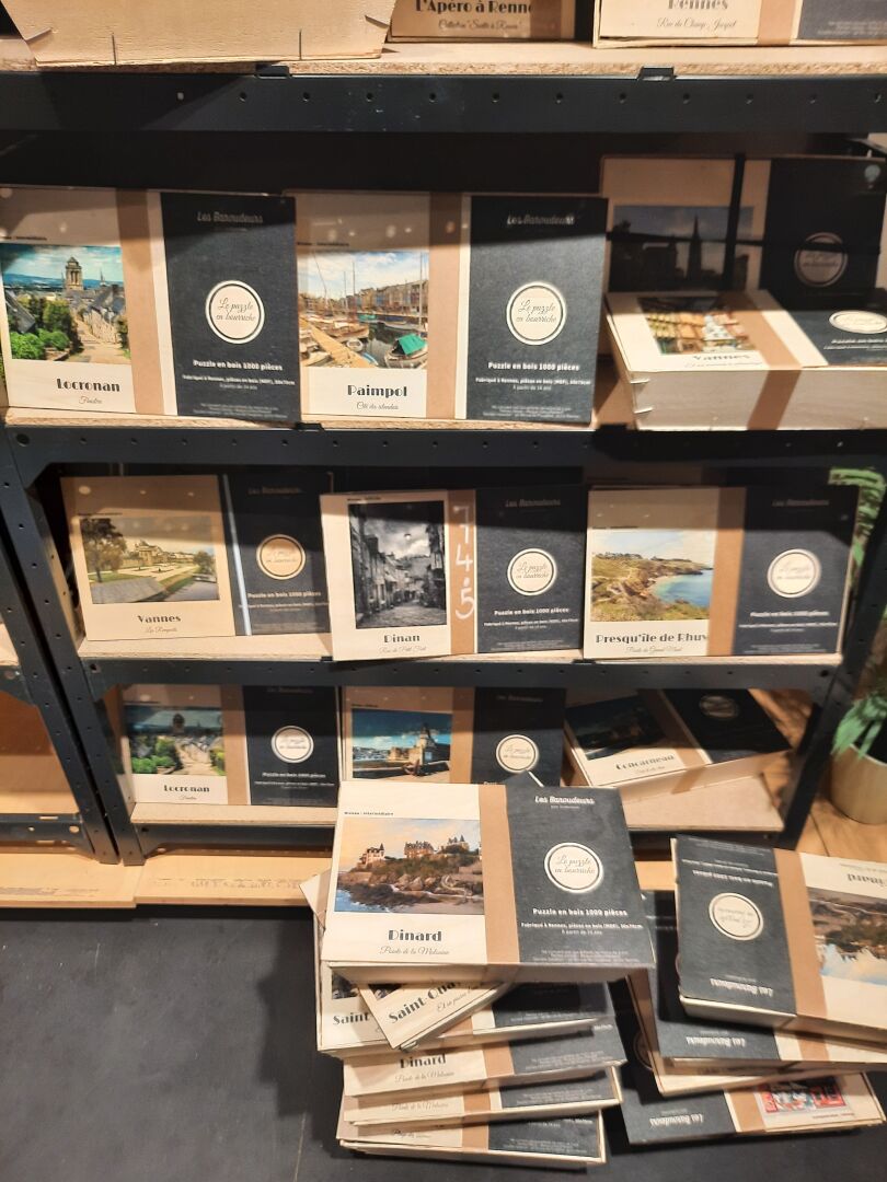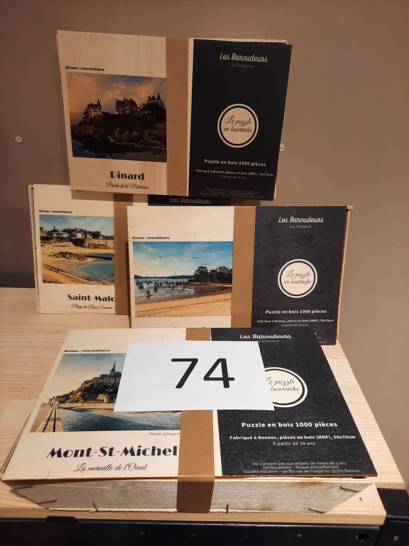 Ensemble de 70 puzzles en bois présentés en bourriche « les baroudeurs » (50*70), sur le...