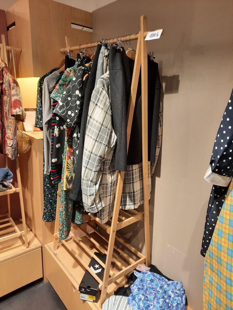 4 portants en bois naturel & portant en métal laqué noir