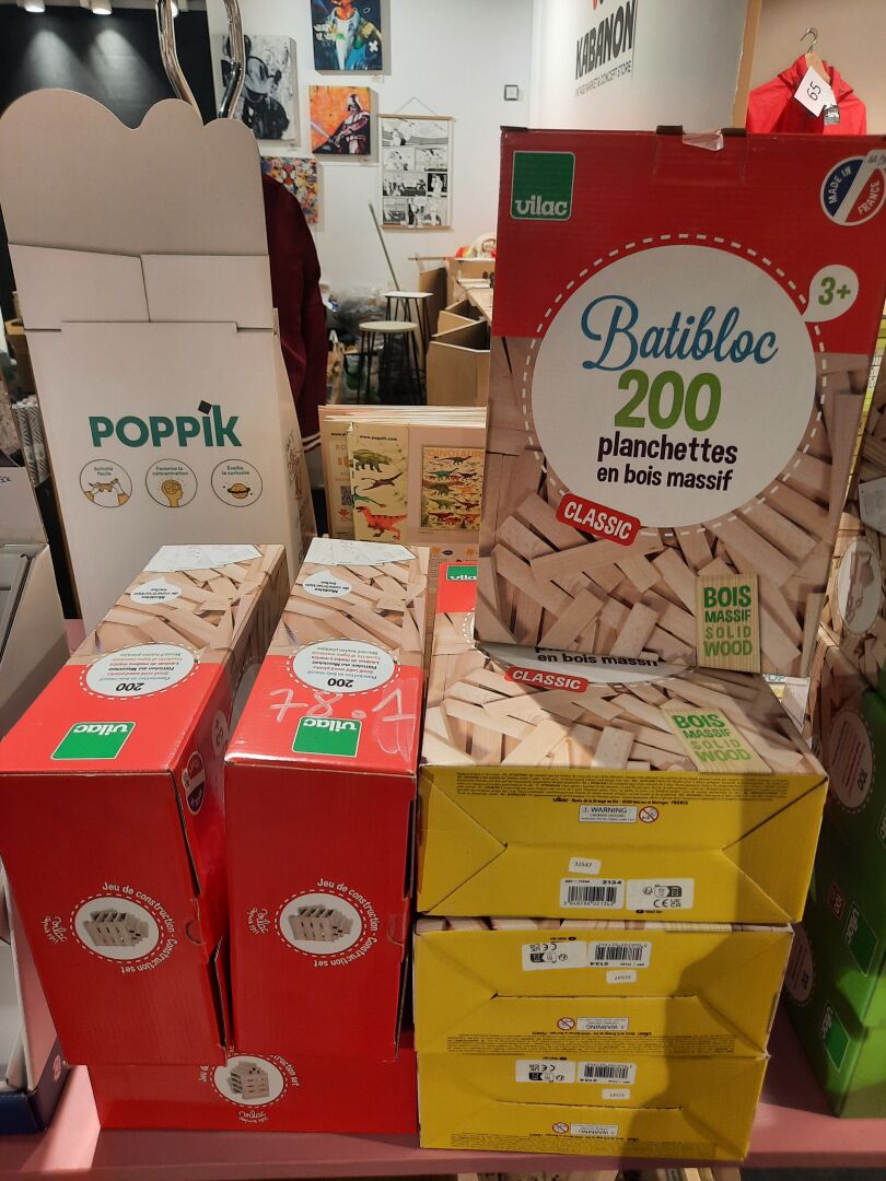 Ensemble de 7 boîtes VILAC de planchettes en bois (jeu de construction), 200 pièces, prix...