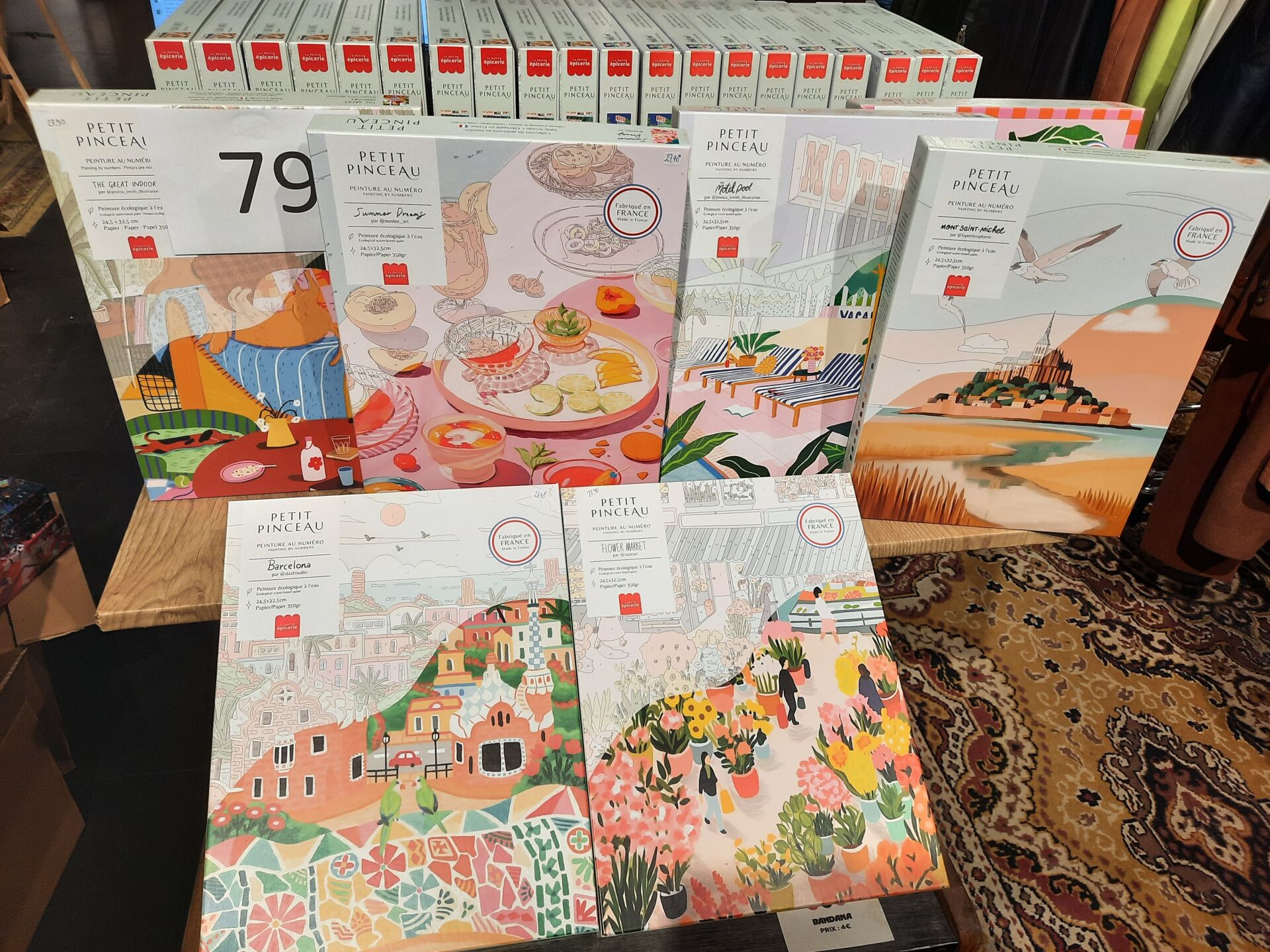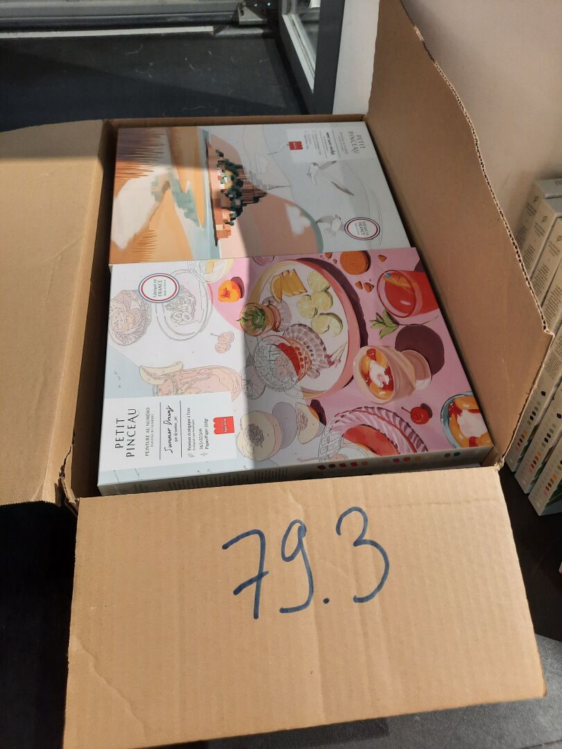 Ensemble de 20 Kits de peinture au numéro « la petite épicerie » dont Marché au fleurs,...