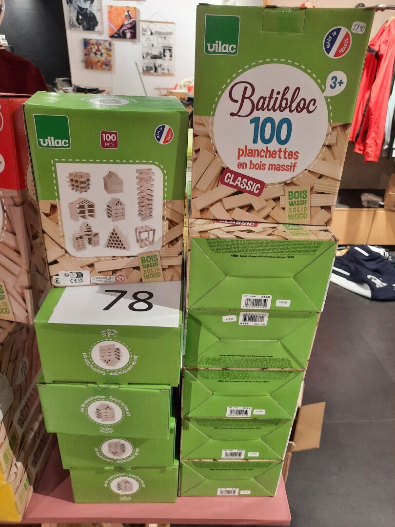 Ensemble de 11 boîtes VILAC de planchettes en bois (jeu de construction), 100 pièces, prix...