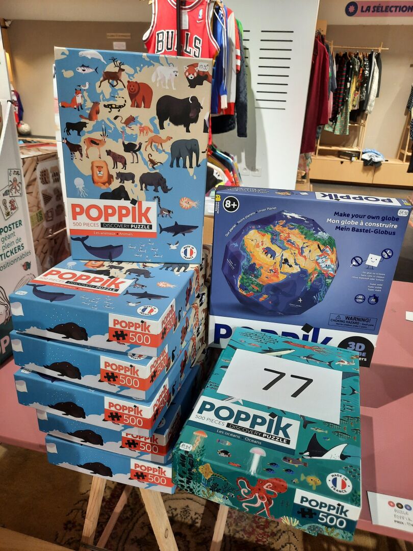 Ensemble de 9 puzzles « POPPIK », sur les thème des animaux & animaux marins. On joint...