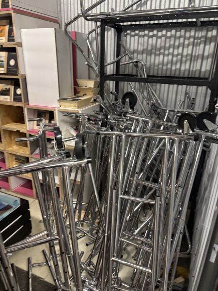 8 portants métalliques doubles en métal chromé, 6 portants métalliques simple en métal...