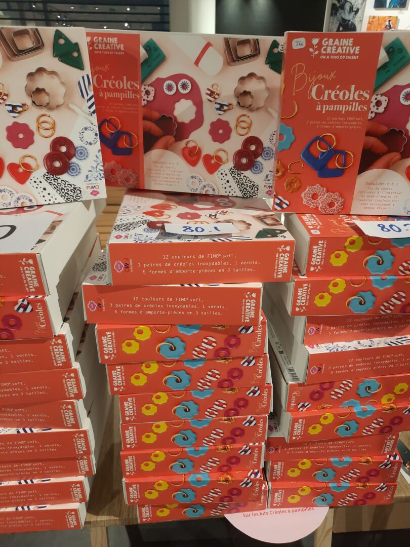 Ensemble de 15 kits créatifs « Bijoux créoles à pampilles » en pâte fimo (éd Graine...