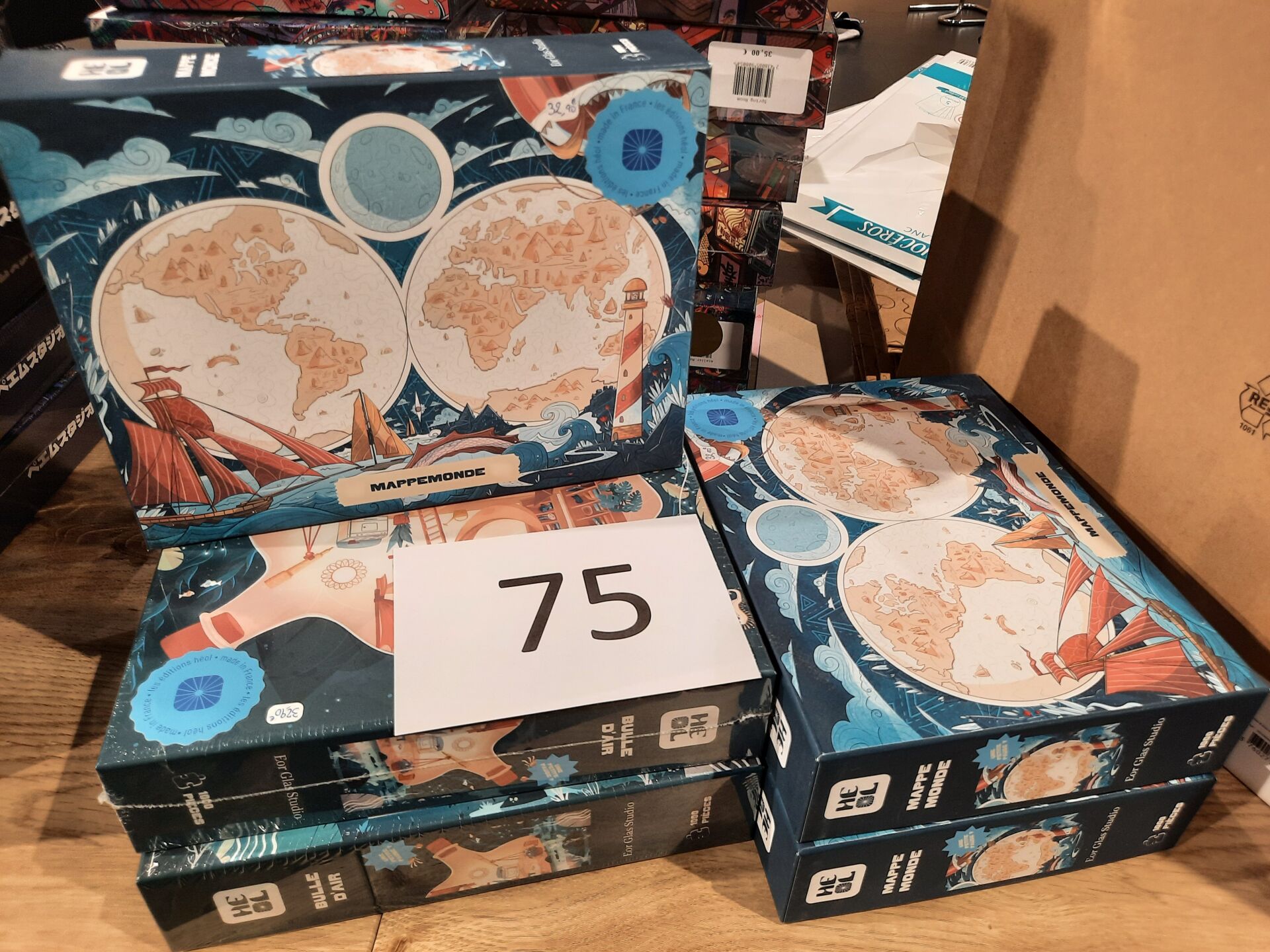 Ensemble de 5 puzzles « éditions Heol » Mappemonde, prix magasin total environ 160 €
