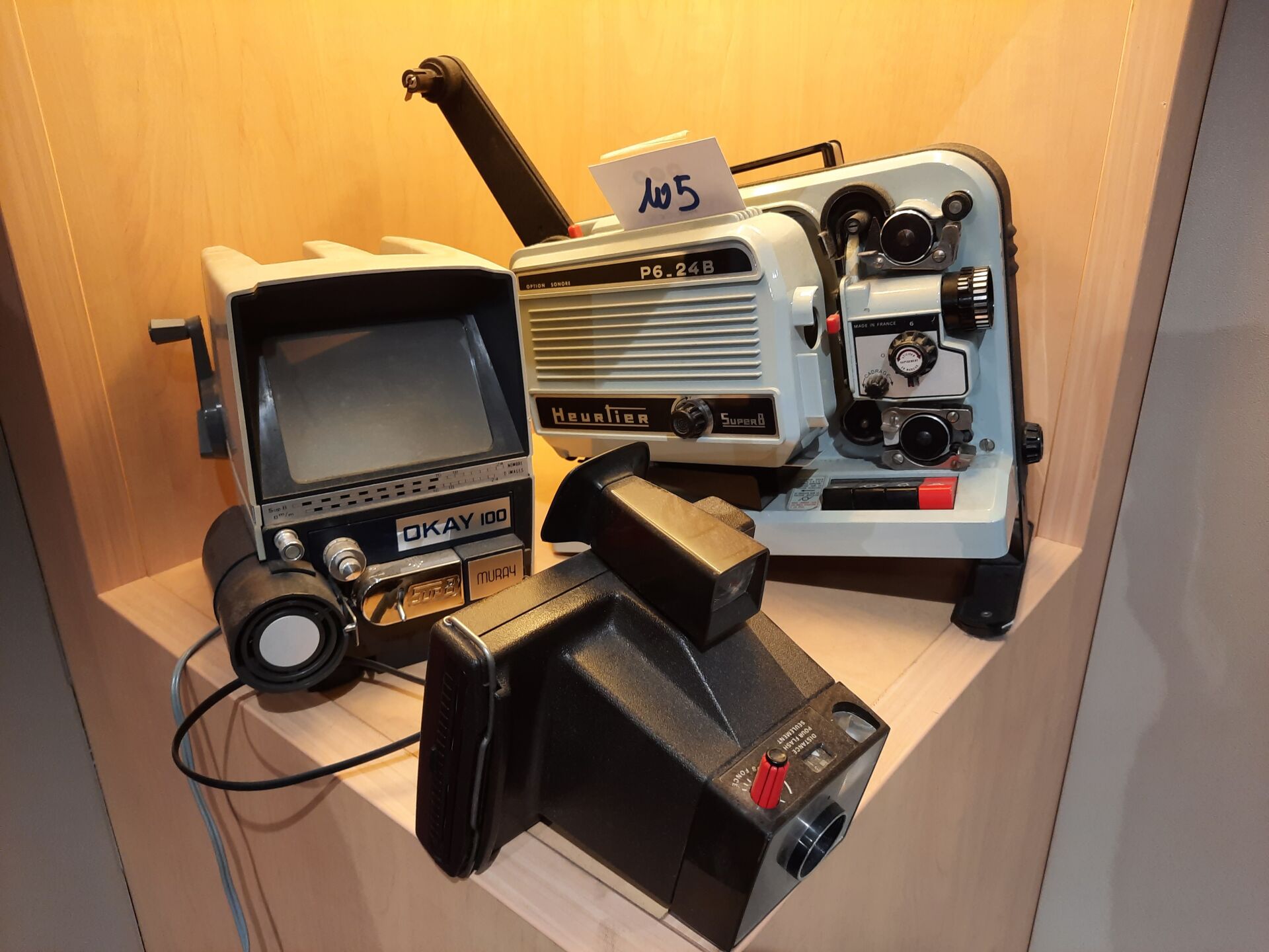 Réunion de 7 appareils image-vidéo-son vintages, dont projecteur super 8, téléviseur, poste...