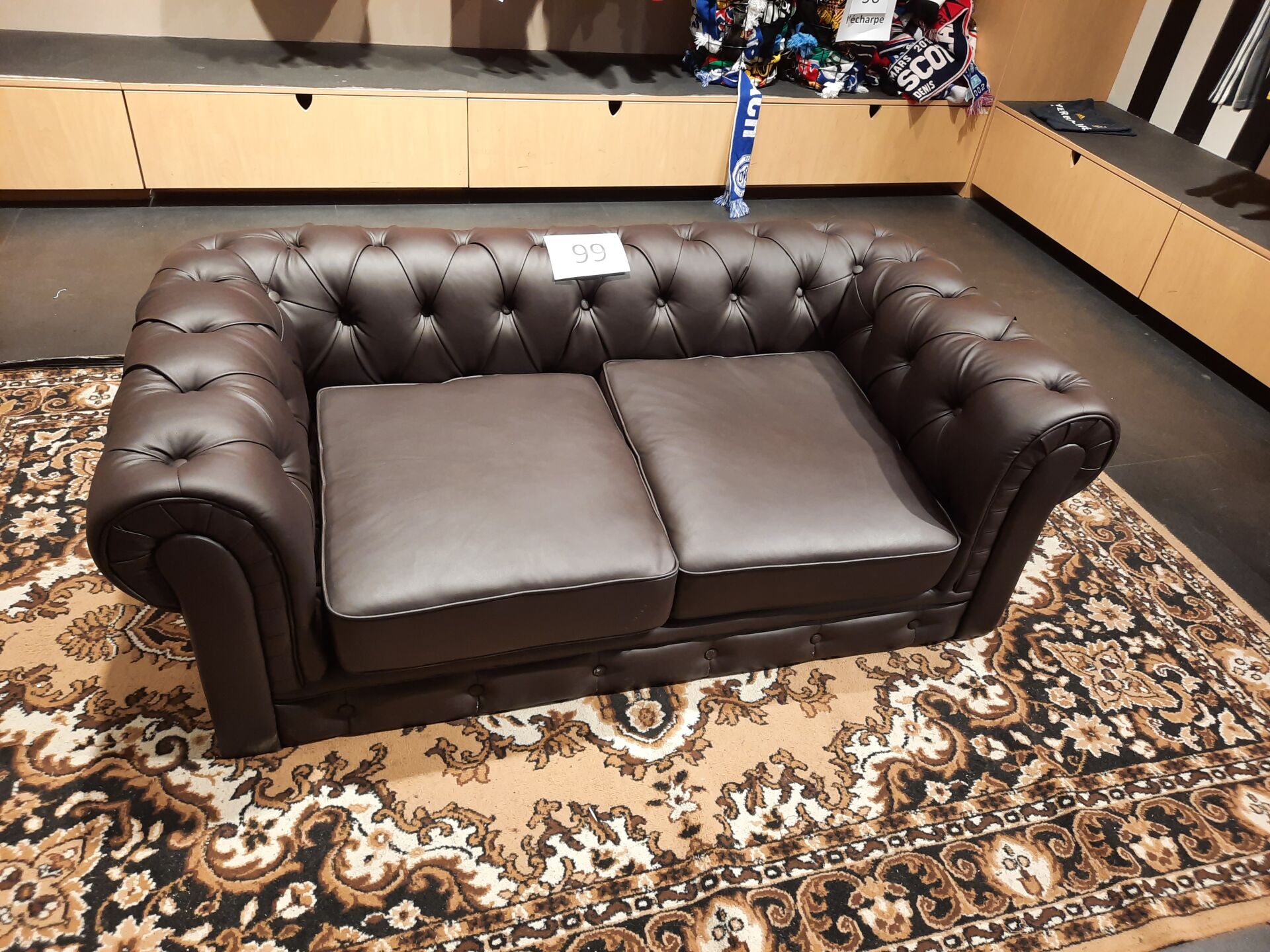 Canapé 2 places simili cuir marron, 1 pied cassé