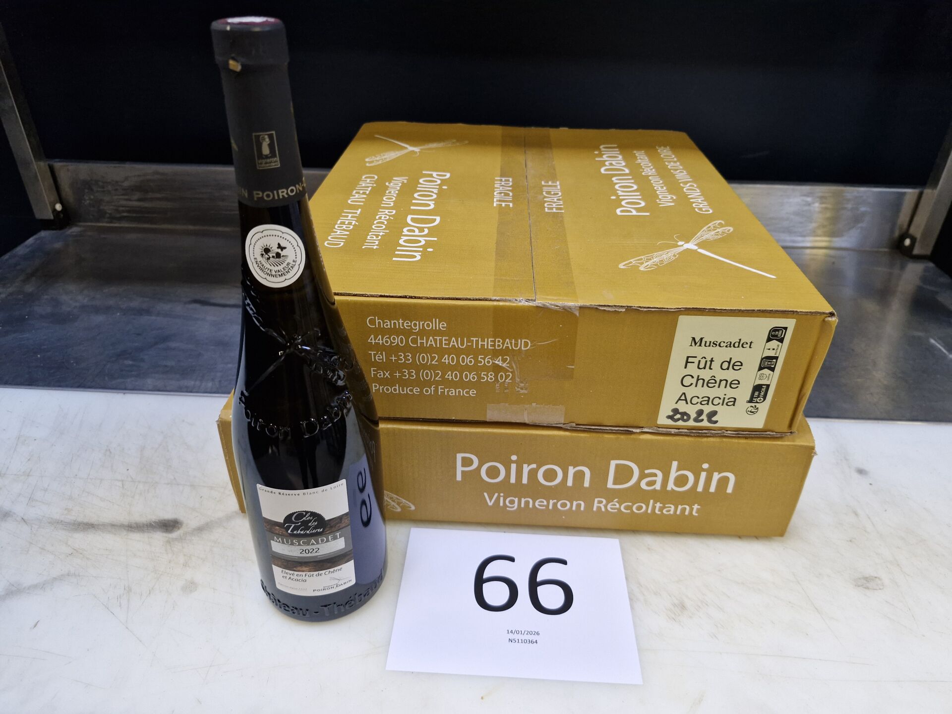 2 cartons de 6 bouteilles de 75 cl de Muscadet Clos des Tabardières POIRON DABIN 2022