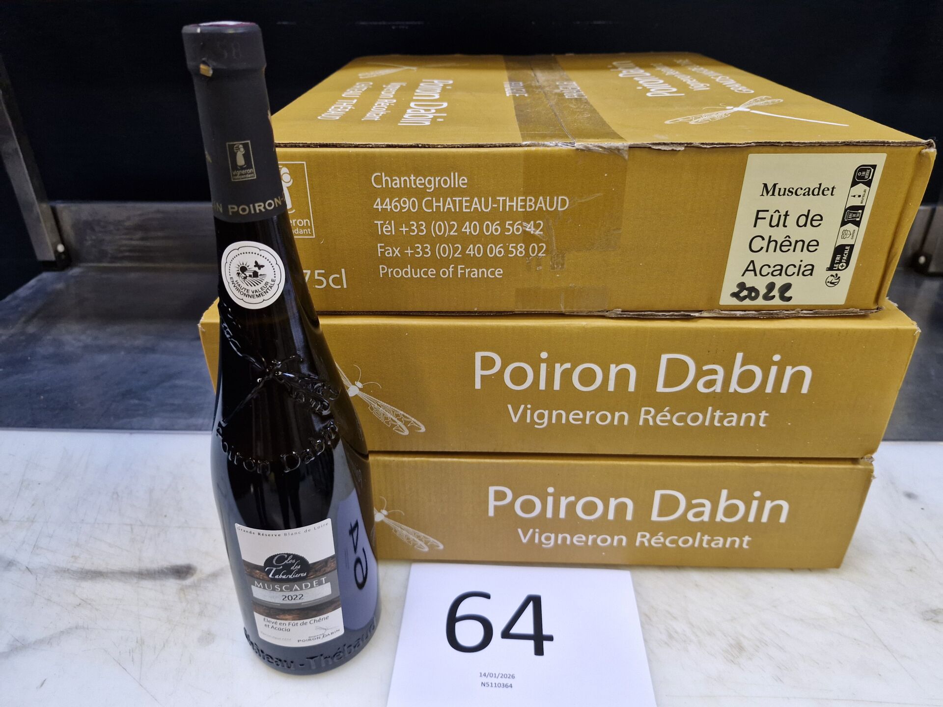 3 cartons de 6 bouteilles de 75 cl de Muscadet Clos des Tabardières POIRON DABIN 2022