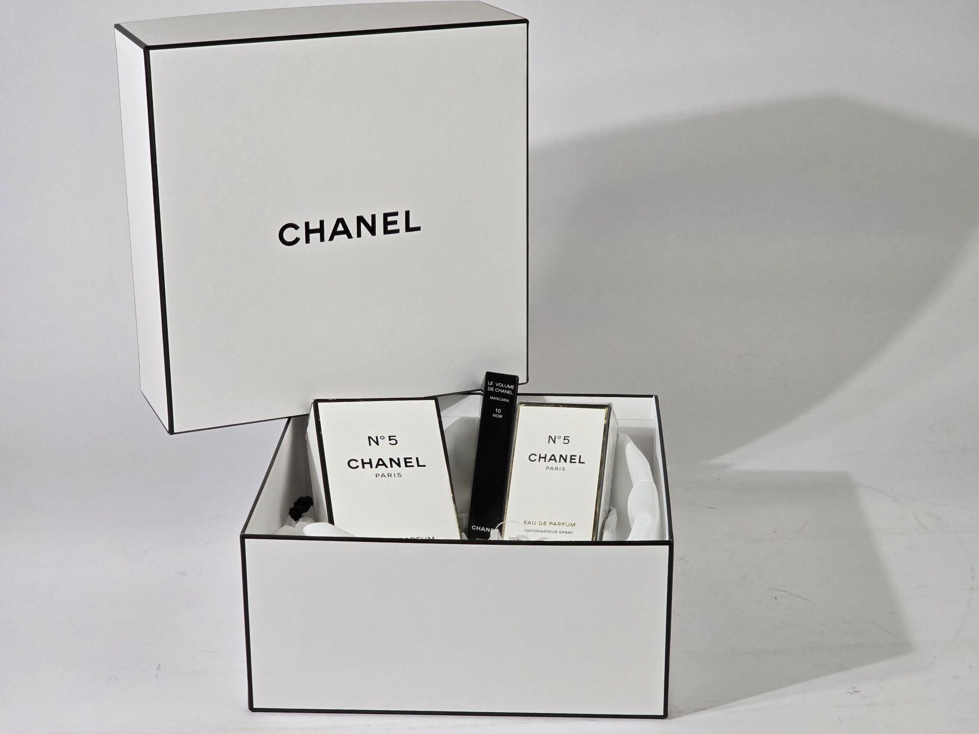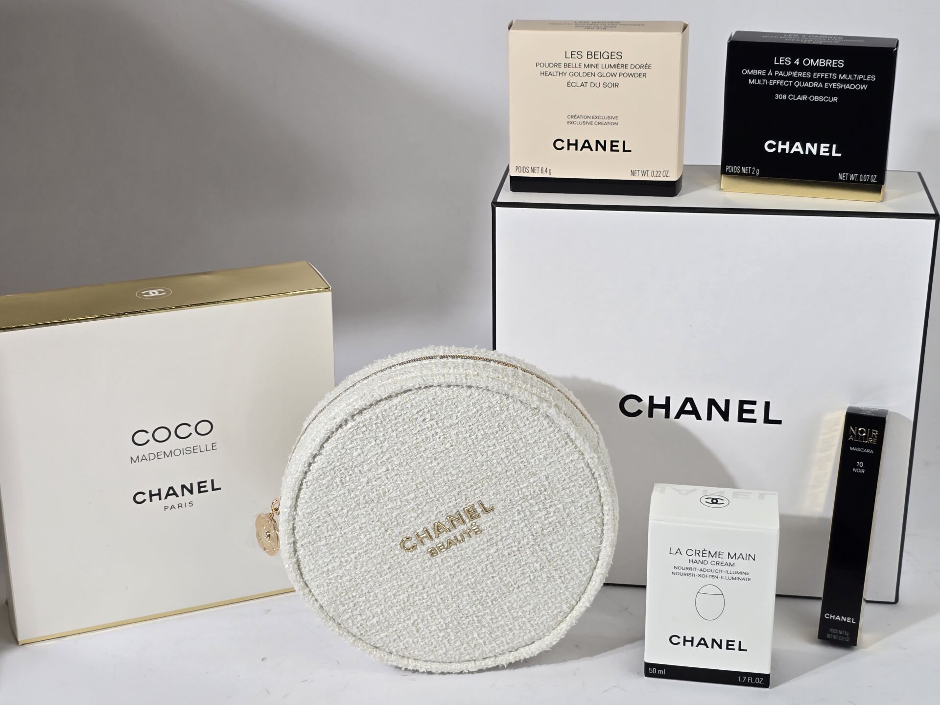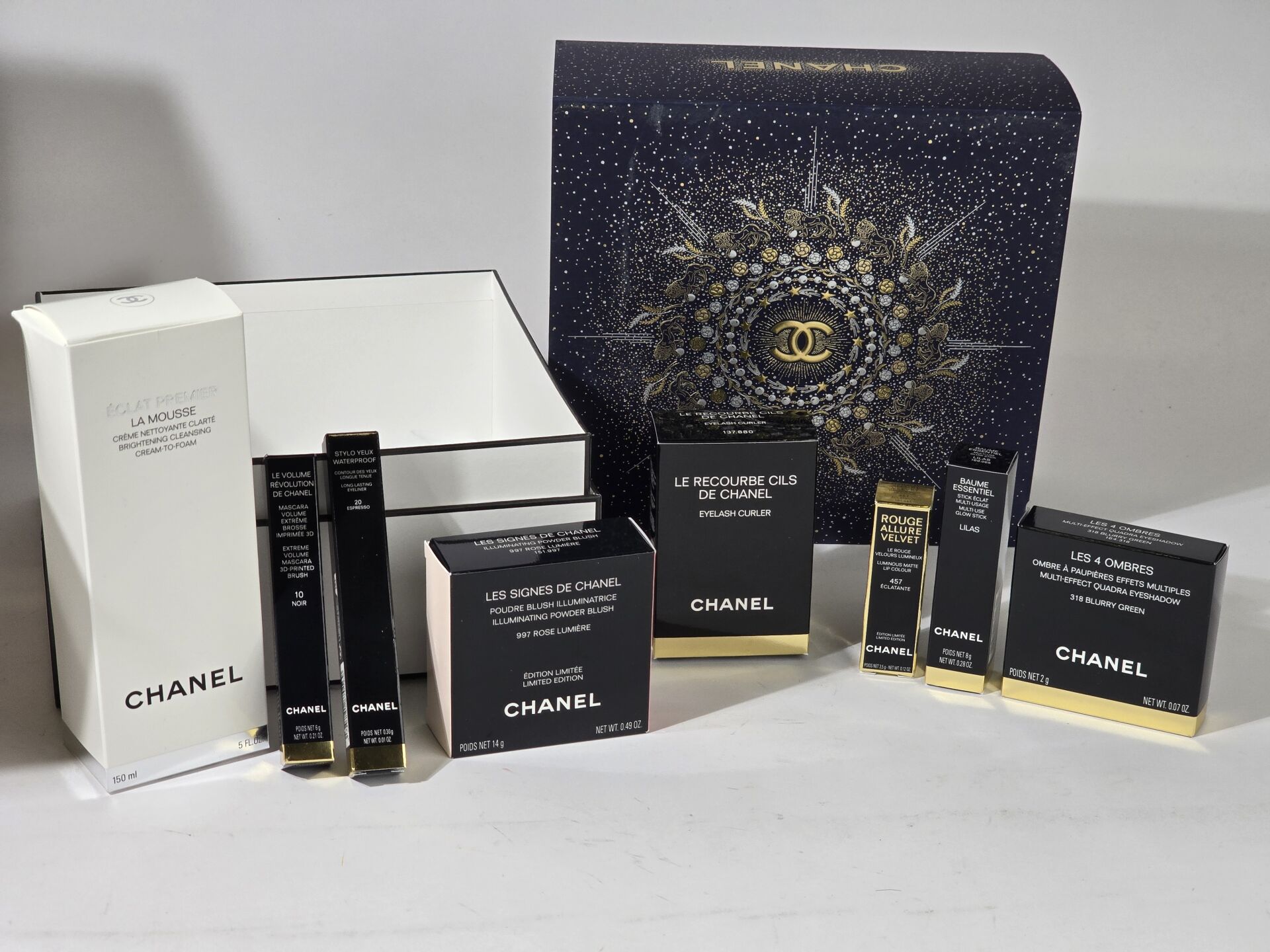 CHANEL – Un coffret cadeau 10 produits maquillage de la marque : 2 « recourbe cils »,...