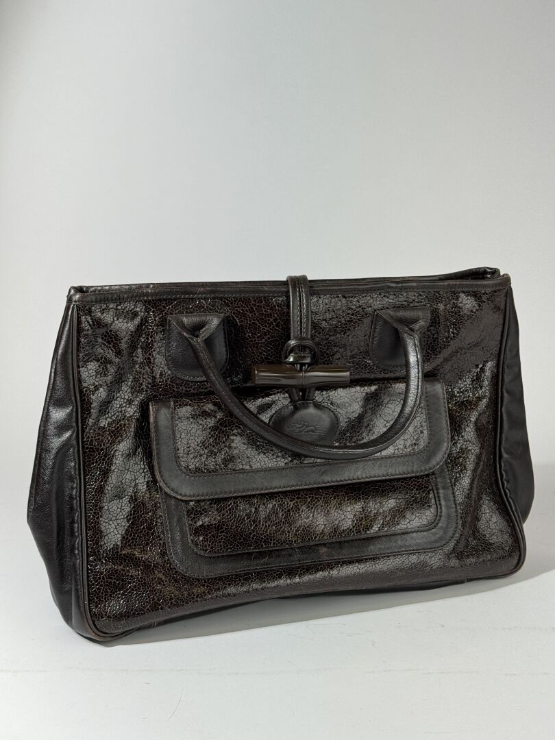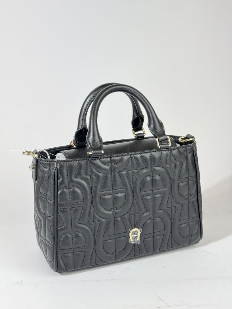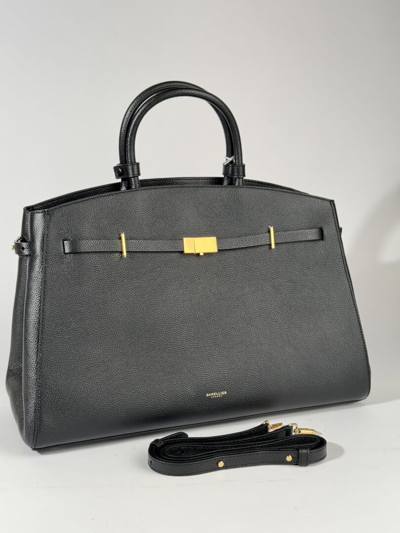 DEMELLIER – Sac « New York », cuir grainé noir, deux poignées et anse bandoulière à...