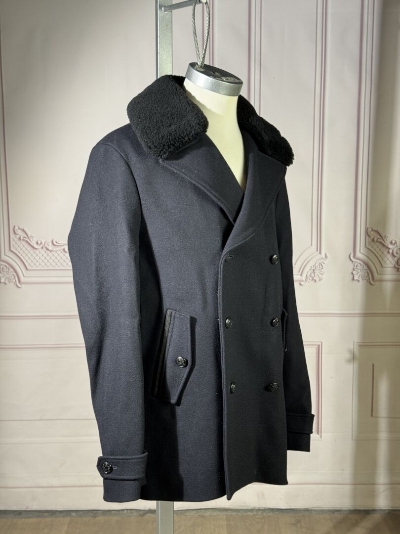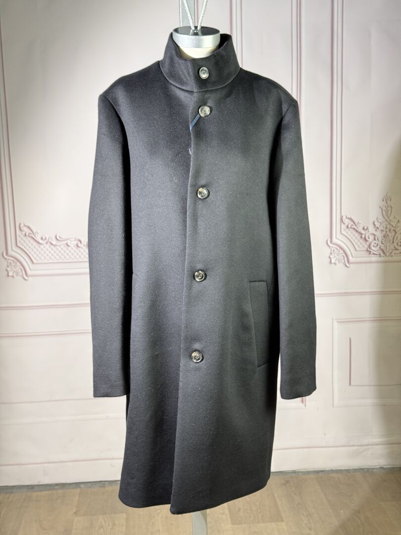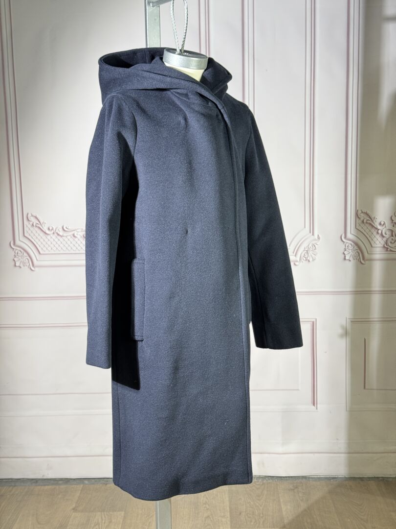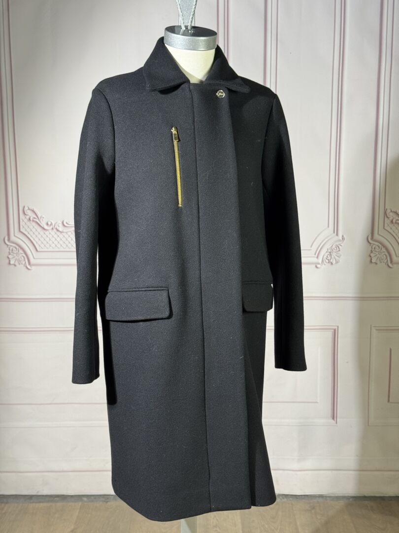 GERARD DAREL – Manteau modèle « Sathya », drap de laine mélangée noir, petit col,...