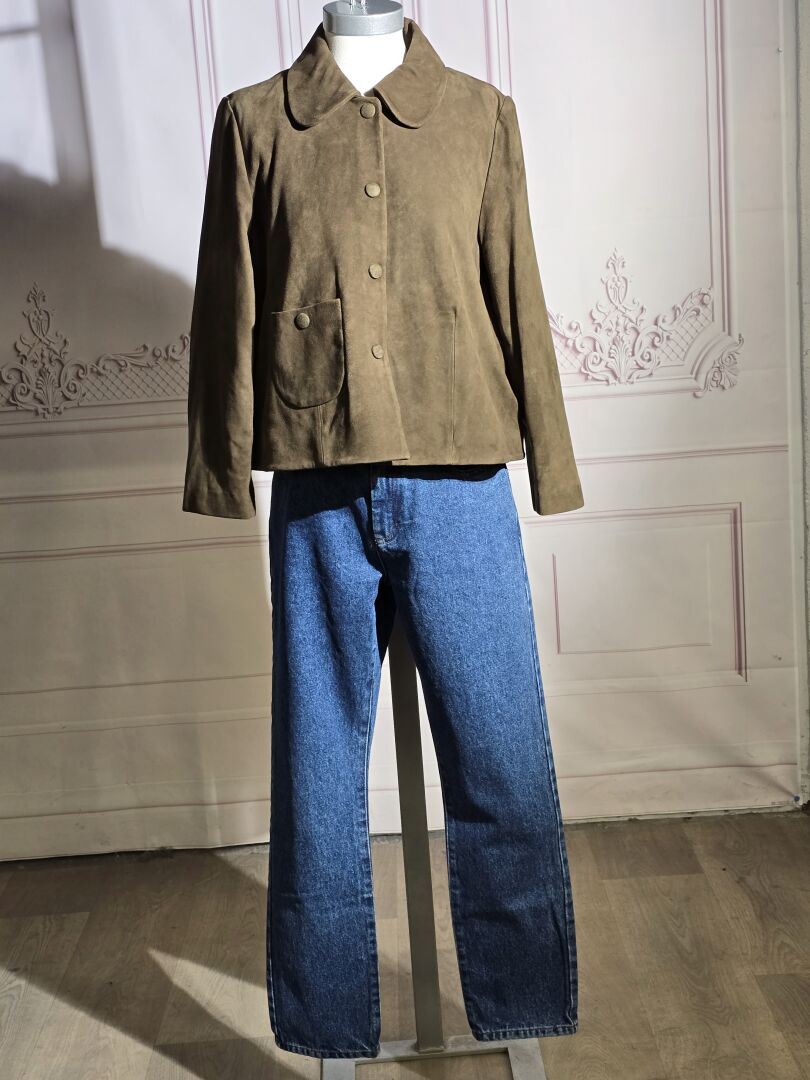 CHEVIGNON – Veste homme modèle « Over », daim sable, petit col, fermeture à...