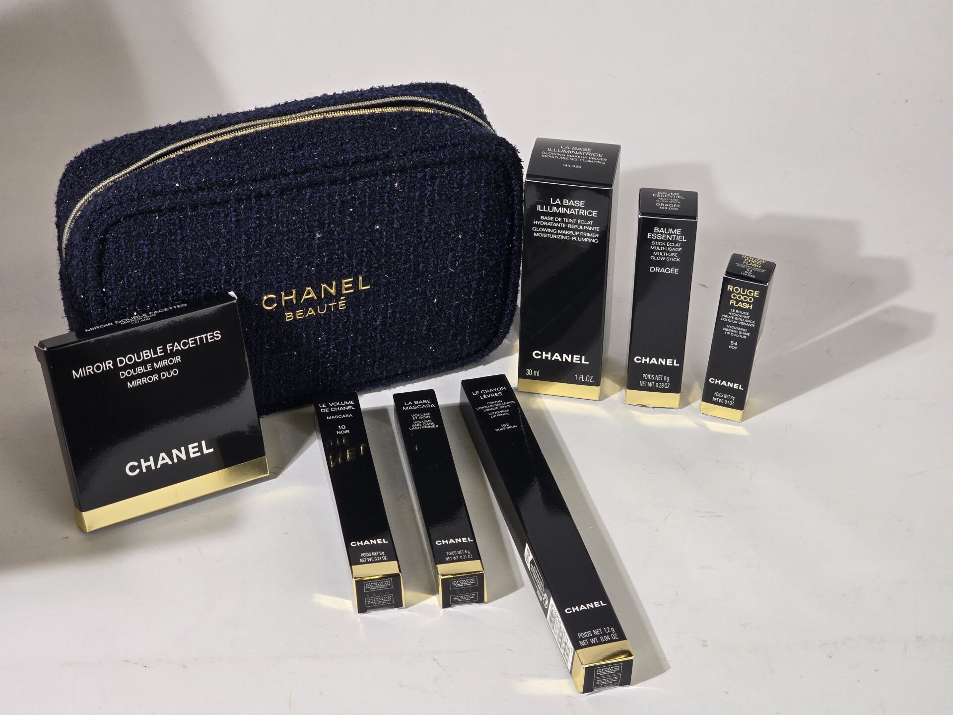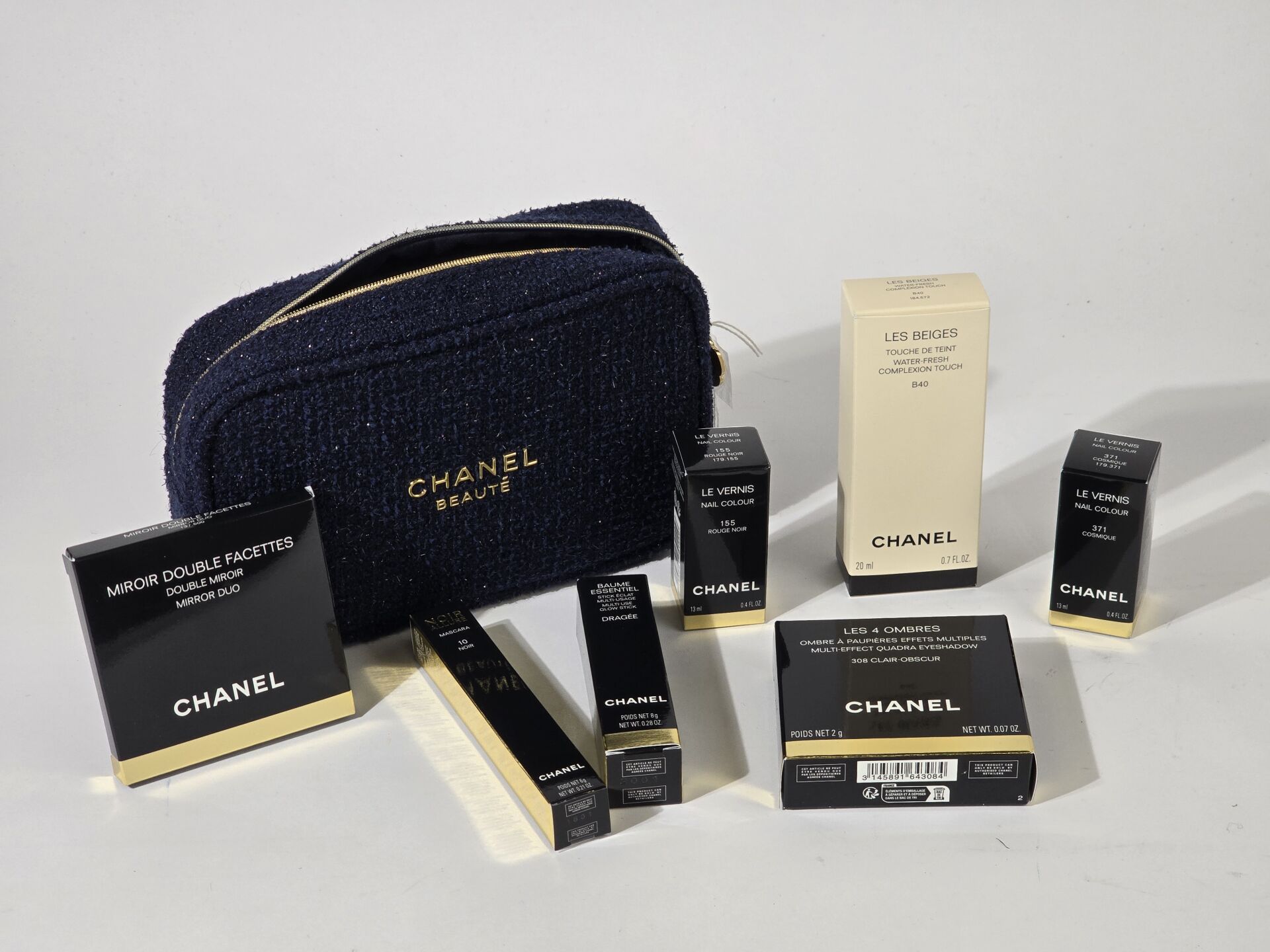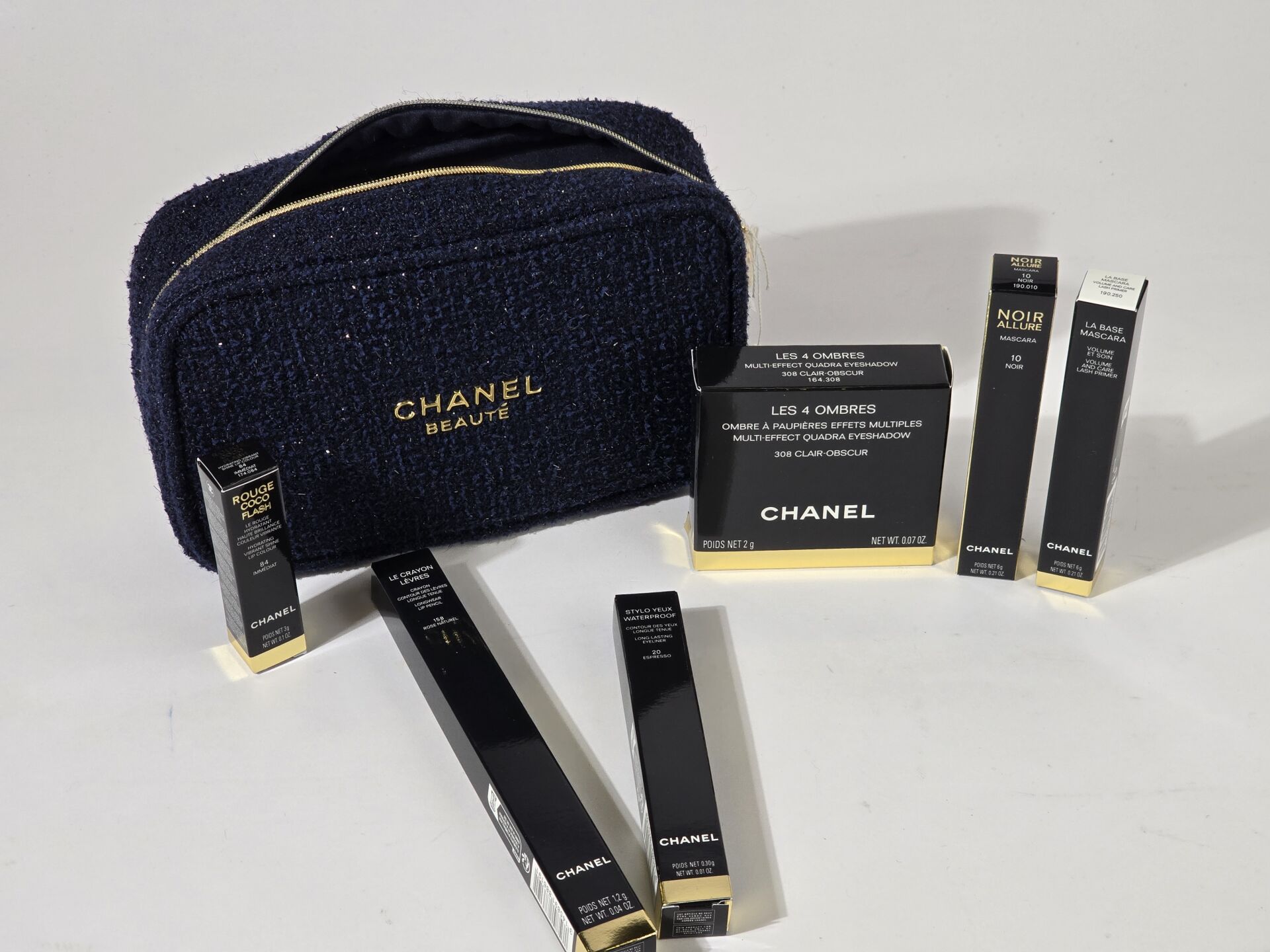 CHANEL – 7 produits de maquillage dans une trousse beauté dont un mascara volume noir et...