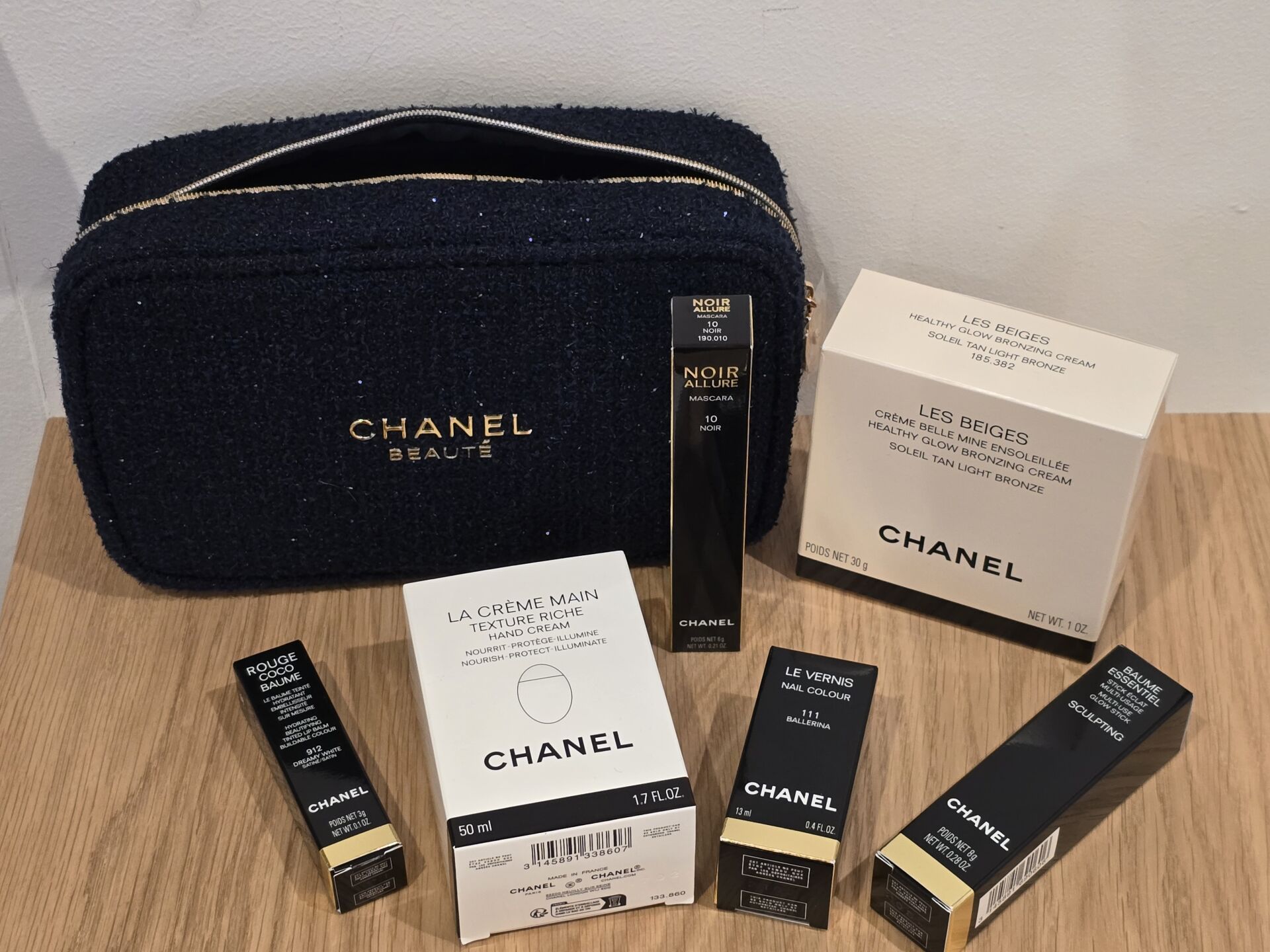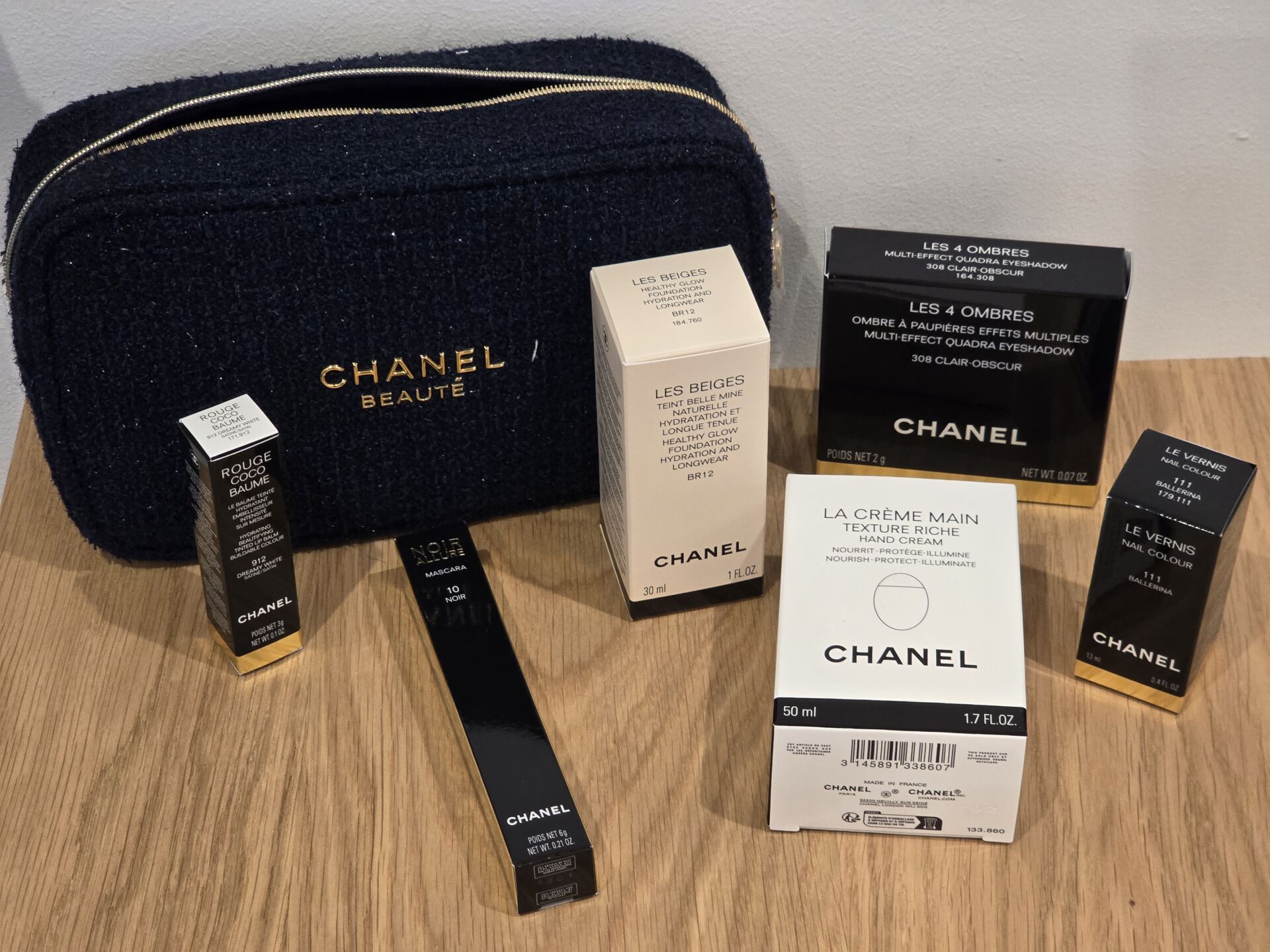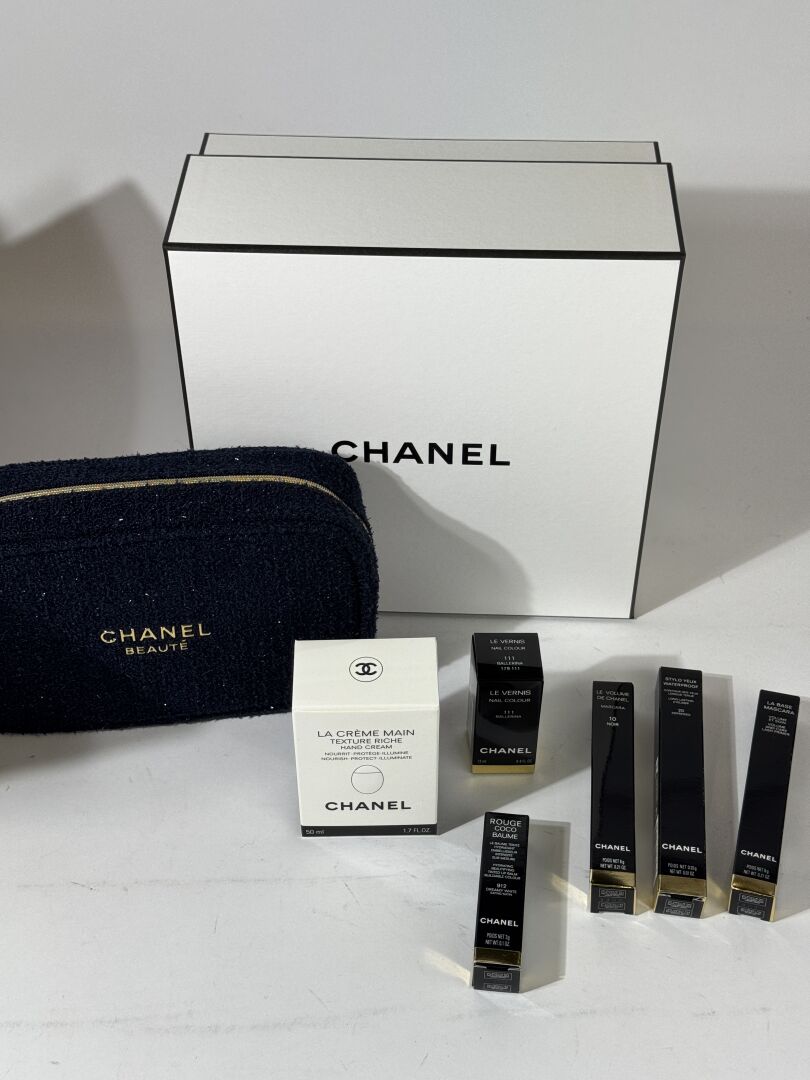 CHANEL – 7 produits de maquillage dans une trousse beauté dont un mascara volume noir et...