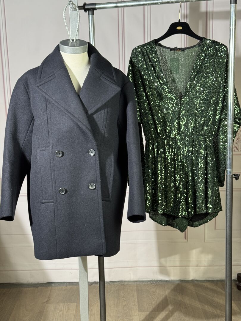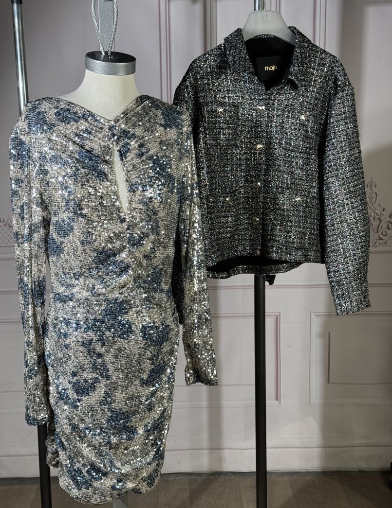 MAJE – Lot comprenant une combi-short à sequins vert, encolure en V, manches longues et un...