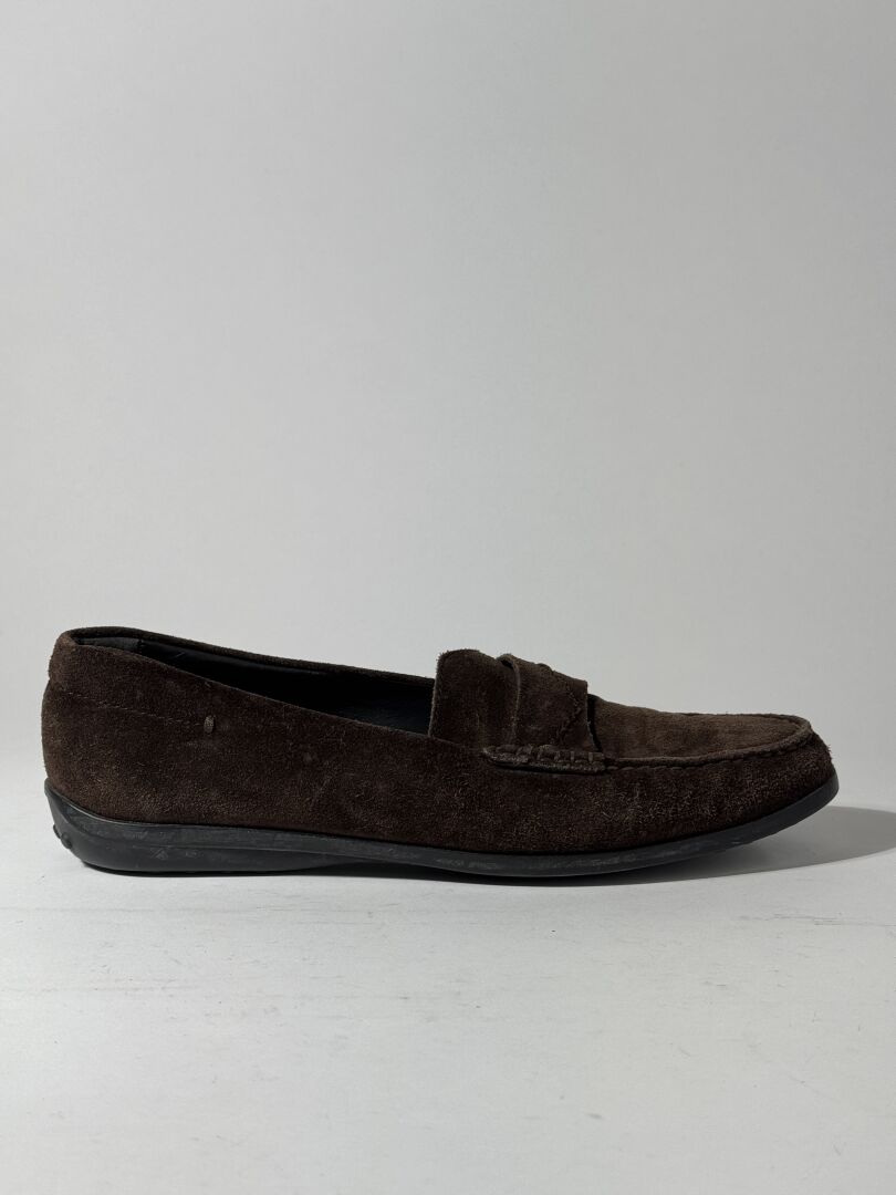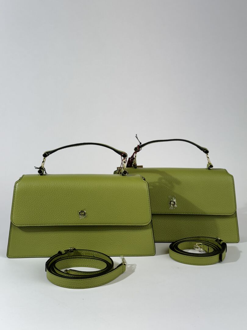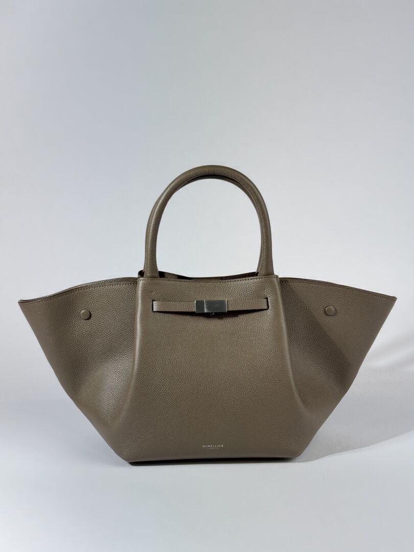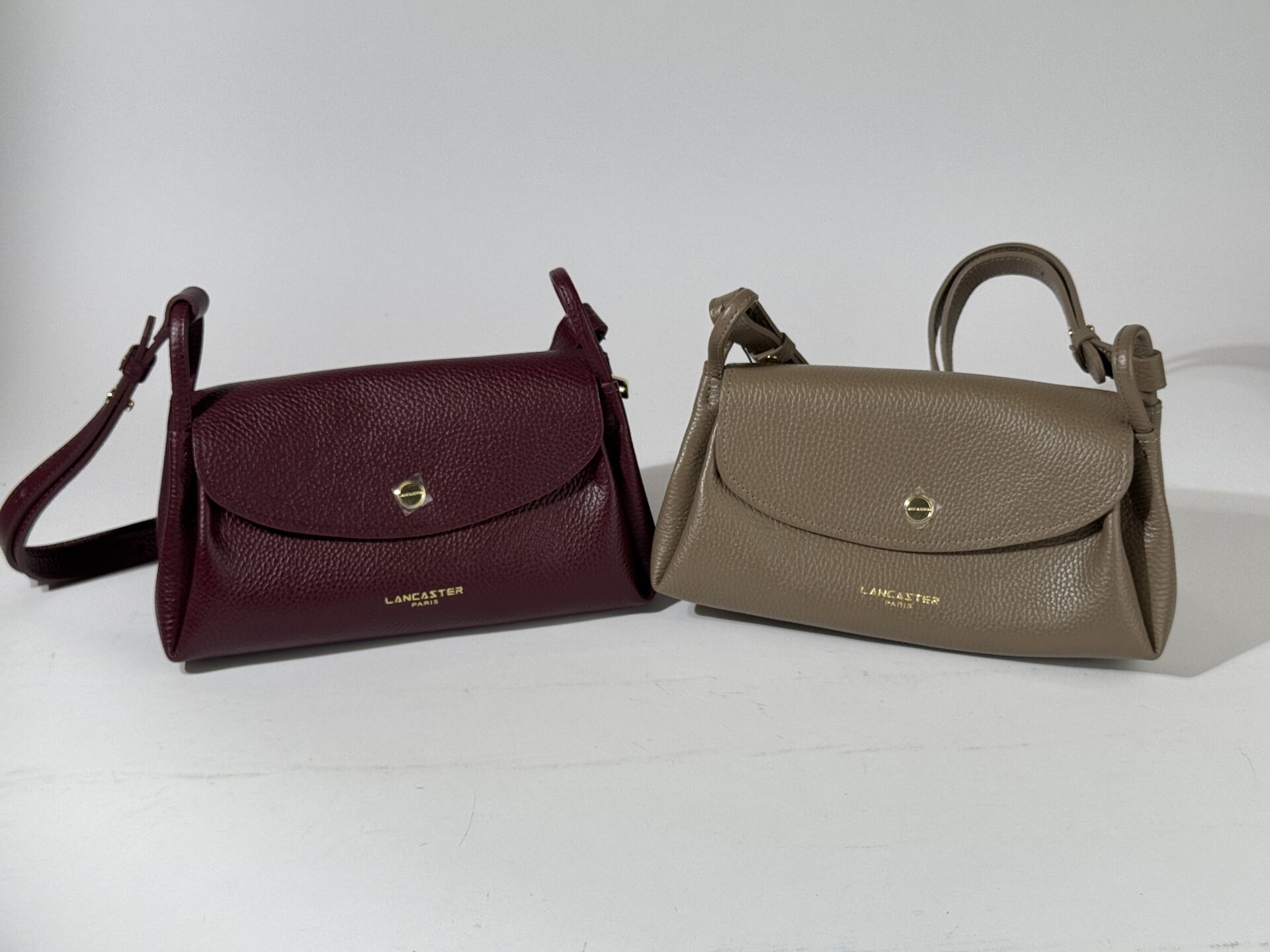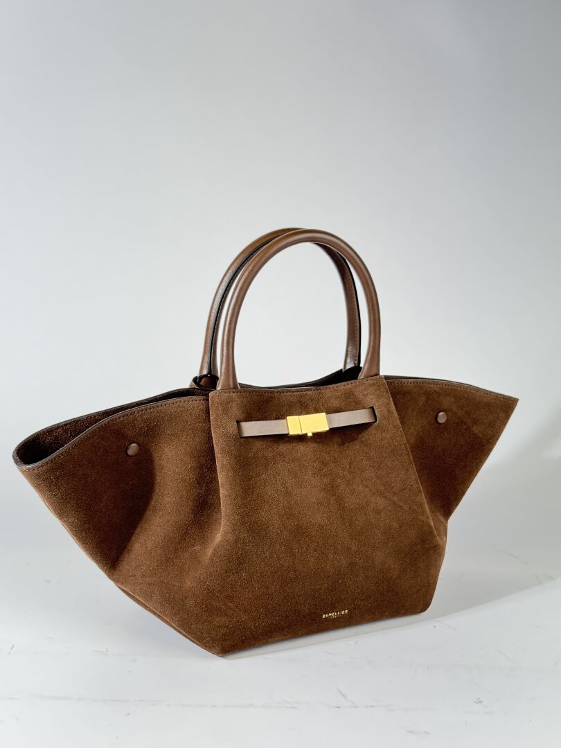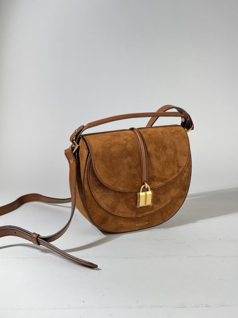 DEMELLIER – Sac à main à rabat, modèle « Sienne », daim et cuir brun, anse main et...