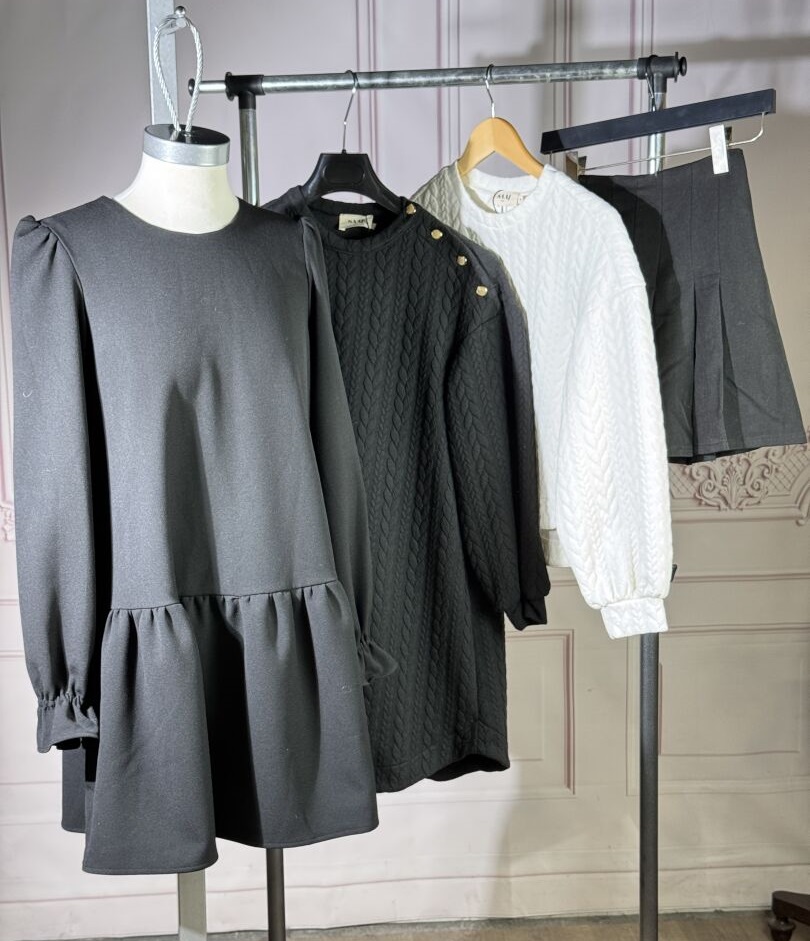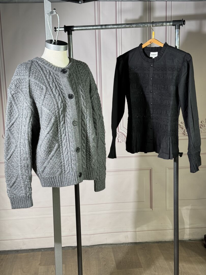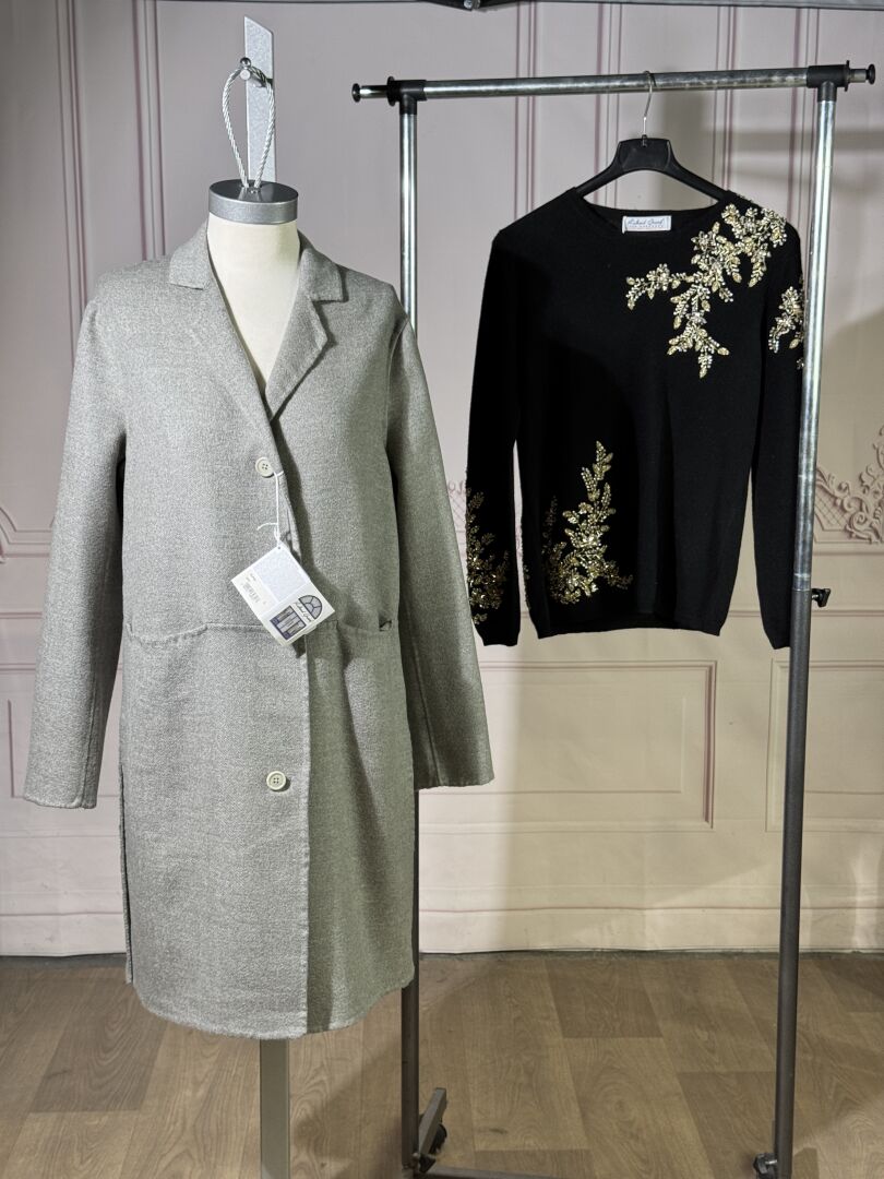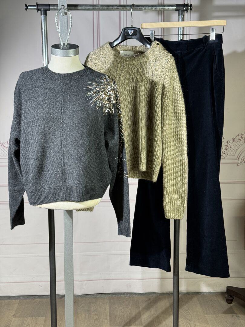 SAAJ – Lot comprenant un jean denim noir (taille 40) et un ensemble en mailles grises jupe...