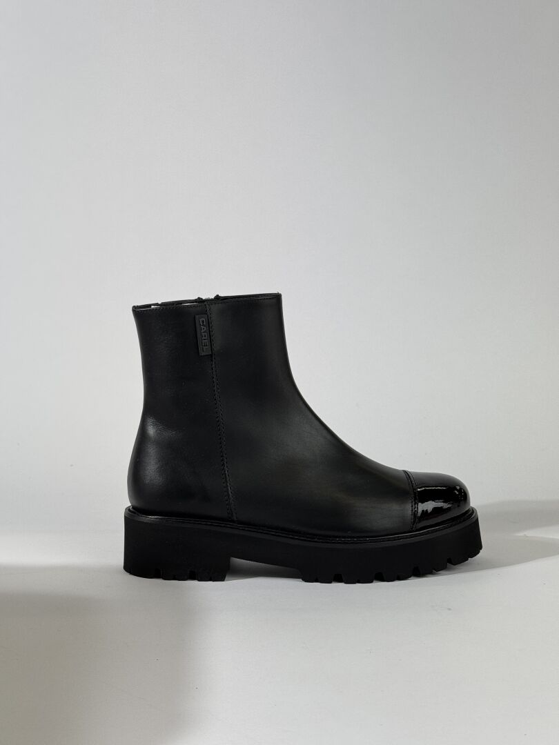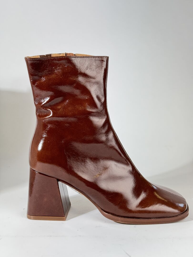 BOCAGE – Paire de bottines modèle « Miranda », cuir vernis noir, fermeture à...