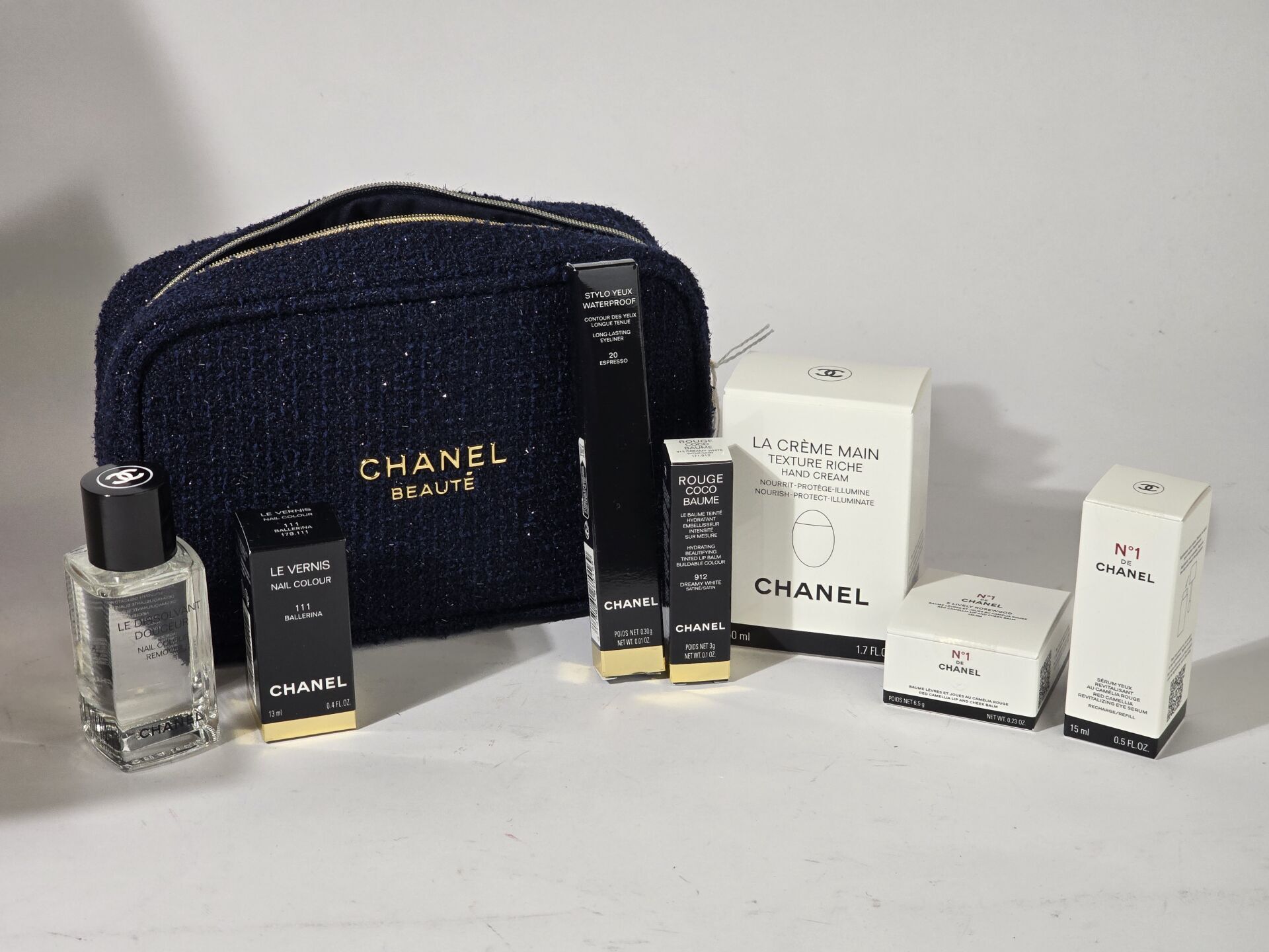 CHANEL – Dans une trousse beauté 7 produits cosmétiques de la marque dont : un stylo yeux...