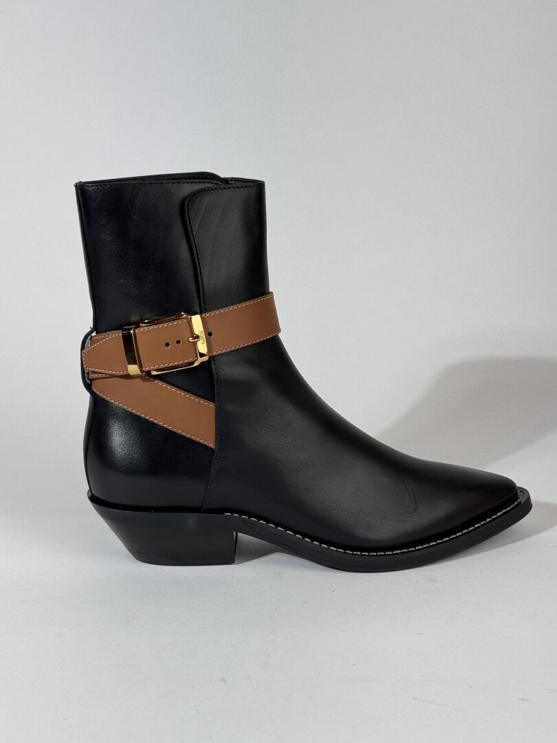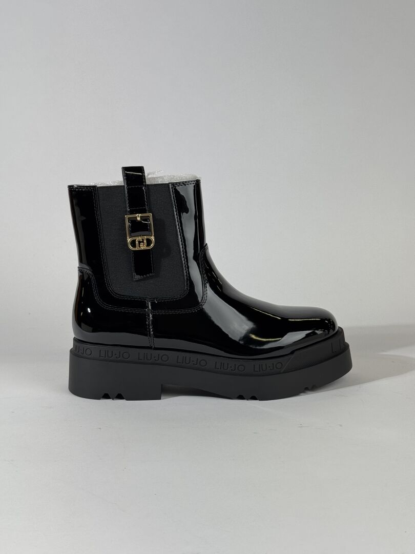 LIU-JO – Paire de bottines en cuir vernis noir, fermeture à glissière latérale, boucle...