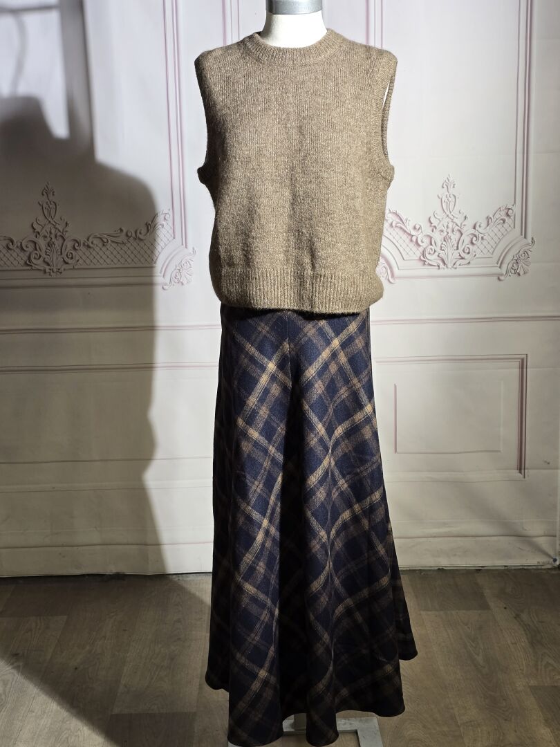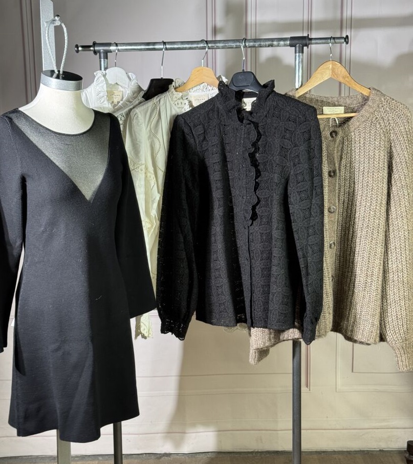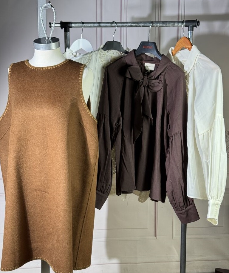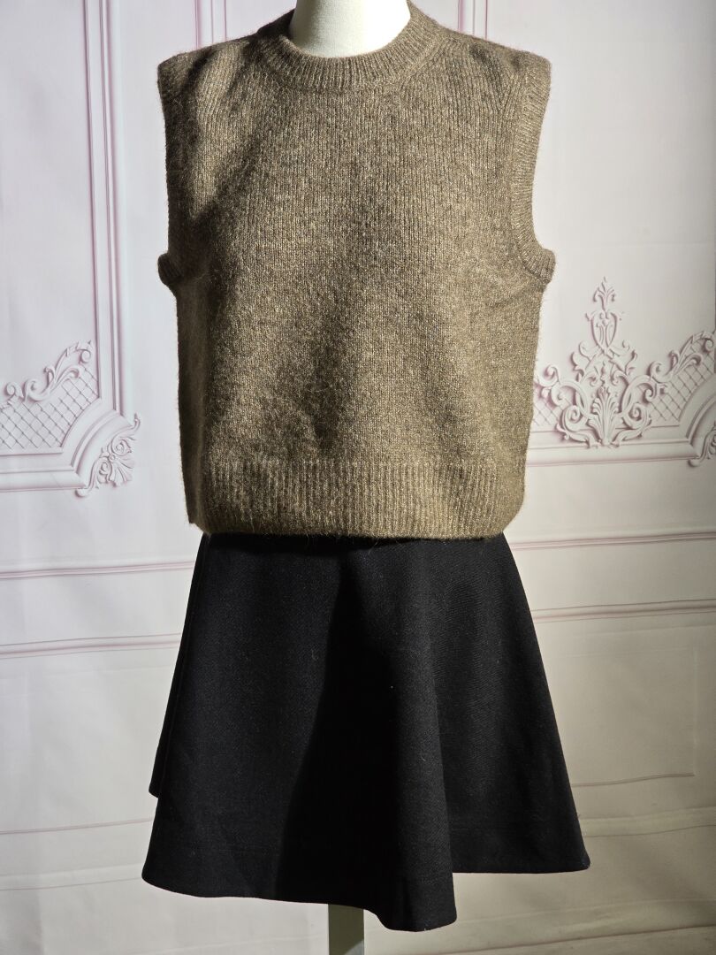 SEZANE – Lot comprenant un pull sans manches en mailles marron (taille XS) et une jupe...